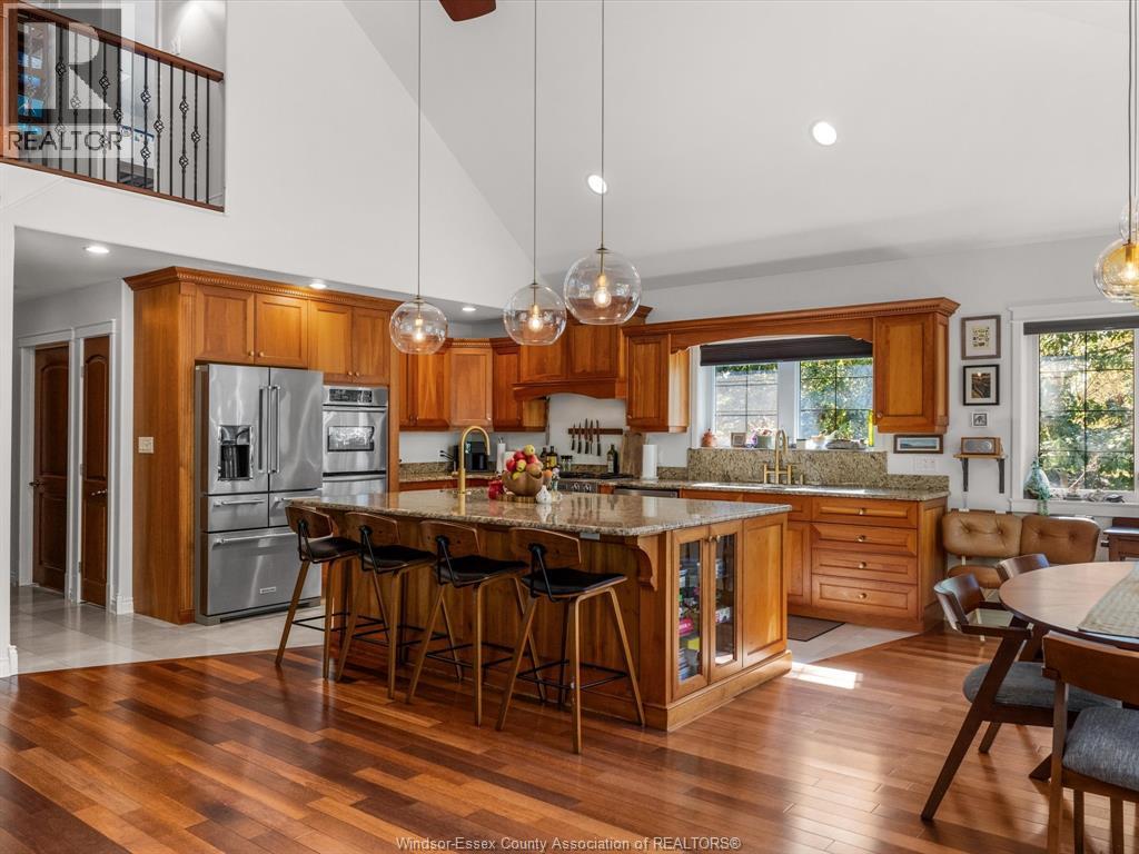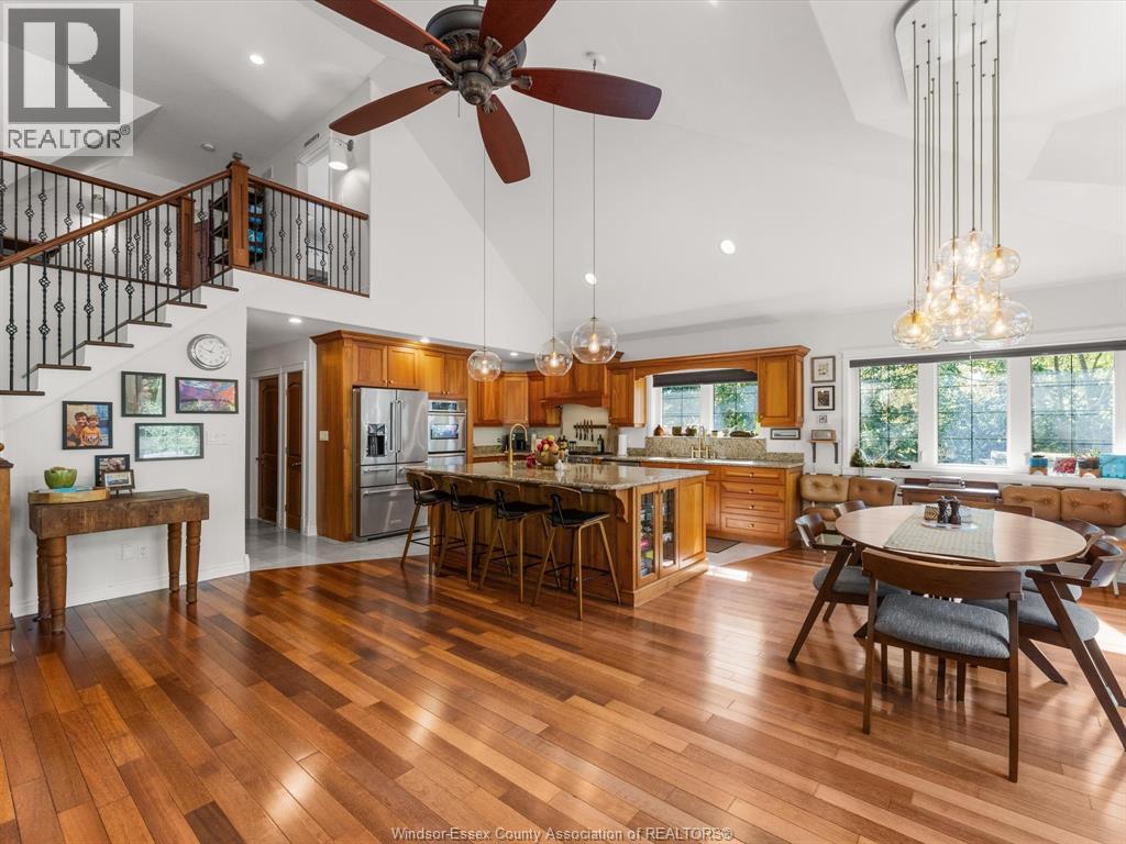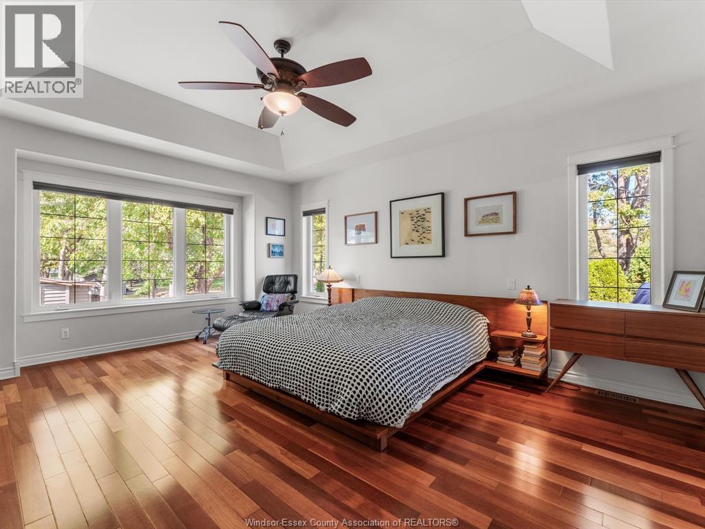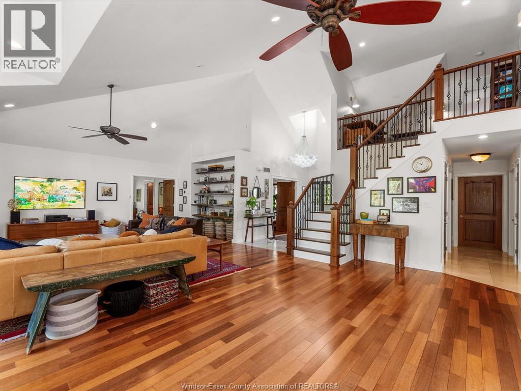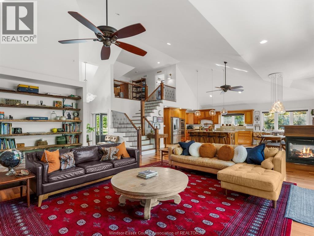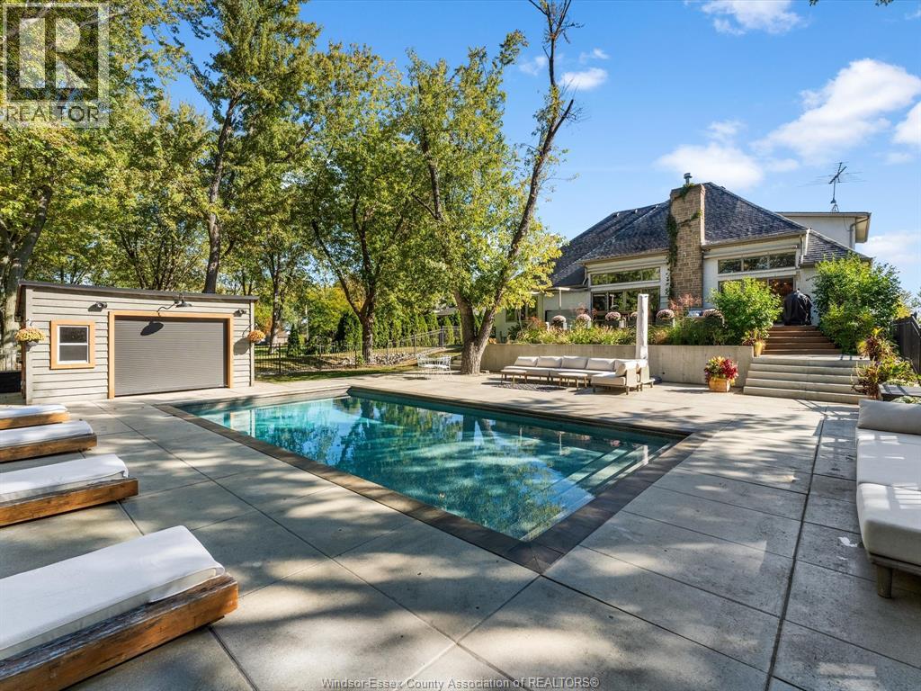 Homes like this are not built—they are dreamt of. A true architectural masterpiece inspired by timeless Frank Lloyd Wright design, this stunning 4+1 bedroom, 4 full bath estate offers luxury waterfront living at its finest. Thoughtfully designed with striking lines, natural materials, and seamless indoor-outdoor flow, every detail has been carefully curated with no expense spared. Backing onto the wide Ruscom River, this property is a boater’s dream, complete with a private boat lift and spectacular river views. Enjoy resort-style living with a beautifully landscaped backyard, in-ground heated pool, and expansive entertaining spaces perfect for hosting or relaxing in total privacy. Inside, the home offers an open-concept layout with soaring ceilings, custom finishes, and high-end craftsmanship throughout. The primary suite is a private retreat, while additional bedrooms and living areas provide ample space for family and guests. Additional info in DOCS (id:4555)