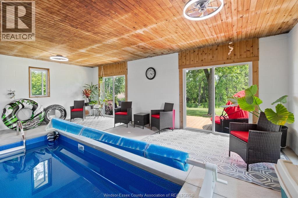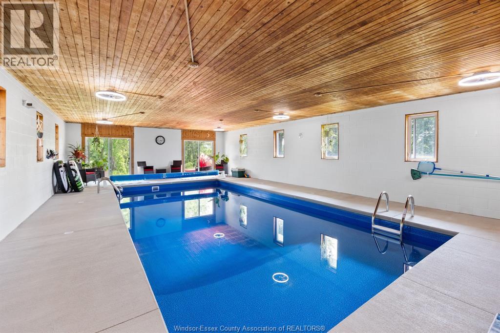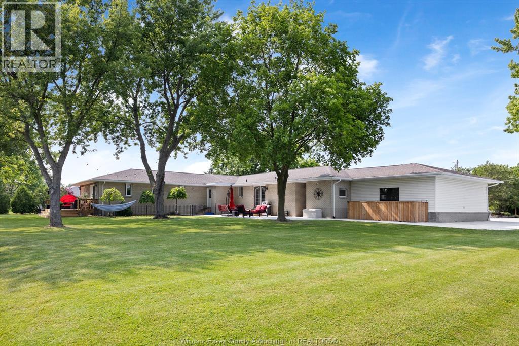 RELAX AND VACATION AT HOME IN THIS SPRAWLING BRICK TO ROOF RANCH SITUATED ON JUST UNDER 1 ACRE PEACEFUL AND QUIET CUL-DE-SAC ROAD FEATURING AN OVERSIZED BRIGHT LIVING ROOM, GORGEOUS WRAPAROUND GRANITE, CERAMIC AND STAINLESS ACCENTED KITCHEN (2026) WITH SEPARATE DINING AREA, DOUBLE GARDEN DOORS TO PRIVATE PATIO, 3 GENEROUS SIZED BEDROOMS, 2 RENOVATED BATHROOMS (2025) LOWER LEVEL FAMILY ROOM (2022) OFFICE/DEN, BONUS INDOOR SWIMMING POOL (2024) WITH SPA SIZED SAUNA AND SEPARATE WASHROOM, MULTIPLE WINDOWS PLUS PATIO DOORS (2025) LEAD TO A CUSTOM LOUNGING DECK OVERLOOKING A BREATHTAKING MANICURED TREED YARD BACKING ONTO THE RUSCOM RIVER AND PARKLAND WITH ACCESS TO WALKING TRAILS IN THE MEMORIAL PARK, 2 1/2 CAR GARAGE WITH SEPARATE TOOL ROOM, DOUBLE WIDE CEMENT DRIVE WITH EXTRA SIDE PARKING PAD (2023) FORCED AIR GAS FURNACE (2022) CENTRAL AIR, HARDWOOD FLOORS, MAIN FLOOR LAUNDRY, APPLIANCES INCLUDED, VINYL REPLACEMENT WINDOWS AND DOORS (2023, 2025) COUNTY LIVING WITH EASY ACCESS TO WINDSOR FROM HWY 401 OR COUNTY ROAD 42 (id:4555)