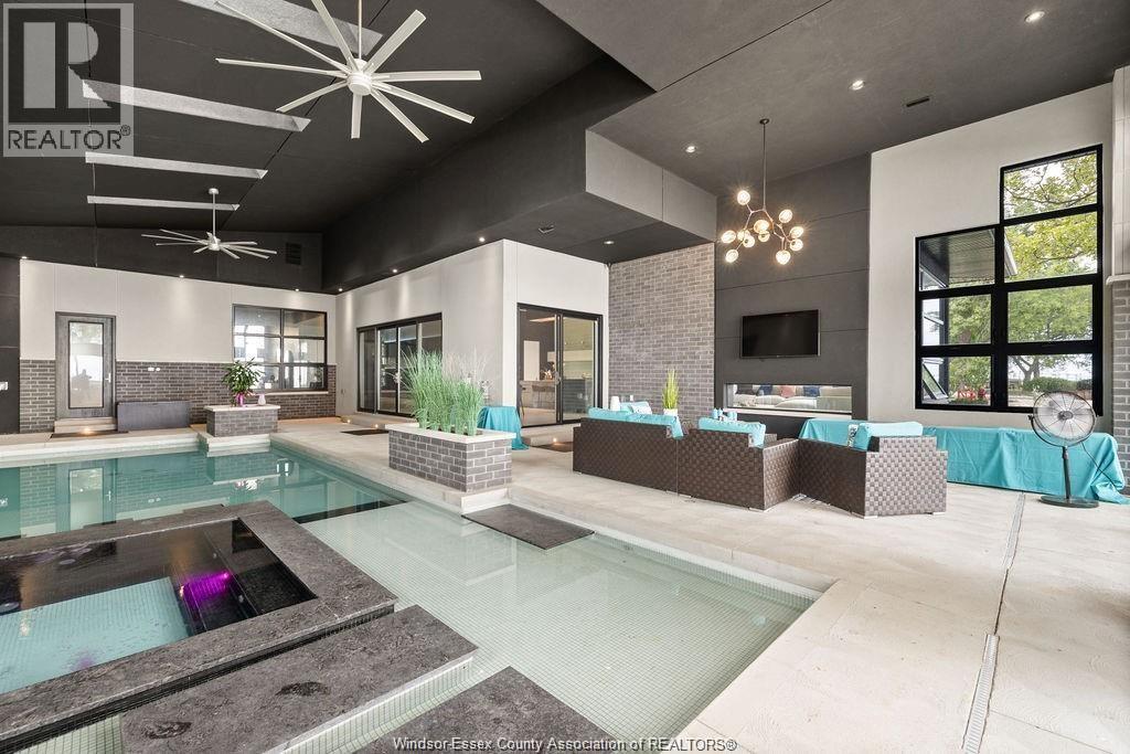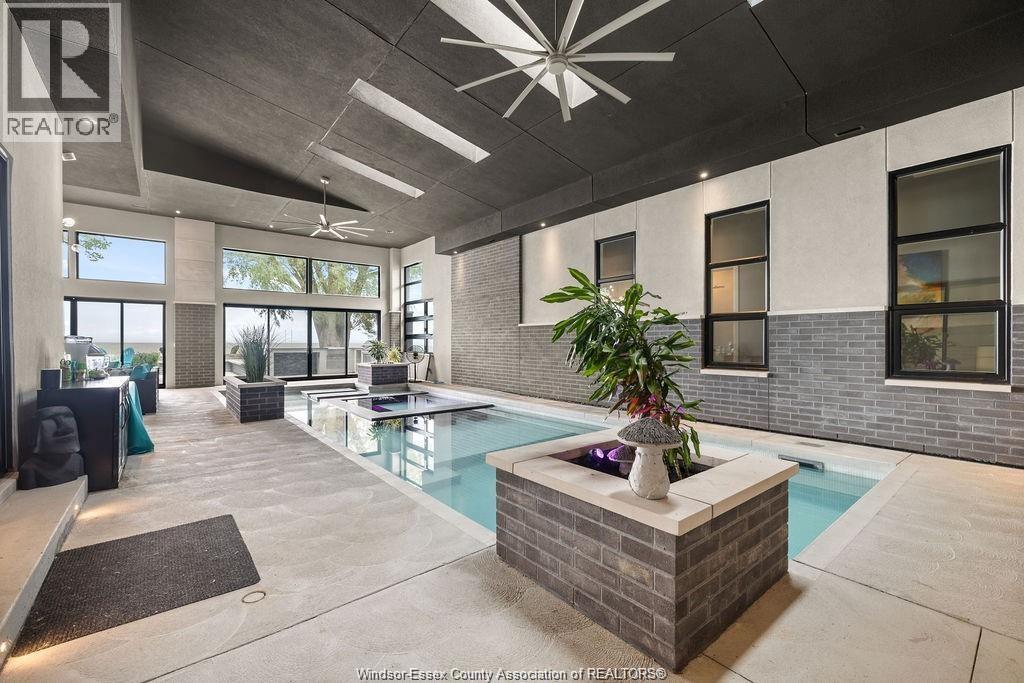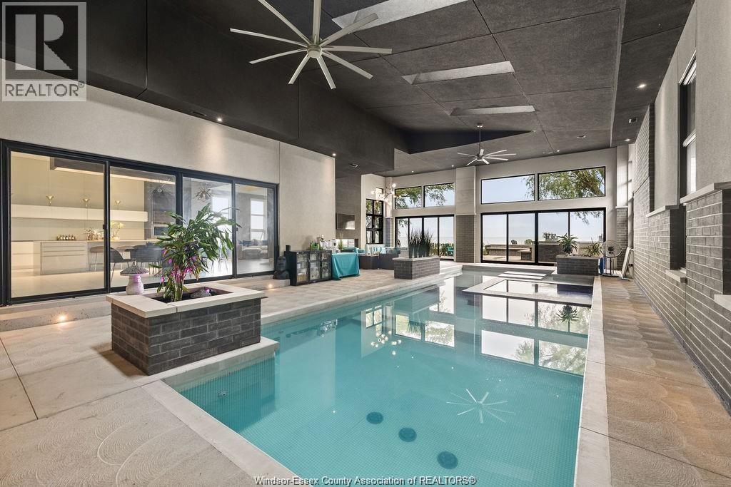 Absolutely stunning 3,500 sq ft custom-built ranch with panoramic waterfront views. Surrounded by water, this home was thoughtfully designed for both relaxation and entertaining, this home features an open-concept layout with a chef’s kitchen, large pantry and island with high-end appliances. The spacious dining and living rooms share a dual fireplace with year-round in the indoor pool with hot tub, swim-up bar and lounge. Three spacious bedrooms each include private ensuites, while the luxurious primary retreat offers a spa-inspired bath with curbless rain shower, soaking tub, walk-in closet, and dressing room. Additional highlights include gym, heated floors, outdoor kitchenette, sunken firepit, and a state-of-the-art boat lift system with three 15,000 lb motorized lifts—ideal for any watercraft enthusiast. Attention to detail is incredible with this home, contact for a private viewing! (id:4555)