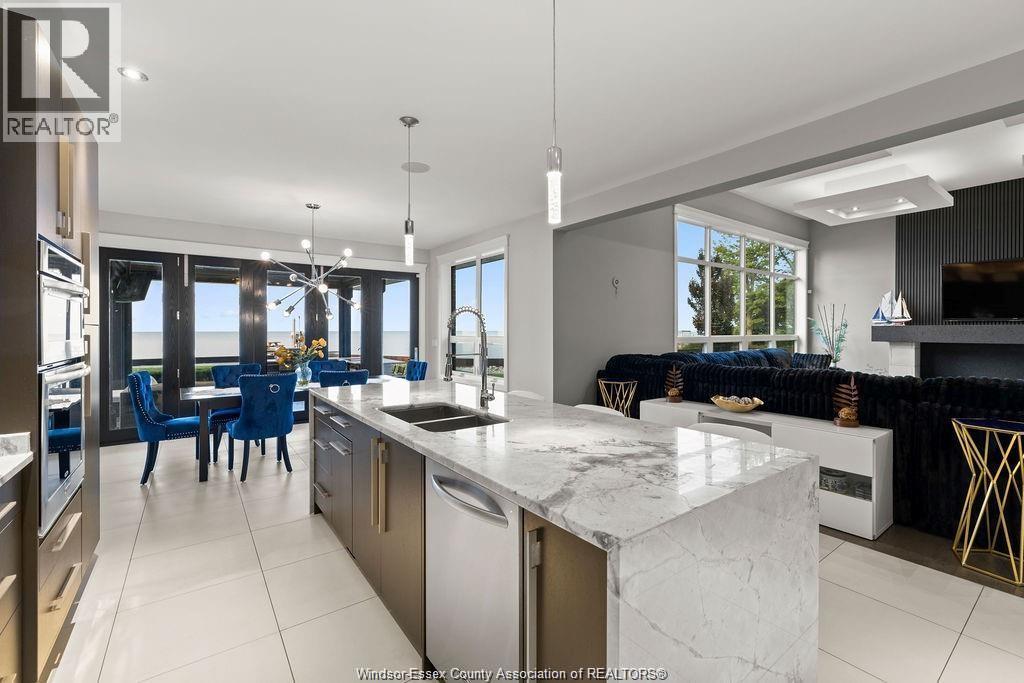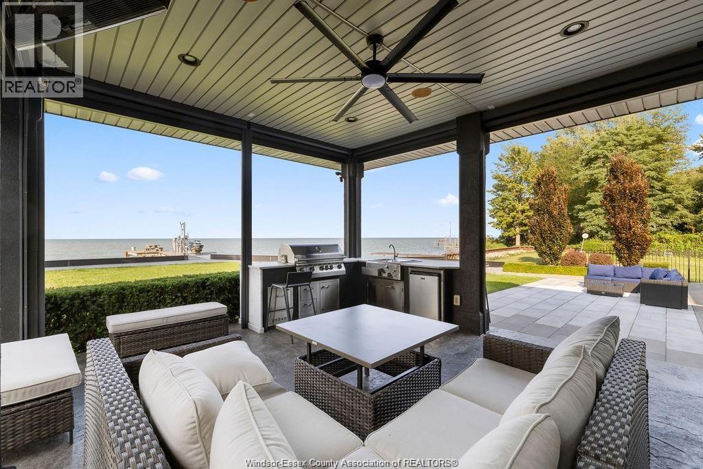 The perfect combination of luxury, comfort and waterfront living! Unobstructed lake views the second you enter, including great room with soaring ceilings open to gourmet kitchen and dining rm with glass folding doors to covered back patio that includes motorized screens, BBQ/Bar area, even a TV to watch the game while enjoying the sunsets. Primary suite includes lavish 5 pc bath, walk-in closet in suite laundry, 2nd main bedroom offers ensuite, walk-in closet +den. Finished basement boasts 2 additional bedrooms, family room, rec room, rough-in kitchen/bar + grade entrance to heated 3 car garage with epoxy floor and built-in cabinetry. Step back outside from rear grade entrance to the stunning backyard, complete with patio, deck and 3 boat lifts. Imagine waking up to breathtaking lake views every day and indulge in the peace and tranquility this home provides. With its luxurious amenities, this residence offers an elevated lifestyle that’s not to be missed. (id:4555)