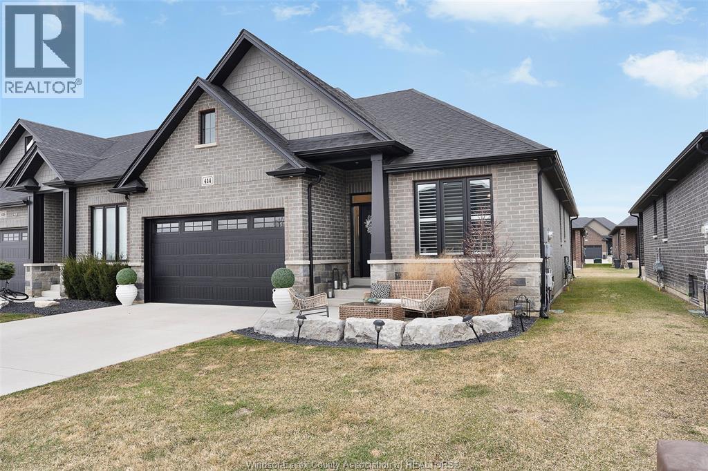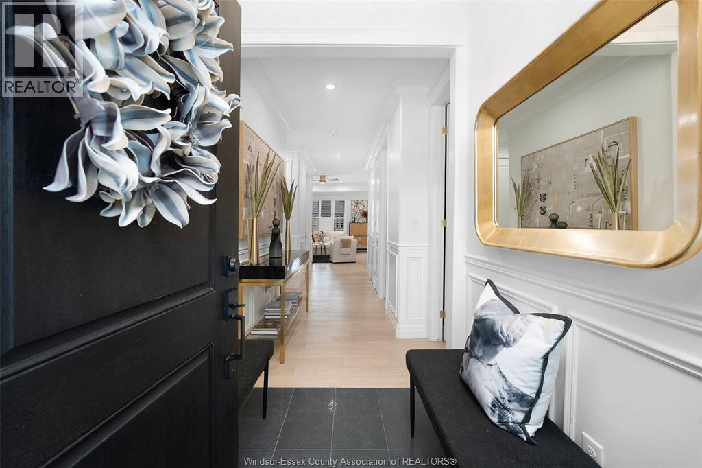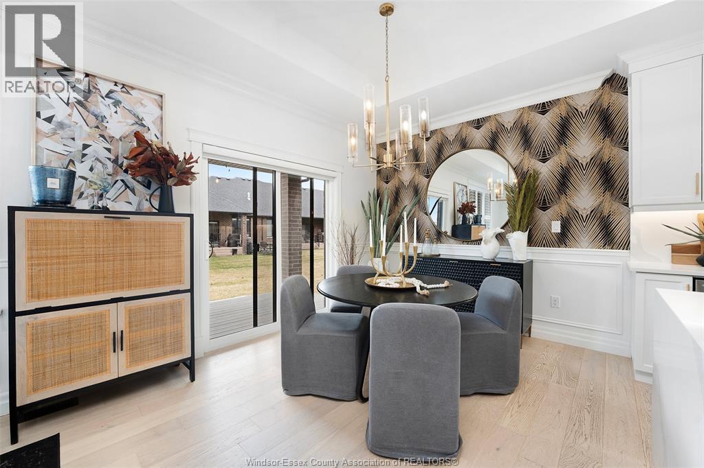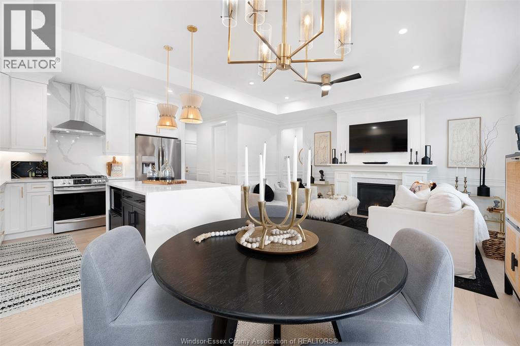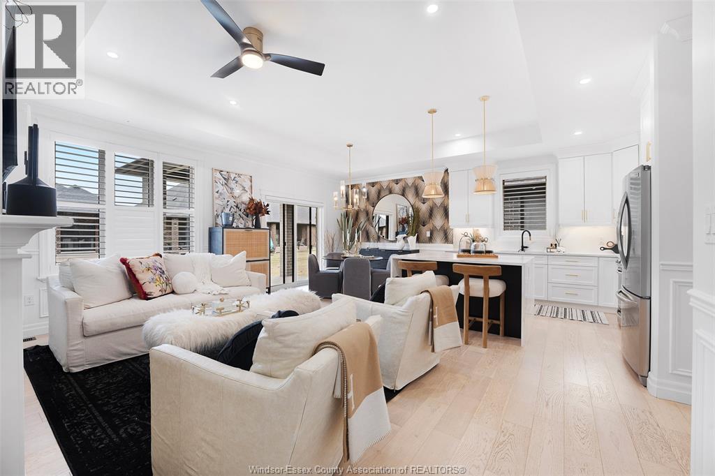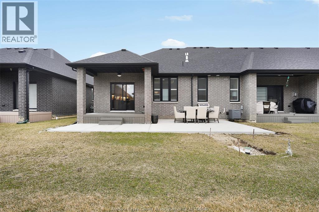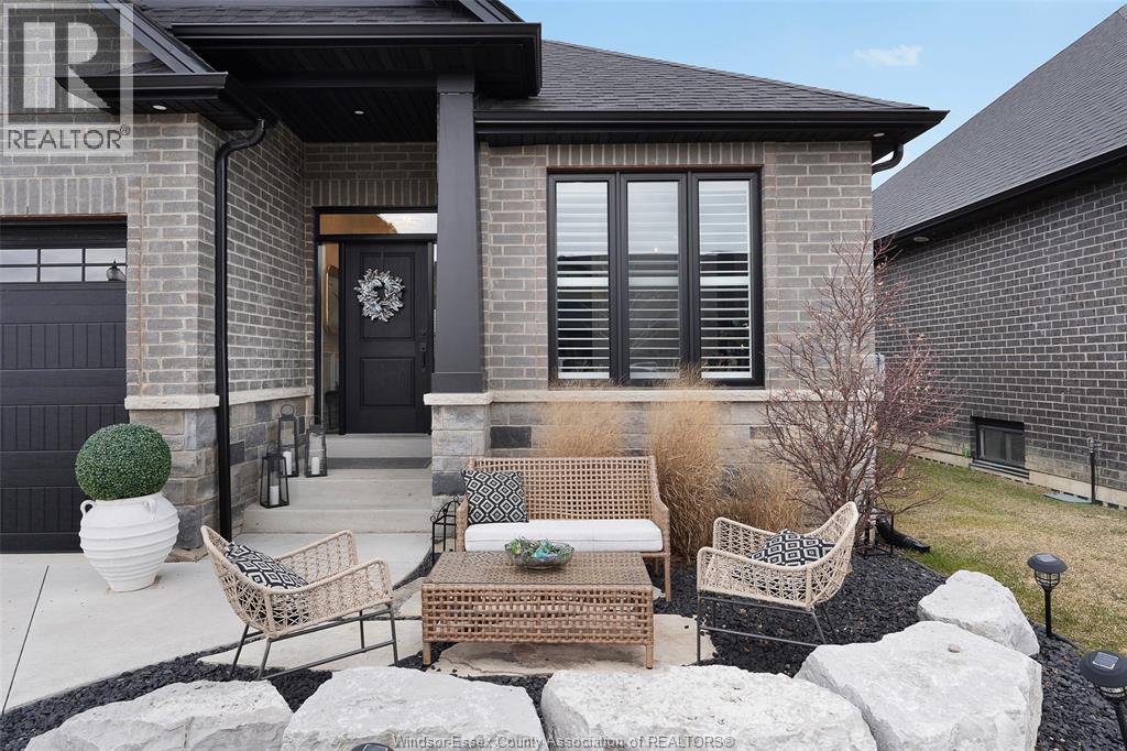 Not your typical townhome, this one is pure luxury! This 2-bedroom, 2-bathroom ranch-style townhome in sought-after Lakeshore was custom designed by Windsor's iconic David Burman of Mister Style. The stylish kitchen showcases a stunning waterfall quartz island and flows seamlessly into the living and dining areas --perfect for entertaining or relaxed everyday living. Elegant wainscotting adds timeless character, while bold Robert Cavalli wallpaper provides a unique designer touch along with California Shutters for privacy.The spacious primary suite includes a private ensuite and walk-in custom ensuite closet, with a second bedroom and full bath ideal for guests or a home office. Enjoy the newly finished concrete rear patio, offering a low-maintenance outdoor space. An exceptional opportunity for downsizers seeking style, quality, and carefree living in the heart of Lakeshore. $100.00/ month includes snow, grass, roof fund. (id:4555)