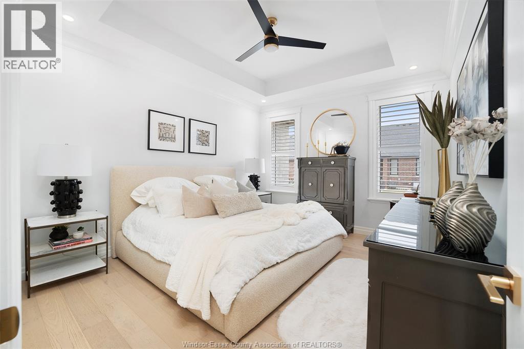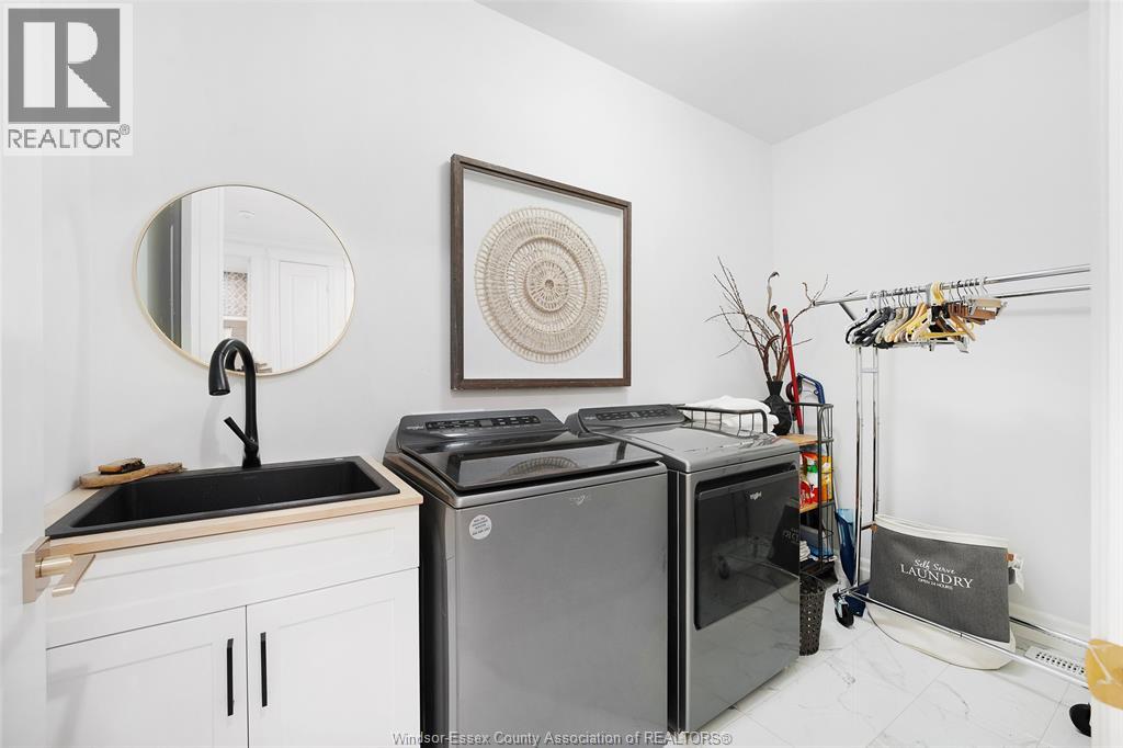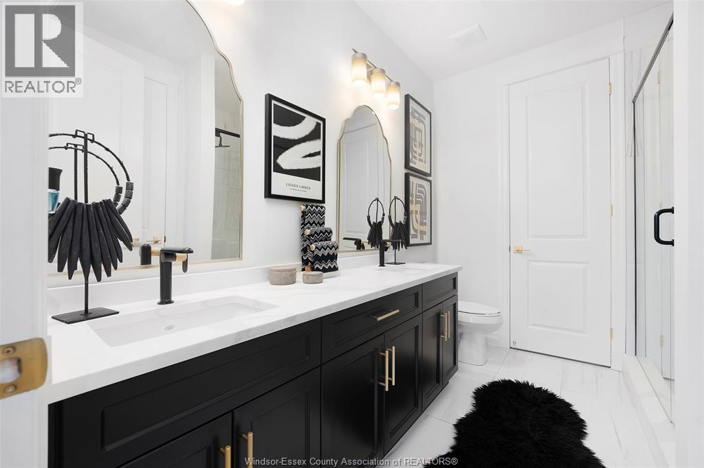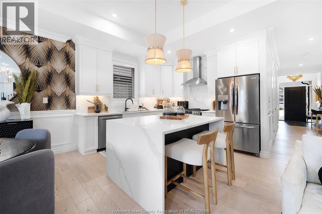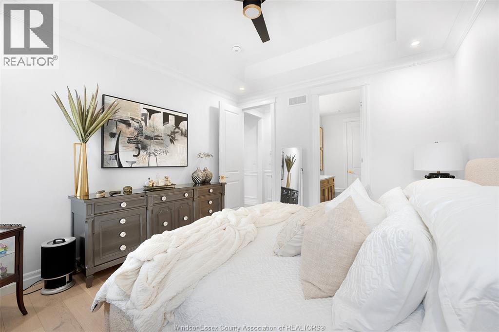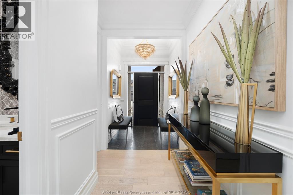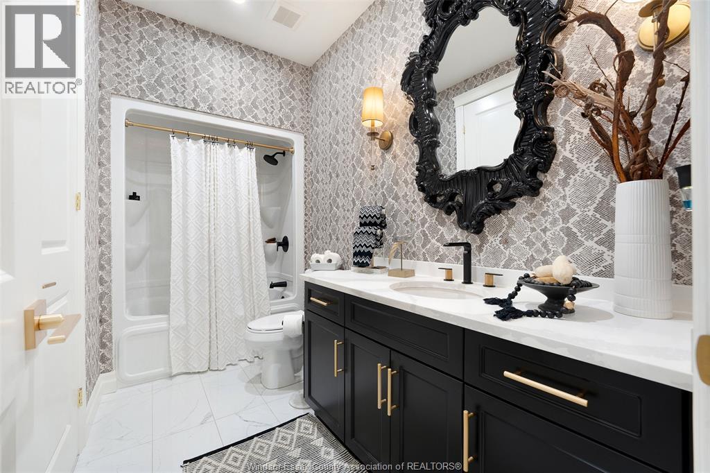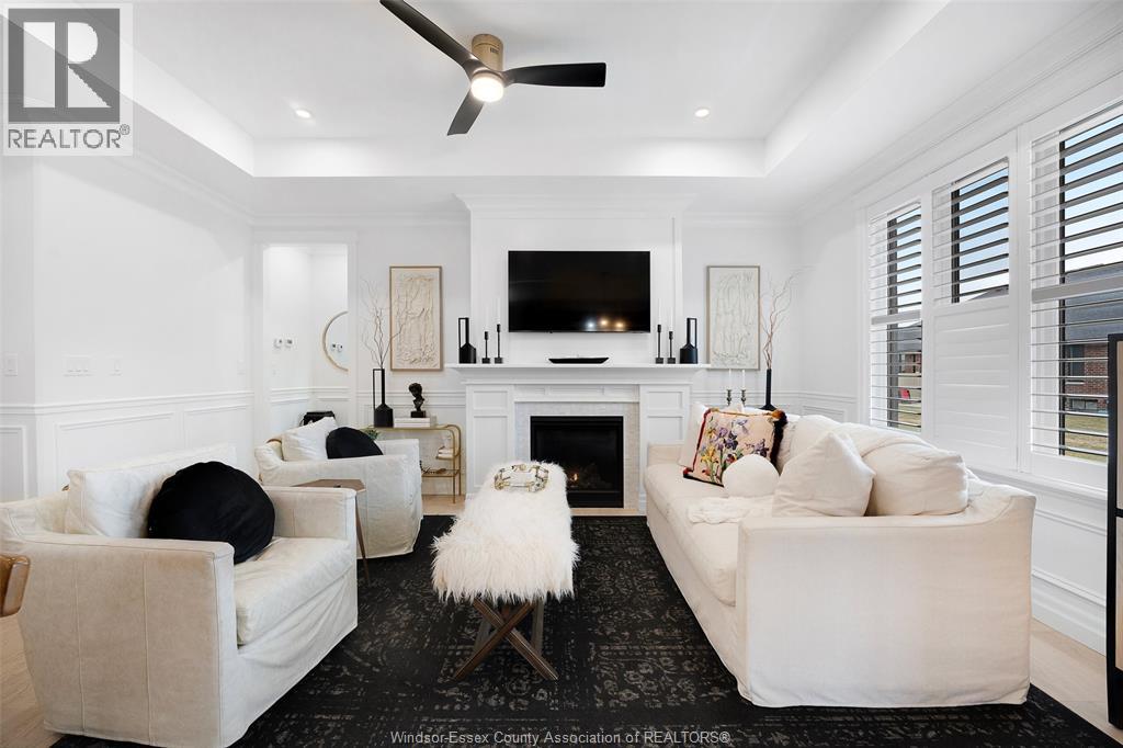 Not your typical townhome, this one is pure luxury! This 2-bedroom, 2-bathroom ranch-style townhome in sought-after Lakeshore was custom designed by Windsor's iconic David Burman of Mister Style. The stylish kitchen showcases a stunning waterfall quartz island and flows seamlessly into the living and dining areas --perfect for entertaining or relaxed everyday living. Elegant wainscotting adds timeless character, while bold Robert Cavalli wallpaper provides a unique designer touch along with California Shutters for privacy.The spacious primary suite includes a private ensuite and walk-in custom ensuite closet, with a second bedroom and full bath ideal for guests or a home office. Enjoy the newly finished concrete rear patio, offering a low-maintenance outdoor space. An exceptional opportunity for downsizers seeking style, quality, and carefree living in the heart of Lakeshore. $100.00/ month includes snow, grass, roof fund. (id:4555)