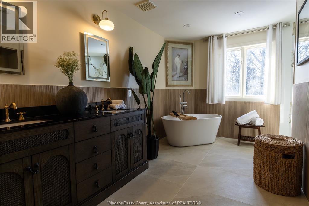 Welcome to effortless, move-in ready living on prestigious Old Tecumseh Road. This beautifully updated 5-bedroom, 2.5-bath two-storey offers over 3200 sq. ft. of refined comfort just steps to East Pike Creek and the shores of Lake St. Clair. Blending timeless character with modern design, every detail has been thoughtfully curated (2024–2026) for relaxed living and memorable entertaining. Step inside to sun-filled spaces featuring new and refinished flooring (2025/26), fresh paint, elegant trim (2025), and all-new main-floor windows (2025). The updated kitchen shines with stylish countertops and backsplash (2025), while full plumbing replacement (2025) offers peace of mind. Custom blinds (2025) complete the polished feel throughout. All bathrooms are beautifully renovated (2025), highlighted by a serene primary en-suite with soaker tub—your private retreat. The finished lower level is designed for lifestyle, with a custom tiered theatre room (2024) and dedicated home gym (2024). Outdoors, unwind or entertain on the expansive cedar deck (2024) surrounded by lush raised garden beds, herb gardens, cherry trees, and a peach sapling—your own private escape. With thoughtful features like hidden storage and a truly turnkey feel, this is a rare opportunity to simply move in and start enjoying everything this exceptional home and location have to offer. Theater TV's and Equipment Included. Sod being laid in April for back yard. (id:4555)