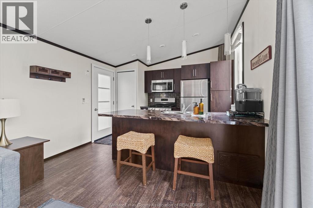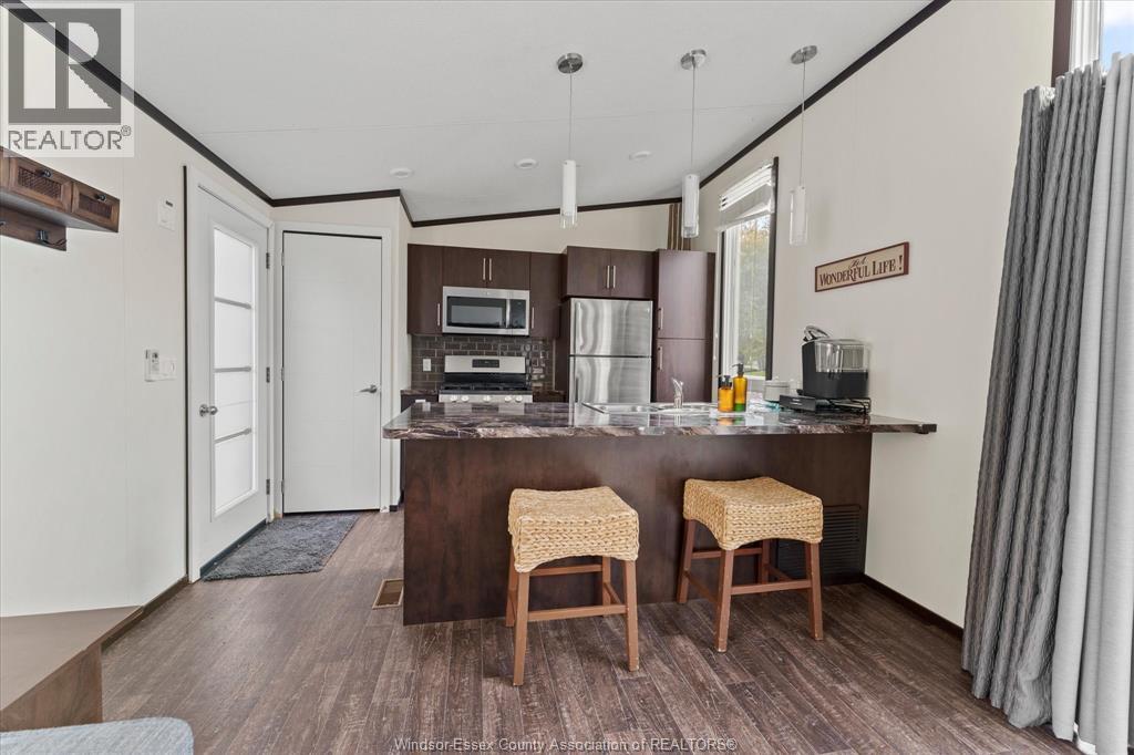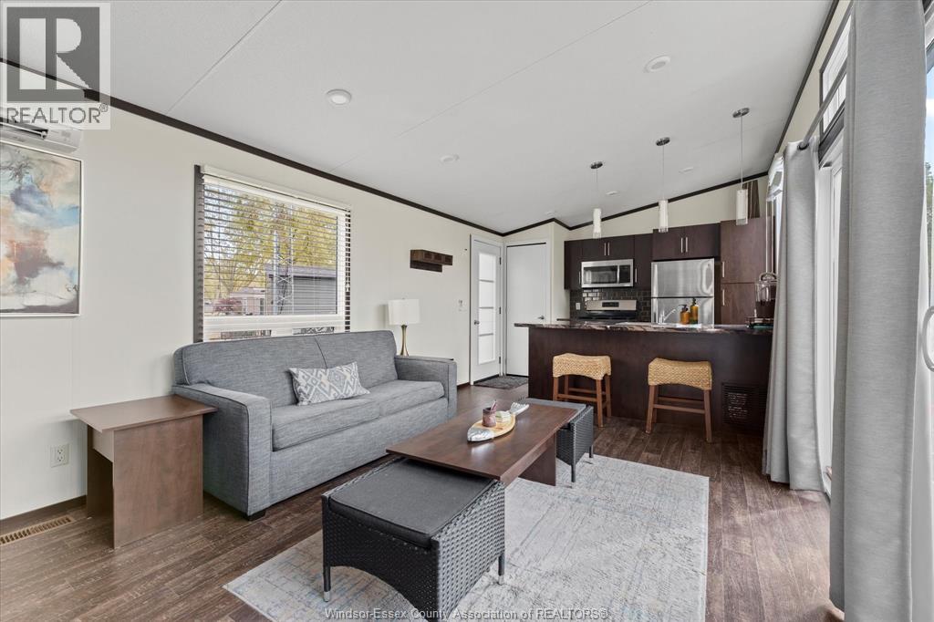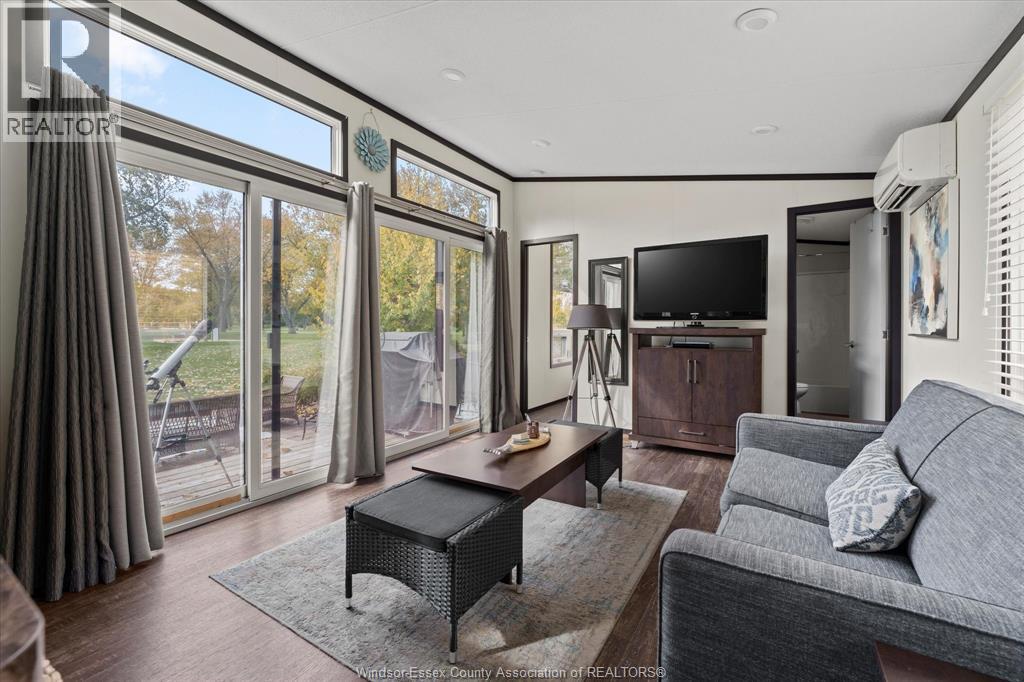 LOCATION!! Golf course view right from your fire pit. Turnkey 2-bedroom park model located in a secure, gated community just minutes from Lake St. Clair. Enjoy a low-maintenance lifestyle from May to October with grass cutting, garbage pickup, water, and electricity included. This fully furnished home features a brand new electric heat and A/C mini-split system (2024), propane hot water heater and stove, and sleeps 4 comfortably with a queen bed and pullout sofa. Resort-style amenities include an Olympic-size heated saltwater pool with lifeguard, recreation hall, and weekly adult and kids activities such as yoga, water aerobics, pickle ball, euchre, and bingo. All indoor/outdoor furniture, kitchenware, and BBQ are included — just turn the key and enjoy. Perfect as a summer getaway, retirement retreat, or Airbnb rental. Immediate possession available! (id:4555)