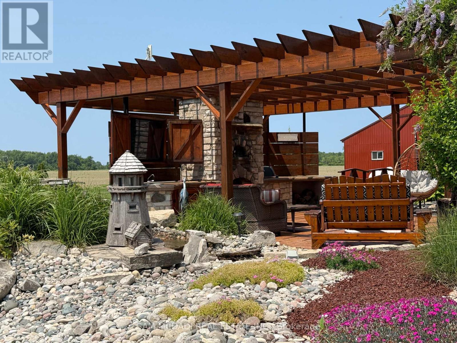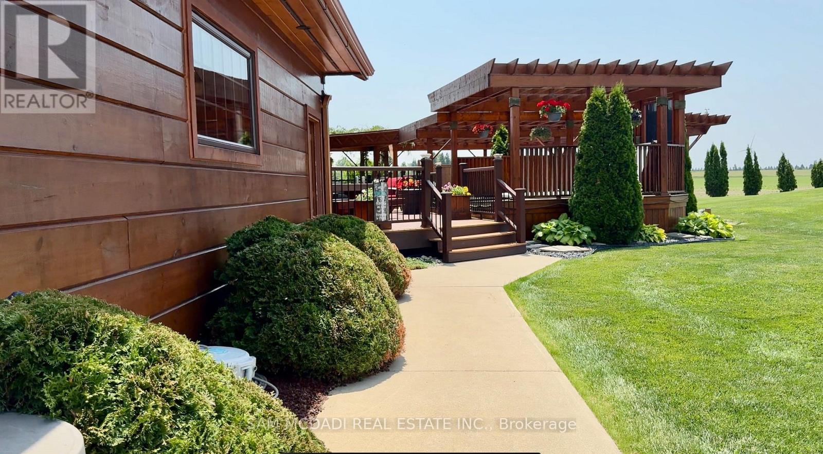 Welcome to this truly one-of-a-kind, custom-built log-style home set on a sprawling private lot. Perfectly situated just minutes from Grand Bend, Pinery Provincial Park, and Ipperwash Beach, this property seamlessly blends rustic charm with modern luxury, making it ideal as a full-time residence, weekend retreat, or investment getaway.Inside, the stunning open-concept design is highlighted by soaring 20-foot cathedral ceilings, abundant natural light, and the ultimate comfort of heated floors across all levels. The finished lower level is an entertainer's dream, complete with a spacious recreation area, a custom bar, a pool table, and two additional bedrooms. Outside, enjoy seamless indoor-outdoor living on a massive 12' x 49' back deck featuring a built-in outdoor kitchen, a wood-fired pizza oven, and a relaxing hot tub. The tree-lined, beautifully landscaped grounds also offer a decorative rock garden, a water fountain, and an inviting front porch for your morning coffee.Adding incredible value is a heated 3,710 sq. ft. workshop that provides exceptional space for hobbies, business use, or storage. Rounding out this spectacular property are recent upgrades including new windows (2022), dual A/C units (2023), and a new boiler (2023), along with the convenience of both municipal and well water. This property truly checks every box for comfort, versatility, and lifestyle appeal. (id:4555)