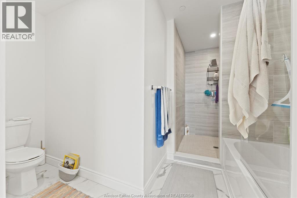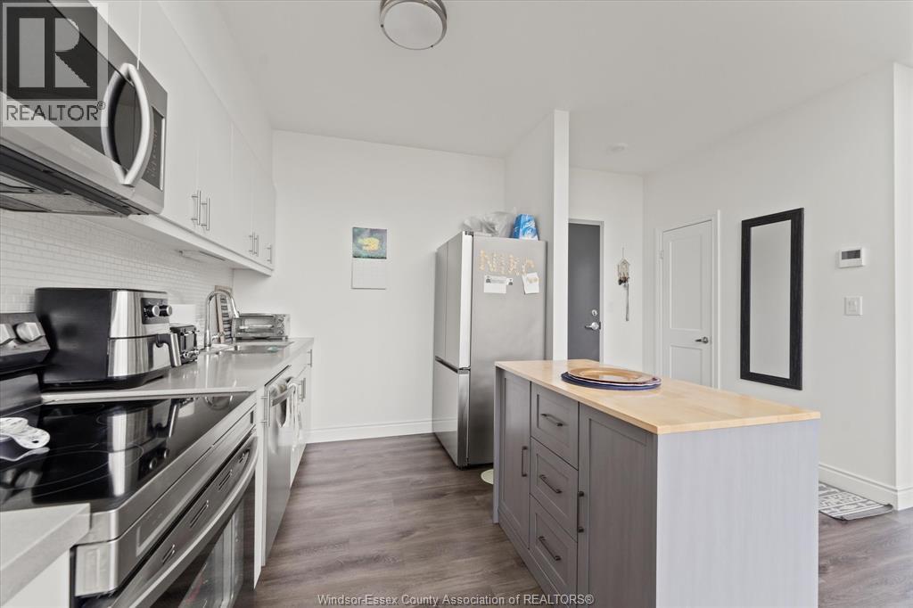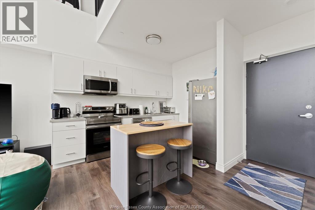 This oversized, approx. 1500 sq ft loft-style condo offers two bedrooms plus a den and two full bathrooms, including a stunning primary ensuite and a spacious walk-in closet. Enjoy your own private rooftop balcony. Elegantly designed, the unit boasts a massive living room with soaring two-storey windows that flood the open-concept space with natural light, seamlessly connecting the living, dining, and kitchen areas. In-suite laundry and stainless steel appliances are included. Ideally located near all major amenities, including Highway 401, St. Clair College, the University of Windsor, shopping, and scenic walking trails. The building also features a party room and fitness center for residents to enjoy. (id:4555)
