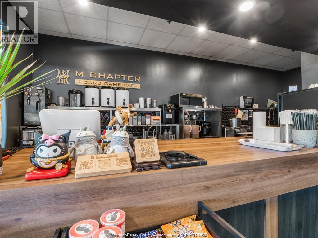 A truly unique opportunity to take over one of the most iconic cafes in the Windsor Area. Prime location inside the high traffic Windsor Crossings Outlet Mall. M Chapter Board Game Café has been successful in combining delicious Bubble Tea, finger licking snacks and enjoyable Game Time, bringing happiness to its customers both locally and from Detroit to Toronto. Renovated from Scratch just 4 years ago, tastefully decorated with High ceilings, LED mood lighting, BOSE surround sound system, security cameras. With an established loyal clientele, reasonable monthly rent and Liquor Licensed for all indoor area, it boasts huge potential to evolve or expand. Hundreds of Board Game titles, Gaming Consoles (PS5, Nintendo Switch) loaded with games and all inventory can be included for a “turn-key” business opportunity. Big Office/ Storage room, usable outside patio area provide a ambitious entrepreneur with room for ideas to grow!call for viewings. (id:4555)