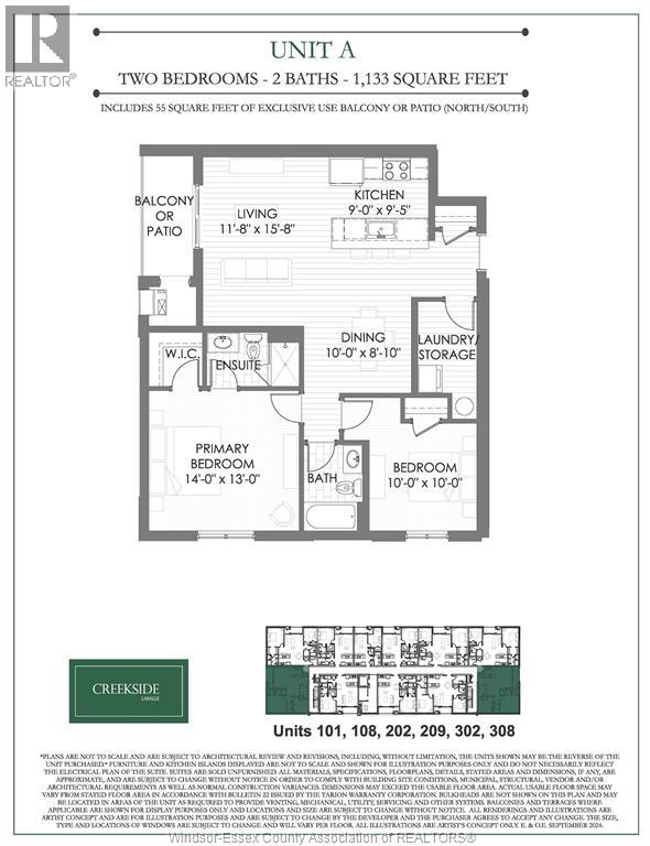 A spectacular 2 bed, 2 bath unit by Valente Development with all the upgraded conveniences you have come to expect from this builder. One of the best locations in LaSalle for shopping, doctors, banks, etc., dog park, walking trails and parks. Open plan design, kitchen with quartz countertops, undermount lighting, pantry, in suite laundry. Spacious p/b with tray ceiling, ensuite with sparkling glass and tile walk in shower, main bathroom with tub. Luxury upgraded vinyl plank flooring throughout except for bathrooms which porcelain floor. Linen closet. Garbage chute, social/party room for tenants use with kitchenette and rest room. Unassigned surface parking included. Garages to lease. On Site Manager, service department. Includes 5 S/S appliances. All heating equipment and hot water tank not subject to any rental fees. 1 year lease. Proof of employment and credit check required with application. Tenant pays utilities, water, gas, hydro. All Showings by appointment. (id:4555)