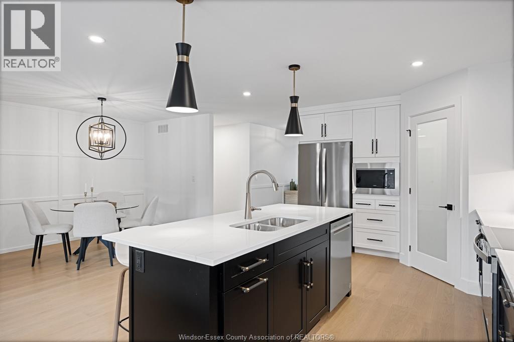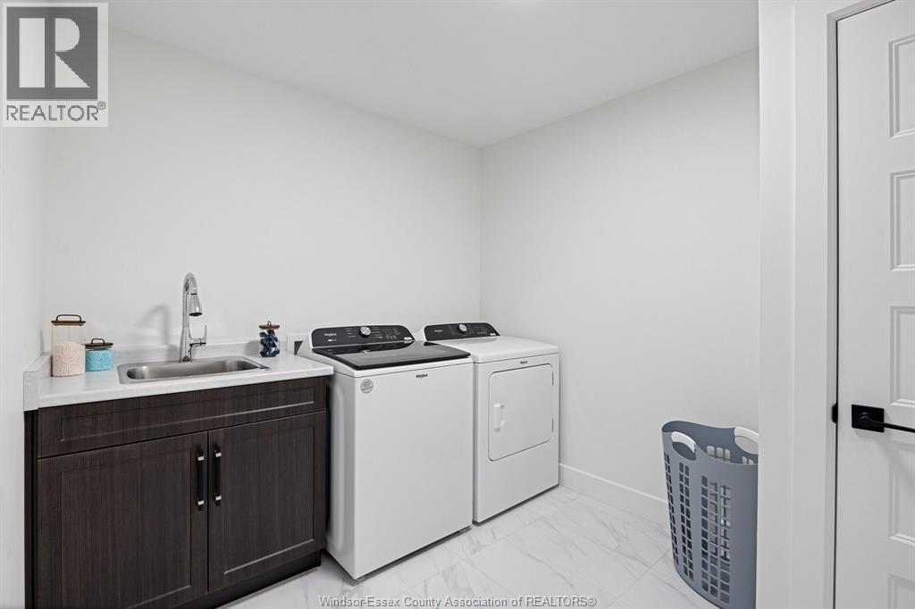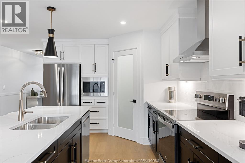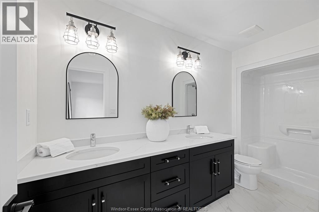 Welcome to Villa Oaks, a sought-after subdivision tucked just off Martin Lane in LaSalle, close to the waterfront, marinas, and LaSalle Landing. This former model home by Orion Homes offers approximately 1,503 sq ft of beautifully finished living space plus a fully finished basement. The main floor features 2 spacious bedrooms and 2 full baths, including a primary suite with ensuite and walk-in closet. Open-concept living/dining area with tray and coffered ceilings. Gorgeous kitchen with island, walk-in pantry, quartz countertops, subway backsplash, under-cabinet lighting, and full Whirlpool stainless steel appliance package. Hardwood throughout main living areas and bedrooms; ceramic in wet areas. The finished basement includes 2 additional large bedrooms, a full bath, oversized closets, a large living room, and ample storage. Loaded with upgrades including designer lighting, custom window treatments, rear covered porch, concrete driveway, front sod, and professionally landscaped. (id:4555)