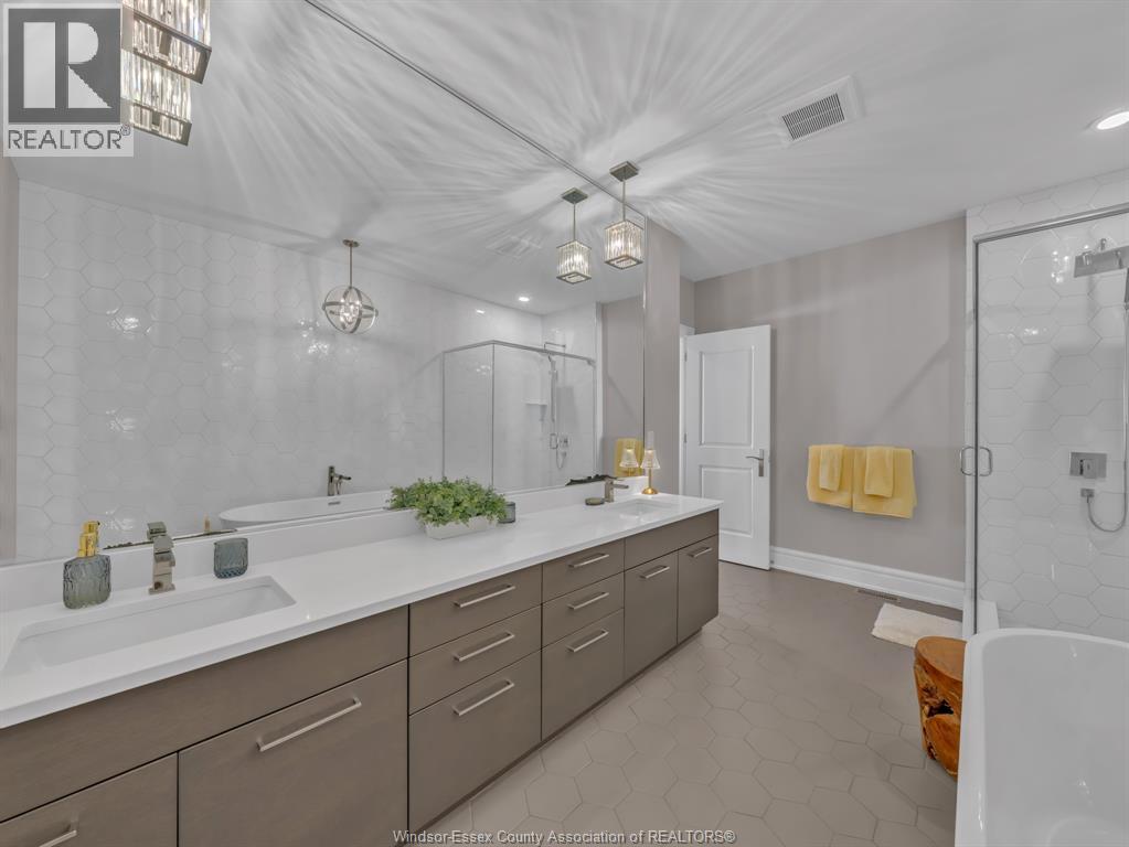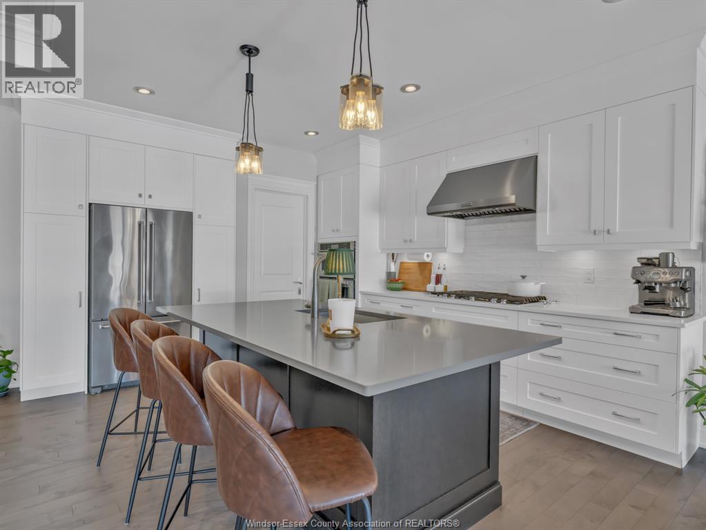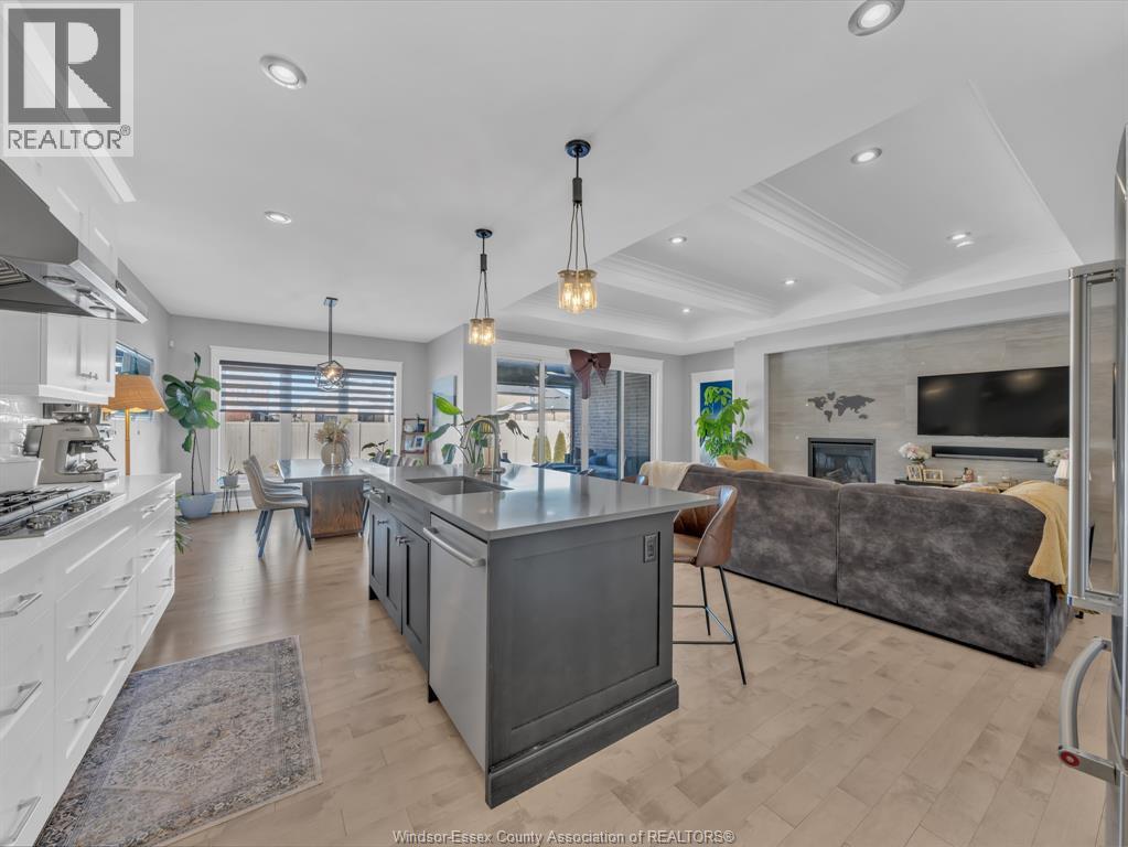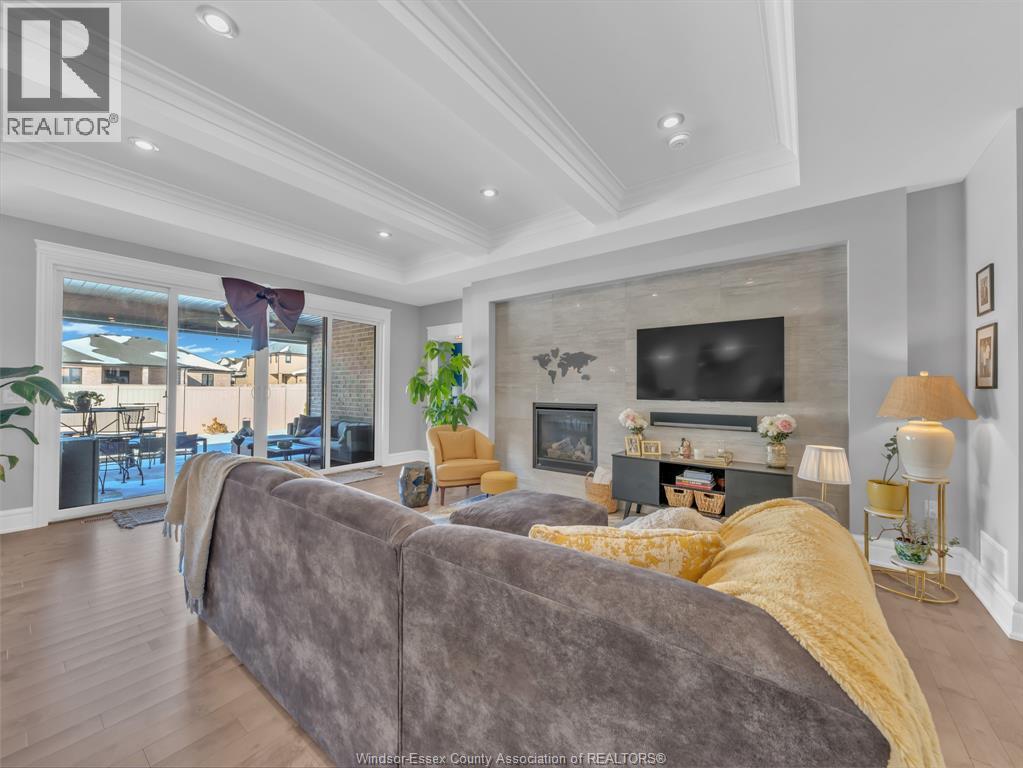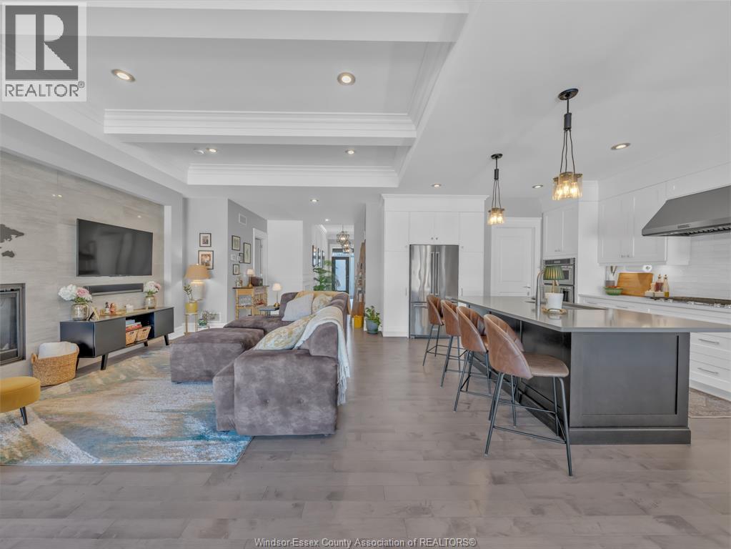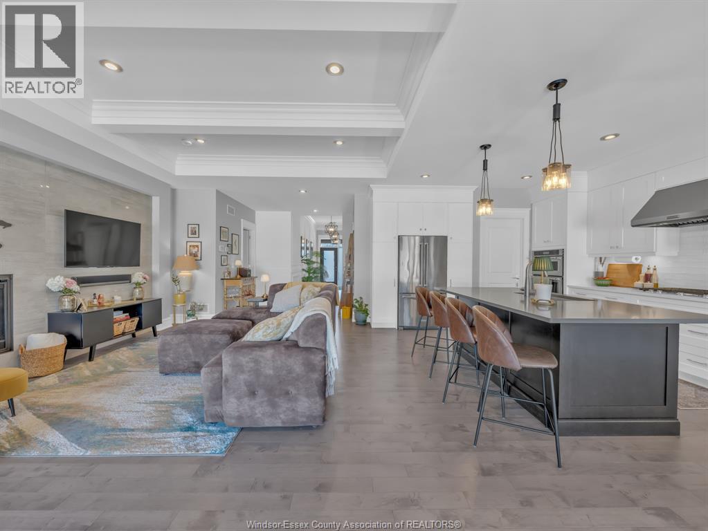 Welcome to 3639 Seven Lakes, LaSalle! Showcase Stopper. This fully upgraded townhome Approx. 2050 square feet on Main Floor features 3+1 Bedrooms, 3 full bathrooms with granite, glass and tiles. Premium selections on flooring trim, doors, glass, porcelain, wood, hardware and more! Coffered ceilings, beautiful tile wall gas fireplace, tall doors, modern kitchen w/stainless built in appliance appliances, tiled backsplash, crown moldings. Large primary bedroom suite with walk-in closet, and stunning ensuite with his/hers sinks, jacuzzi tub & glass shower. Large laundry on main floor/ lots of cabinets. Covered rear area patio for entertaining with extended patio. Large fully finished lower/ beautiful bar area and recreation room with additional room or office space. Move in ready, immediate possession/flexible closing. Double garage with driveway that is fully independent from others. Townhome Assoc is $127/month incl grass/snow/sprinkler/window maintenance. (id:4555)
