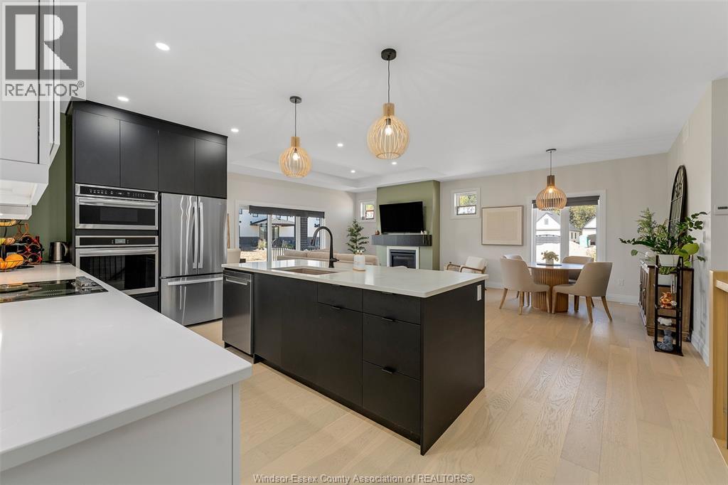Welcome to 8028 Meo Blvd in Silver Leaf, LaSalle’s premier development, ideally located just minutes from Highway 401 and the U.S. border. No Association Fees! This end-unit Ranch townhome offers additional windows with natural light and a thoughtfully designed open-concept layout. The main floor features two spacious bedrooms, two full bathrooms, and a bright living area highlighted by a gas fireplace. The upgraded kitchen includes quartz countertops, premium cabinetry, and an oversized island, flowing seamlessly into the dining area with large triple patio doors leading to a covered outdoor patio. Convenient main-floor laundry completes the level. A grade entrance provides future potential for a mortgage helper or in-law suite. Quality upgrades throughout construction include hardwood flooring, tile, kitchen cabinetry, and an oversized island. All appliances are included! Double attached garage with inside entry. Newly sodded with inground sprinkler system front & back. Enjoy a highly walkable lifestyle with scenic trails nearby, as well as a short walk to a newly developed shopping centre featuring Tim Hortons, Shoppers Drug Mart, Food Basics, McDonald’s, and more. Close to schools and everyday amenities. Flexible possession available. (id:4555)