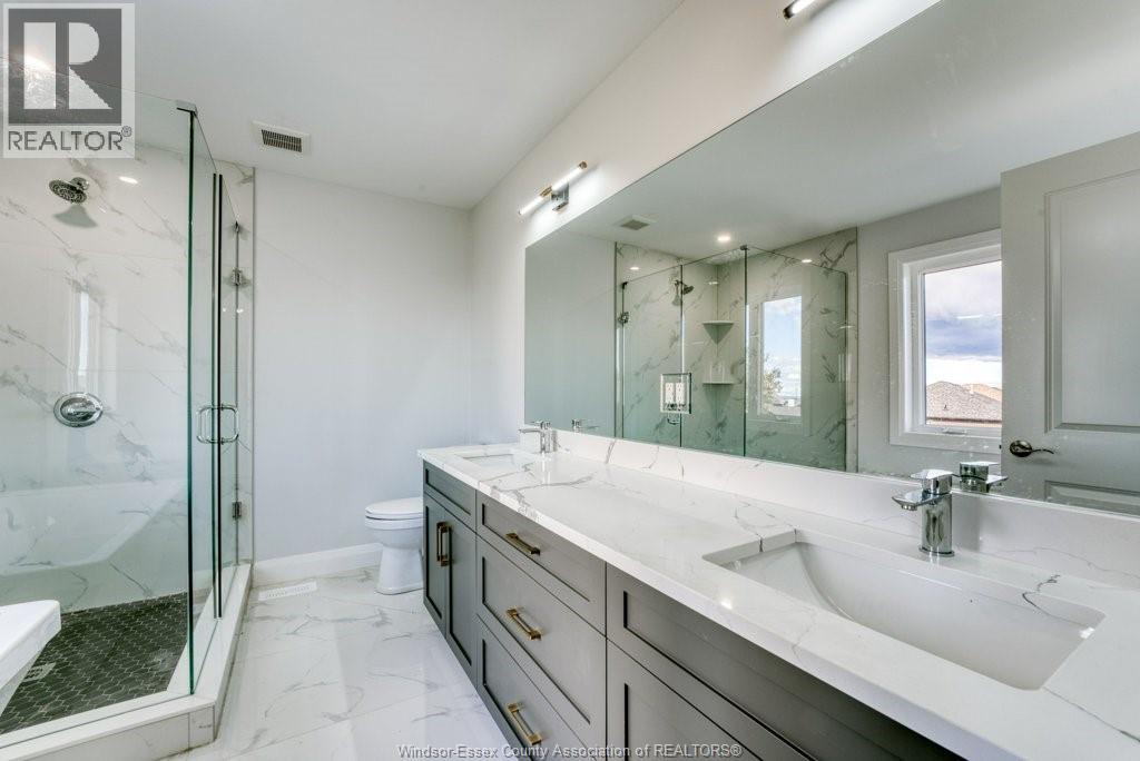 Welcome to Golfwood Lakes Estates, Leamington’s most prestigious golf course address, nestled beside championship Erie Shores Golf & Country Club and moments from Leamington marina. This exquisite, brand-new model home showcases refined open-concept living with five spacious bedrooms, four spa-inspired bathrooms, and a two-car garage featuring a stylish third garage door to the backyard for elegant entertaining. Discover designer finishes throughout: custom kitchen with quartz countertops, engineered hardwood, oak stairs, and designer lightings. The versatile main-floor bedroom can serve as a private office, while the luxurious primary retreat impresses with a large walk-in closet and indulgent 5-piece ensuite. Appliances, driveway, and sodding are included; personalize your dream home. Enjoy rare, direct access to championship golf, boating, fine dining, and exclusive amenities—luxury living redefined. Book your private tour today! (id:4555)