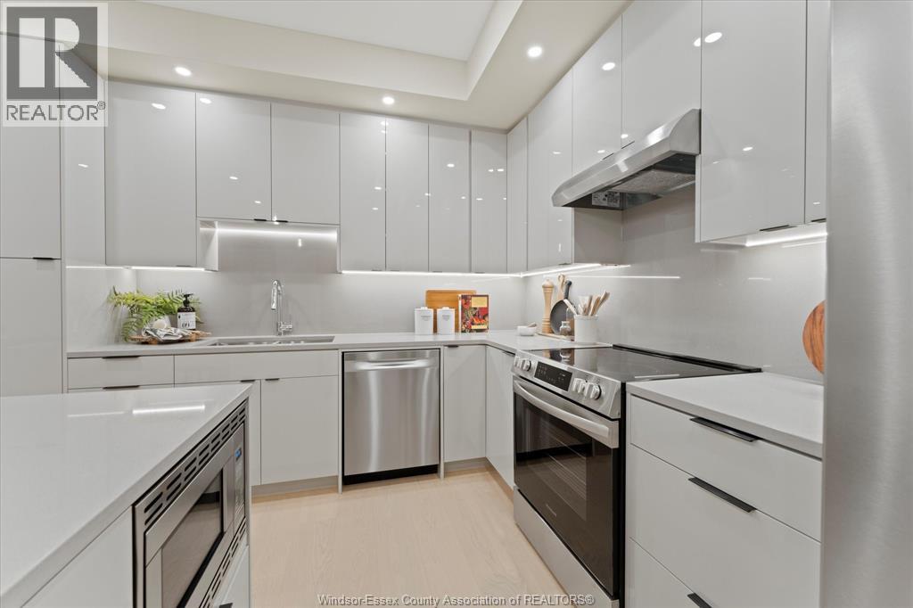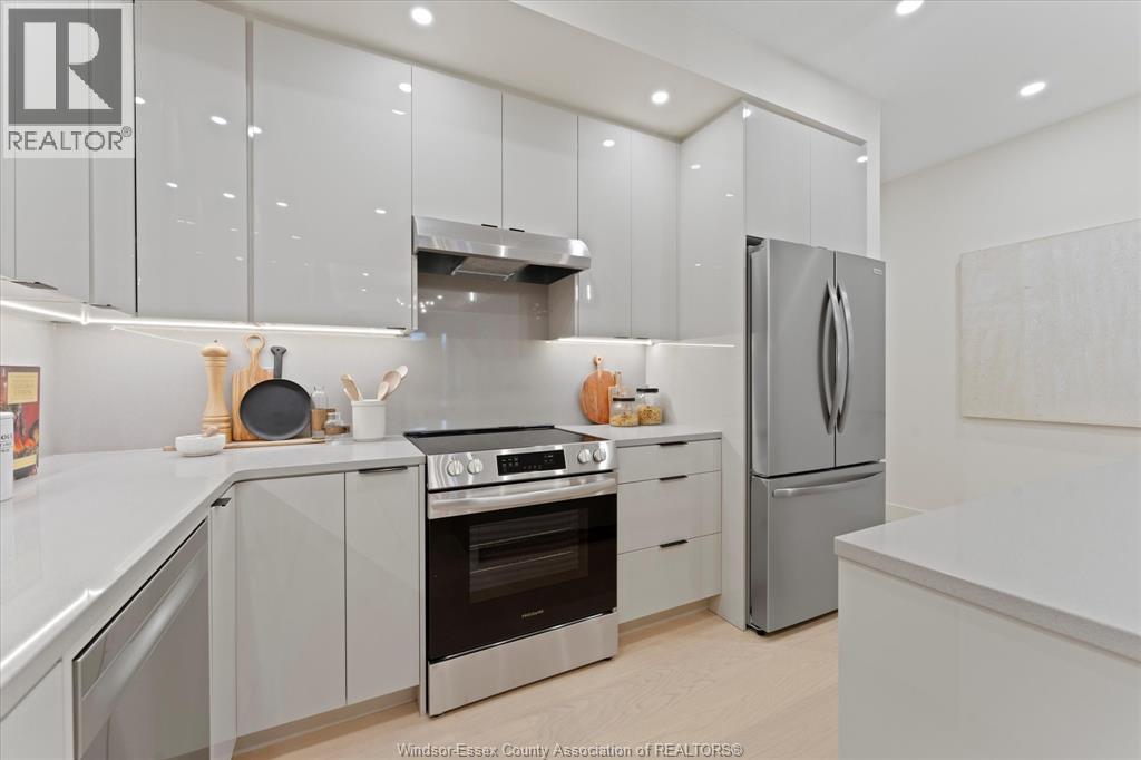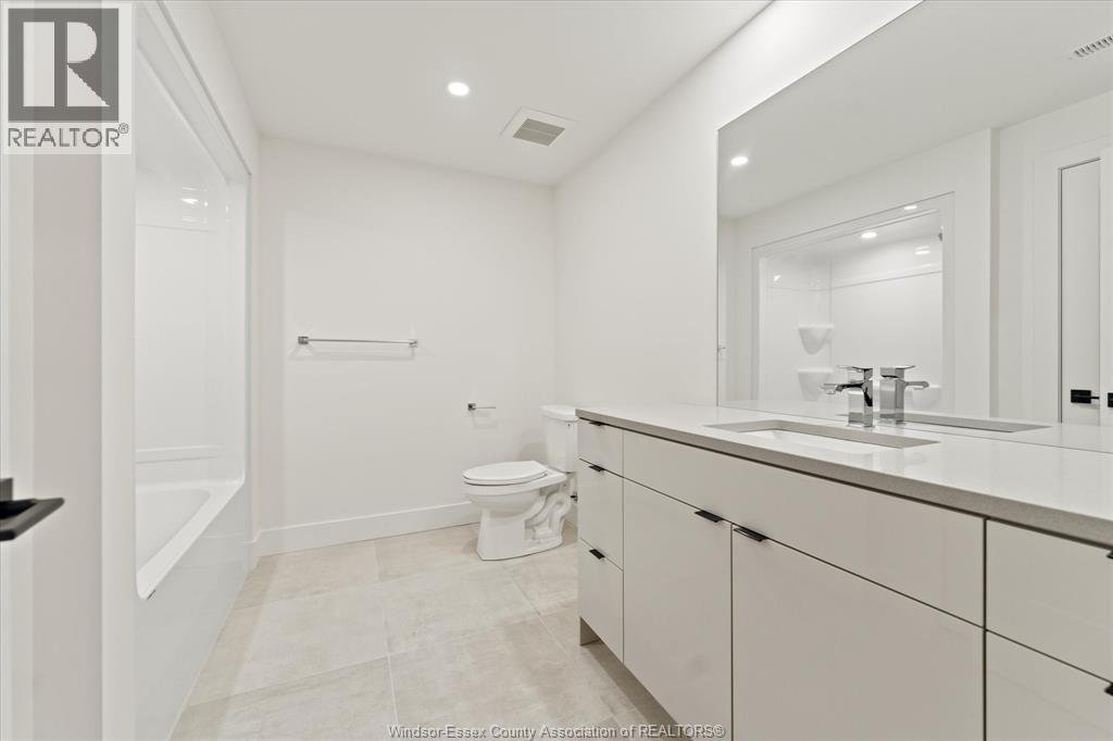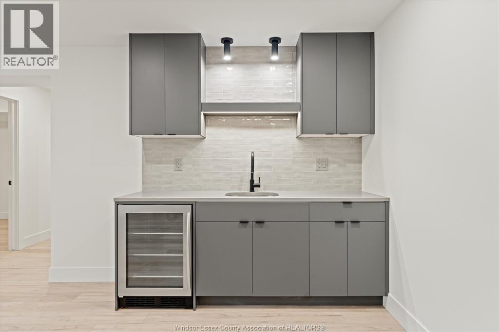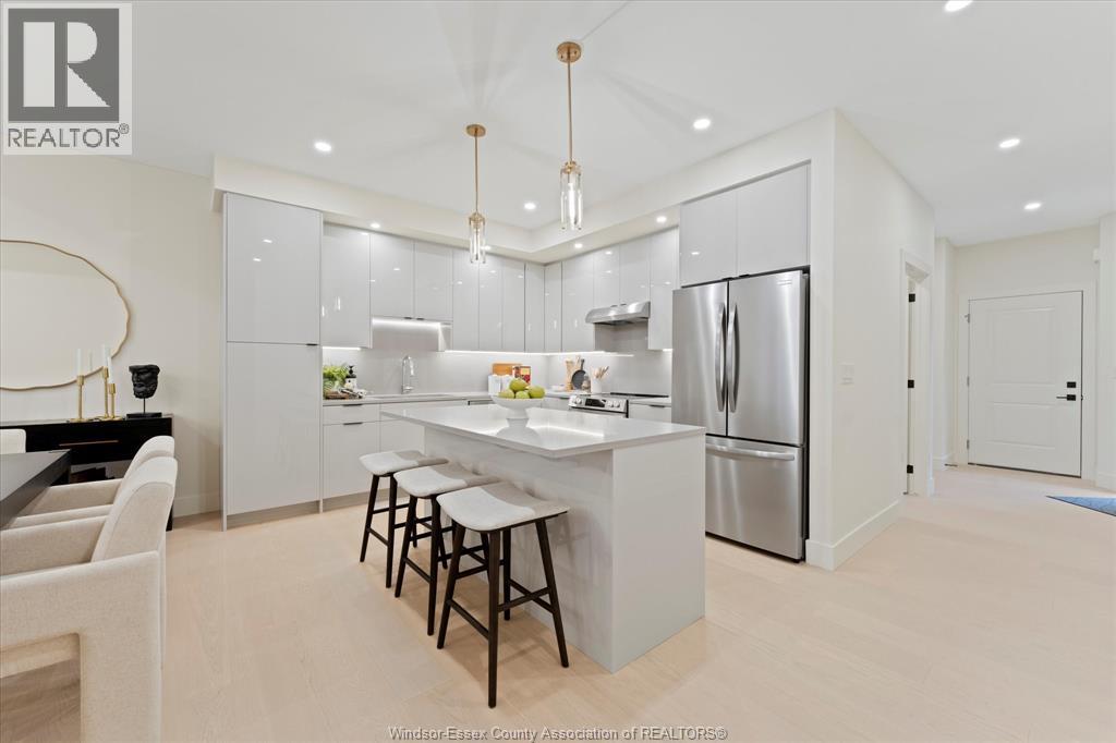 New Millennium Homes presents this fully finished turnkey luxury townhome in Leamington newest subdivision, Bevel Line Village. This inside townhome is fully loaded and has so much to offer. Home features two bedrooms and two bathrooms on the main floor including a large primary bedroom with a deep custom walk-in closet, fully tiled ensuite bathroom and custom wainscot accent wall with pendant lighting. Laundry room is on the main floor. Step into your modern kitchen with high gloss cabinetry, quartz countertops and backsplash. Tons of cabinetry and storage. Relax in the large living area featuring an electric fireplace and custom mantel. All window coverings are brand new and included. Lower level is completely finished featuring a large living room, two bedrooms, full bathroom with a tub and a sleek modern wet bar. Exterior includes two car garage, landscaping, sodded front and back, yard is fenced in and concrete driveway is done with cement pad in yard. Microwave is Included. All other appliances are brand new in home and available for purchase. Minutes away from Point Pelee Park, Marina, Golf course and all shopping amenities. (id:4555)