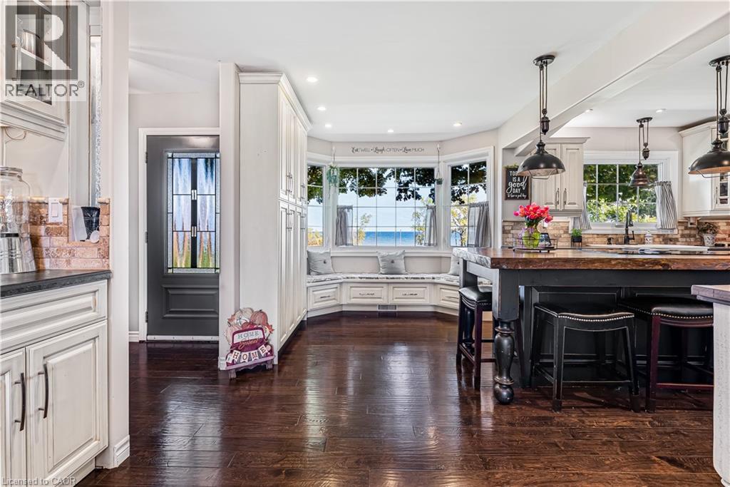 This beautifully restored 1930s farmhouse combines modern updates with classic character, and clear views of Lake Ontario. The property is located just minutes from Jordan Village, and is also within walking distance of Jordan Harbour Conservation Area - home of the Niagara Rowing School. Car commuters will appreciate the quick QEW access, and that you're just a short walk from the Victoria Avenue Vineland MTO carpool lot with its GO Bus service to Toronto and to Niagara. The home features 4 bedrooms, 2.5 baths. The main floor consists of a formal living room with a wood-burning fireplace and walkout to a lake-view porch. The kitchen is the heart of the home, with an 8-foot island with cooktop, double wall ovens, stainless steel appliances, and a bright bay window seat overlooking the lake. A large family room, separate dining room, laundry, and powder room complete the main level. Two staircases take you to the 2nd level, with main bathroom, three bedrooms, and a fourth spacious primary suite with a walk-through closet/loft area, and 5-piece ensuite with a freestanding tub, glass shower, and double sinks. One of the bedrooms on this 2nd floor includes access to a large balcony, where you can catch some great views of the neighbouring strawberry fields and Lake Ontario. Major updates to the home include a steel roof (2015), furnace and A/C (2017), and 200-amp electrical service. The detached garage has two 1.5-size bays, and the driveway accommodates parking for 8+ vehicles. The yard includes an above-ground pool, play area with zipline and fort, and open views. At just over 1 acre, this property offers plenty of room for an active family with the bonus of its proximity to Jordan Harbour, where you can enjoy fishing, canoeing, kayaking, rowing, or paddleboarding - and full access to Lake Ontario. Come see, come sigh! (id:4555)
