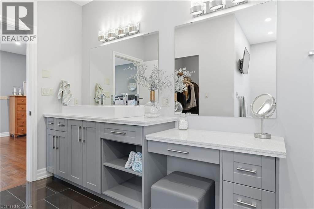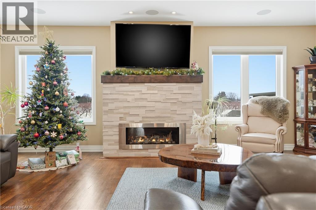 An exceptional custom residence in the heart of Jordan Station. Welcome to 4085 Jordan Road a meticulously crafted home where architectural flexibility, refined finishes, and thoughtful design come together. This five-bedroom, six-bathroom estate was built with intention, offering both immediate comfort and long-term adaptability. The main floor showcases quarter-sawn white oak flooring, which was laid raw and finished in place, throughout a bright, open-concept layout. Free of load-bearing walls, the interior offers exceptional flexibility, making future reconfiguration simple. The custom kitchen features maple cabinetry and quartz countertops, offering a timeless, functional layout ideal for both everyday living and entertaining. A private in-law suite with separate entrance and patio, along with main-floor laundry, adds outstanding versatility. Oversized windows allow natural light to pour in while offering peaceful views of the surrounding peach orchard. Descending the striking open-tread floating staircase of solid white oak, accented with Swarovski crystal spindles, the fully finished lower level unfolds as a true extension of the home, featuring 8-foot ceiling heights. Heated travertine limestone flooring, divided into five independent heat zones, delivers exceptional year-round comfort throughout. This level features two spacious bedrooms, each with its own 3-piece ensuite, a large open-concept living area with kitchenette, and a dedicated office. The garage features heated 6-inch-thick concrete floors, built to last, along with walk-down access to the basement and central vacuum with outlets on opposite sides of the garage for added convenience. A detached one-car garage at the rear of the property provides additional storage and functionality. Purposefully built and thoughtfully designed, 4085 Jordan Road offers a rare opportunity in one of Lincoln's most desirable settings. (id:4555)