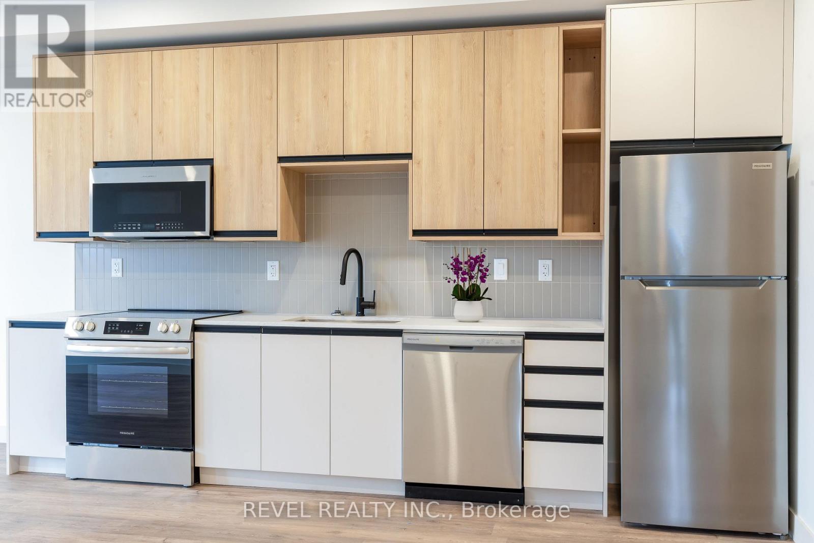 Experience modern living at The Madera with assigned secured/heated parking, smart home technology, and instant high-speed internet (included in rate from Cogeco) throughout the building. This pet-friendly community offers a safe and welcoming environment for those tenants seeking an upgraded lifestyle. This development offers modern interiors featuring luxury vinyl tile (LVT) in the foyer, kitchen, and living areas, with ceramic tile bathroom floors and tub/shower surrounds. Floor-to-ceiling windows, private balconies, and in-suite laundry are included in every unit, with two-bedroom layouts offering a tub in the main bath and a stand-up shower in the ensuite. Kitchens are equipped with large islands and quartz countertops, custom soft-close cabinetry, polished quartz counters with under mount stainless steel sinks and pull-down faucets, tiled backsplashes, under cabinet LED lighting, and a full stainless steel appliance package including dishwasher and microwave. Mechanical and plumbing features include air-source VRF heating and cooling, ERVs in each unit, modern plumbing fixtures, domestic hot water provided by an air-source heat pump, and a high-efficiency electric water heater. The building is finished with pot lights throughout, stylish flush-mount fixtures in living/dining areas and bedrooms, a TV-ready living room wall, and energy-efficient LED lighting across all common and private spaces. (id:4555)