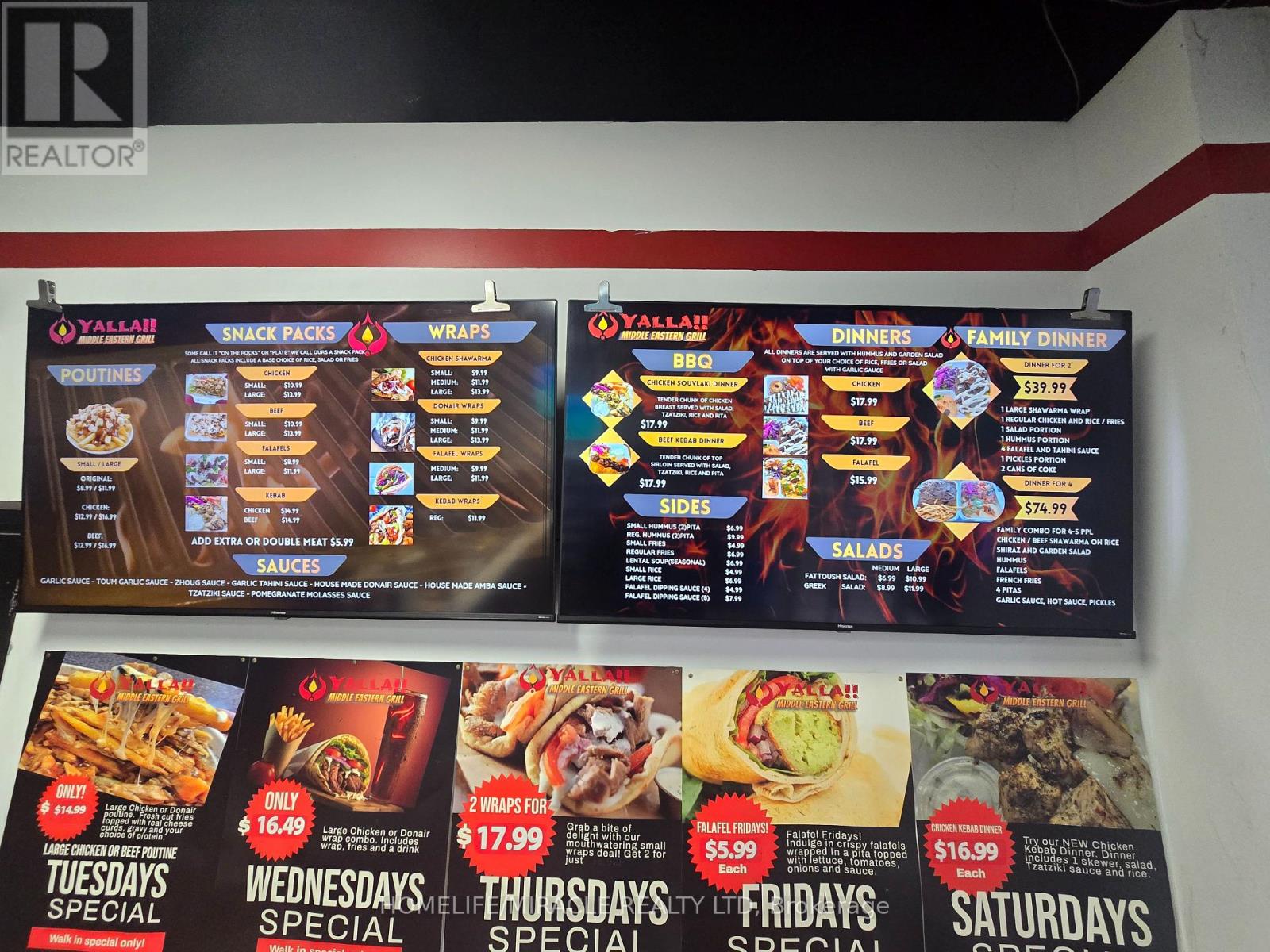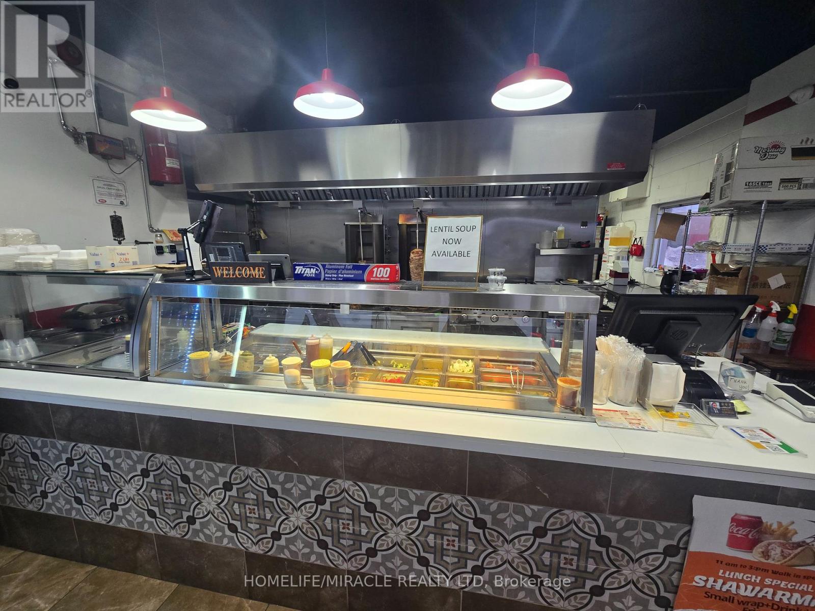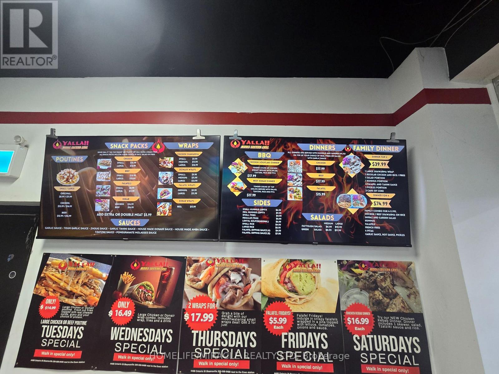 Prime quick-service restaurant opportunity located on Ontario Street in downtown Beamsville. This high-visibility location, just off the QEW, benefits from steady traffic and is ideally positioned to attract customers exiting the highway. Currently operating as Yalla Middle Eastern Grill, the business has demonstrated growing sales and strong income potential for an owner-operator. The space offers flexibility and may be converted to a different concept, cuisine, or franchise. The seller is willing to provide training to support a smooth transition. The premises feature a 13-foot commercial hood and newer equipment throughout, offering a well-equipped turnkey setup. Please do not approach staff or ownership directly. (id:4555)