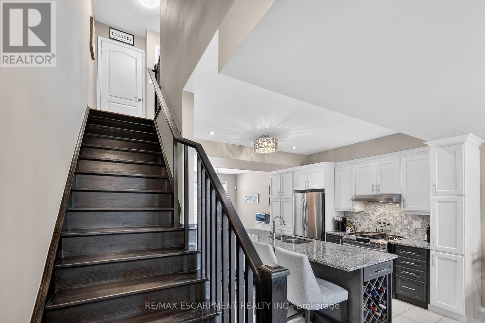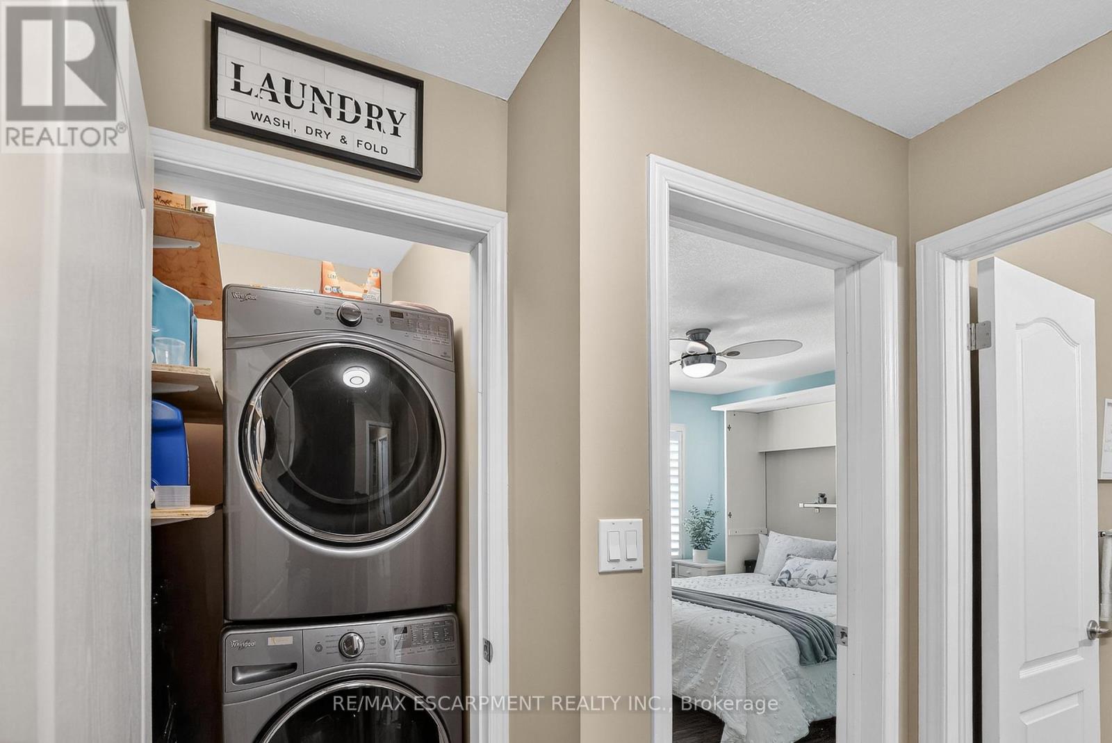 SMART, STYLISH LIVING ... Comfort, functionality & smart design come together at 5048 Serena Drive in Beamsville. This well-appointed 2-storey stacked condo townhome offers an easy-care lifestyle w/thoughtfully designed living spaces and quality finishes throughout. Entry begins with a tiled foyer featuring wood stairs leading to the main living level and down to convenient INSIDE ACCESS from the single garage, located at rear of building. Main floor living space is BRIGHT & INVITING, anchored by a spacious living room w/durable vinyl flooring & patio doors that open onto a BALCONY - a perfect spot to enjoy fresh air or a quiet moment. Just off the living area, a utility room provides storage & mechanical access. The kitchen & dinette area offer a comfortable everyday layout w/tile flooring, breakfast bar w/GRANITE countertop & generous cabinetry providing excellent storage & workspace. Pot lights enhance the kitchen area, and a convenient 2-pc bath w/UPGRADED high-profile toilet completes the main level. Upstairs, the second level offers 2 bedrooms, 2 bathrooms, and convenient, stackable, BEDROOM-LEVEL LAUNDRY. Vinyl flooring runs through the hallway and bedrooms, creating a clean and cohesive feel. The second bedroom features a MURPHY BED, providing flexible space for guests, home office, or everyday use. Spacious primary bedroom offers a comfortable retreat w/professionally installed closet organizers & 3-pc ensuite featuring a tile surround shower & NEW high-profile toilet. A separate 4-pc bath w/another NEW high-profile toilet completes the level. California shutters throughout the upper level add timeless style and privacy while allowing natural light to flow through the space. Well-designed, low-maintenance living in a convenient Beamsville location that is close to local amenities, schools, shopping, wineries, and easy highway access make this home a fantastic option for all. CLICK ON MULTIMEDIA for virtual tour, drone photos, floor plans & more. (id:4555)