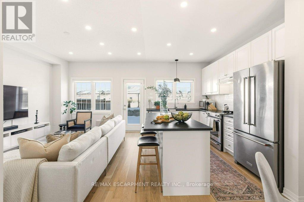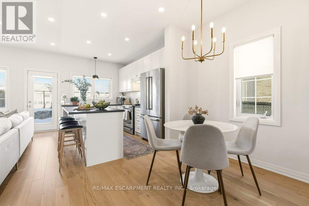 Welcome to this beautifully designed 3 bedroom, 3 bath freehold townhouse offering two storeys of stylish living. The open concept kitchen and dining space showcases a center island, stainless steel appliances, and is perfect for entertaining. Upstairs, the primary retreat features a luxurious spa-like ensuite, along with two additional generous bedrooms and second floor laundry for everyday convenience. Stunning new floors throughout. Step outside to a private backyard with patio and fenced green space, ideal for relaxing or hosting. (id:4555)