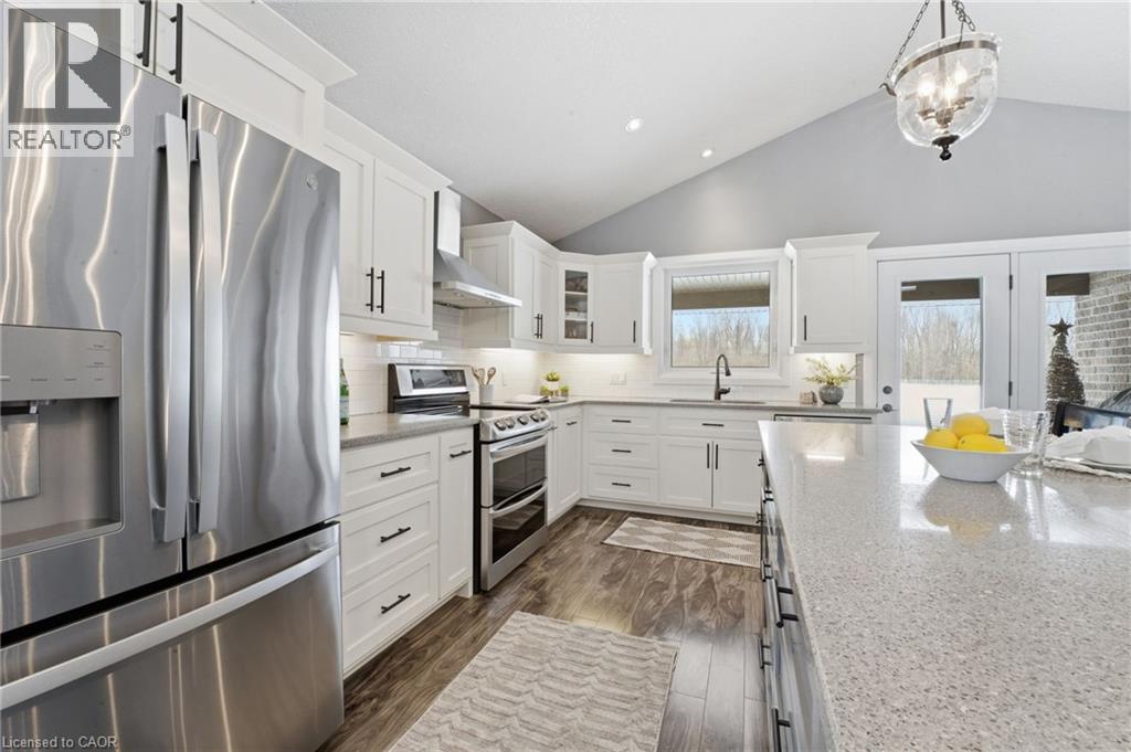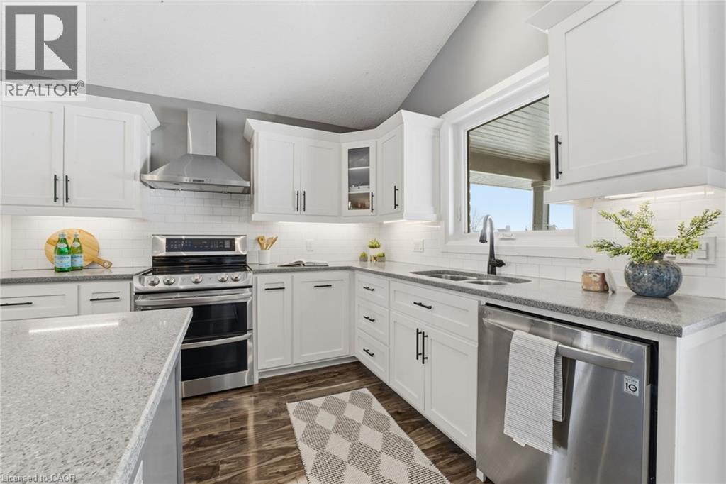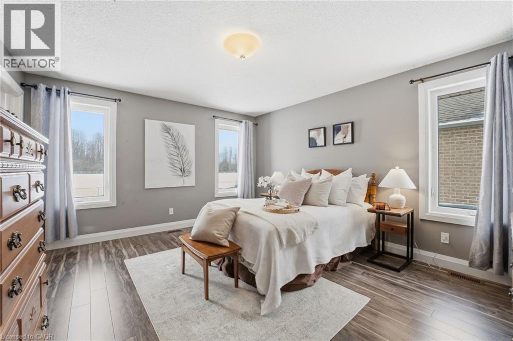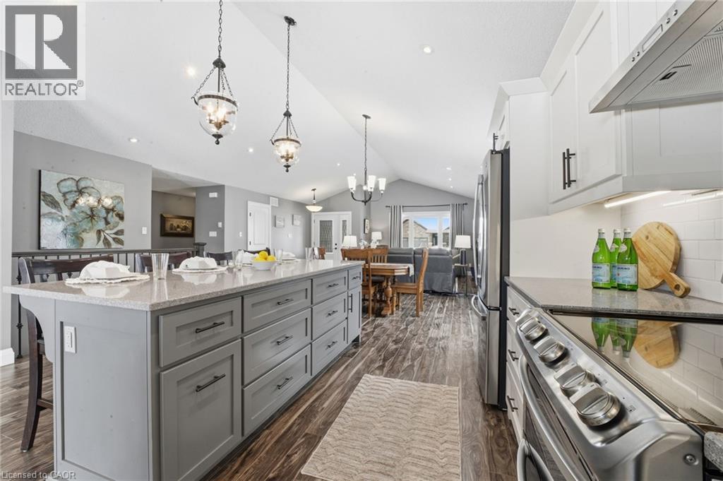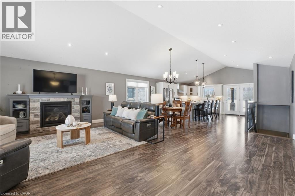 WALK-UP, INFLOOR HEATING & VAULTED CEILINGS. Welcome to this beautifully maintained 4-bedroom, 3-bathroom home backing onto school greenspace in a desirable Listowel neighborhood. Offering generous living space and quality finishes throughout, this home is perfect for growing families. The bright main living area features vaulted ceilings and a cozy fireplace in the front living room. The oversized kitchen is ideal for entertaining, complete with a walk-in pantry and ample prep and storage space. The spacious primary bedroom includes a walk-in closet and a private ensuite with a walk-in shower and extended vanity with a dedicated makeup area. The fully finished basement offers in-floor heating, two additional bedrooms, a full bathroom, and a laundry room. A walk-up provides direct access to the fully finished double car garage, which also includes a convenient man-door. Enjoy summer evenings on the covered back deck overlooking the peaceful school greenspace or on the covered front porch which adds charm and curb appeal. (id:4555)