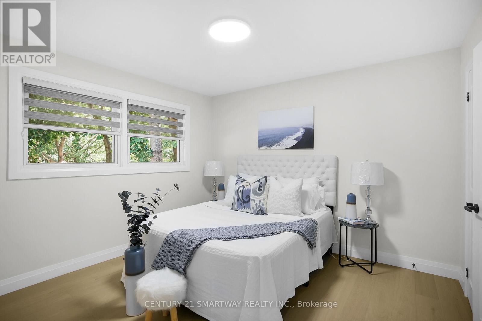 This charming Oakridge bungalow that's perfect for all family types! Located on a quiet street, this home has been fully renovated from top to bottom, boasting a stylish and neutral decor that'll fit your vibe. With an updated floor plan, you'll enjoy all the space your family will need. This bungalow features 5 bedrooms, 3 on the main, 2 in the lower level, you'll love the 2.5 brand-new bathrooms. The kitchen is a dream, complete with Quartz countertops and a sleek subway tile backsplash with a Centre Island, Spice rack, Lazy Susan and pull-out Garbage bins Cabinet, perfect for those family breakfasts or entertaining friends. The Basement has been completed with city permits, Furnace relocated to the side to open up the space with all new Hvac Ductwork & new Furnace installed, all new windows in basement, pot lights, wet bar for your enjoyment. The huge rear yard has been brought up to life from ruins which is great for kids to play, the dogs to run around or for hosting summer barbecues with Huge concrete patio, Firepit, decorative concrete slabs ,2 storage sheds, fence is pressured washed and painted. Alum. siding painted, Eavestrough cleaned, garage door is replaced, asphalt driveway is paved. All new S/S appliances, new zebra blinds on main floor, pot lights , new garage door opener,and much more. This house just a stone's throw from fantastic schools, sporting facilities and all the shopping you could want in the west end. This Oakridge gem is ready for you to make it your own don't miss out, just bring your stuff, this home is ready to welcome you. (id:4555)
