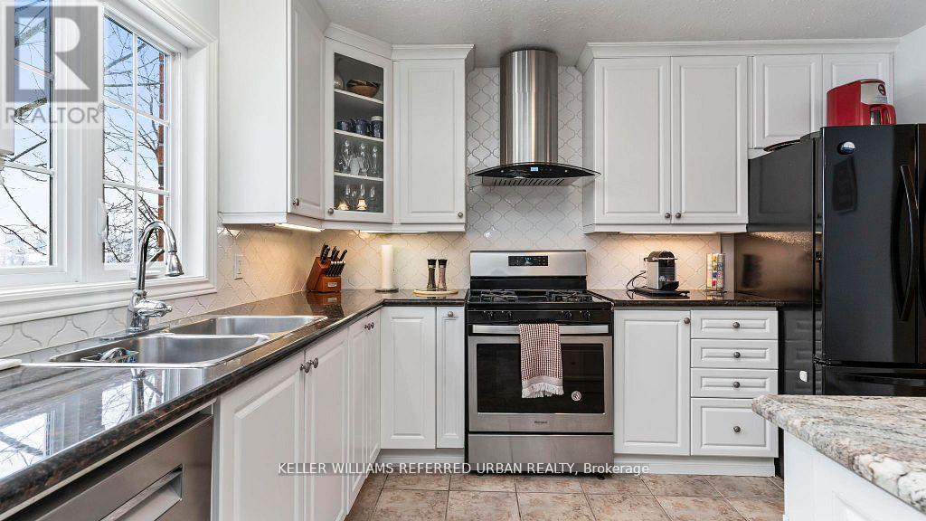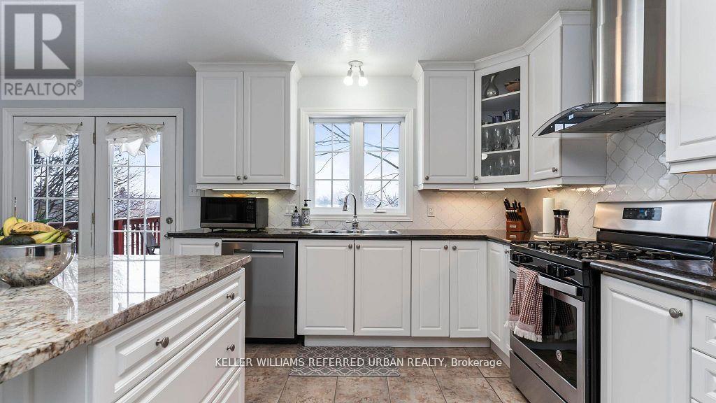 Welcome to this stunning pristine 2340sf. family home in North London's desirable Stoney creek neighbourhood. Located on a quiet, secluded street, near all amenities,schools,Western U., YMCA, & nearby transit, this home has the ideal location! Backing onto serene pond that offers stunning year-round natureviews,privacy, waking path access leading to Masonville Mall. Main flr featmassive open-cncpt livinrm/diningrm, lrg eat-in kitch w/ white cabinets,ceramicflrs,granite counter,centre island, modern backsplash, & elevated deck for enjoying your morning coffee while admiring the stunning view. Off the kitc is a cozy family room w/ gas fp. Numerous windows throughout create a bright airy ambiance. Powder room features an updated vanity & the main floor laund feat frontload washer/dryer. Updated oak staircase w/runner & iron spindles creates an open concept flow through main flr & upstairs. Oversized principal suite feat6'9 x 6'1 walk-in closet, 2nd closet & stunning 4 pc ensuite retreat w/separate glass shower, granite counters, ceramic flrs, & soaker. Quaint area off the master is perfect for home office & 3rd living space or easily converts back to aden & 4th bedrm as it still has the closet area. It features hardwood floors &plenty of light. Two more generous sized beds feat neutral broadloom & lots of closet space. Another spacious 4pc bth feat neutral decor & combo shower/tub.Downstairs is separated into licensed executive rental apartment w/ proper fire protection btwn units. Access to basement is through main house & the basement walk-out so home could be used for single family/rental/in-law suite/grown-adult child living at home! Dble concrete drive leads to concrete path & lrg back patio. Delightful French doors open to exceptional 1 bedroom + den open-cncpt aptw/ in-suite laund, laminate flrs, gorgeous bath w marble, kitch w/granitecounters, SS appliances, & generous size walk-in closet. Beautiful landscaping w irrigation. Roof 2022. Central vac. (id:4555)