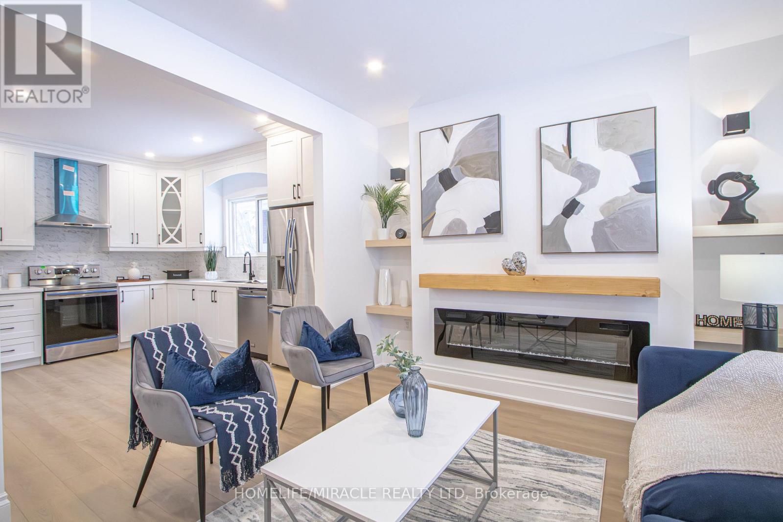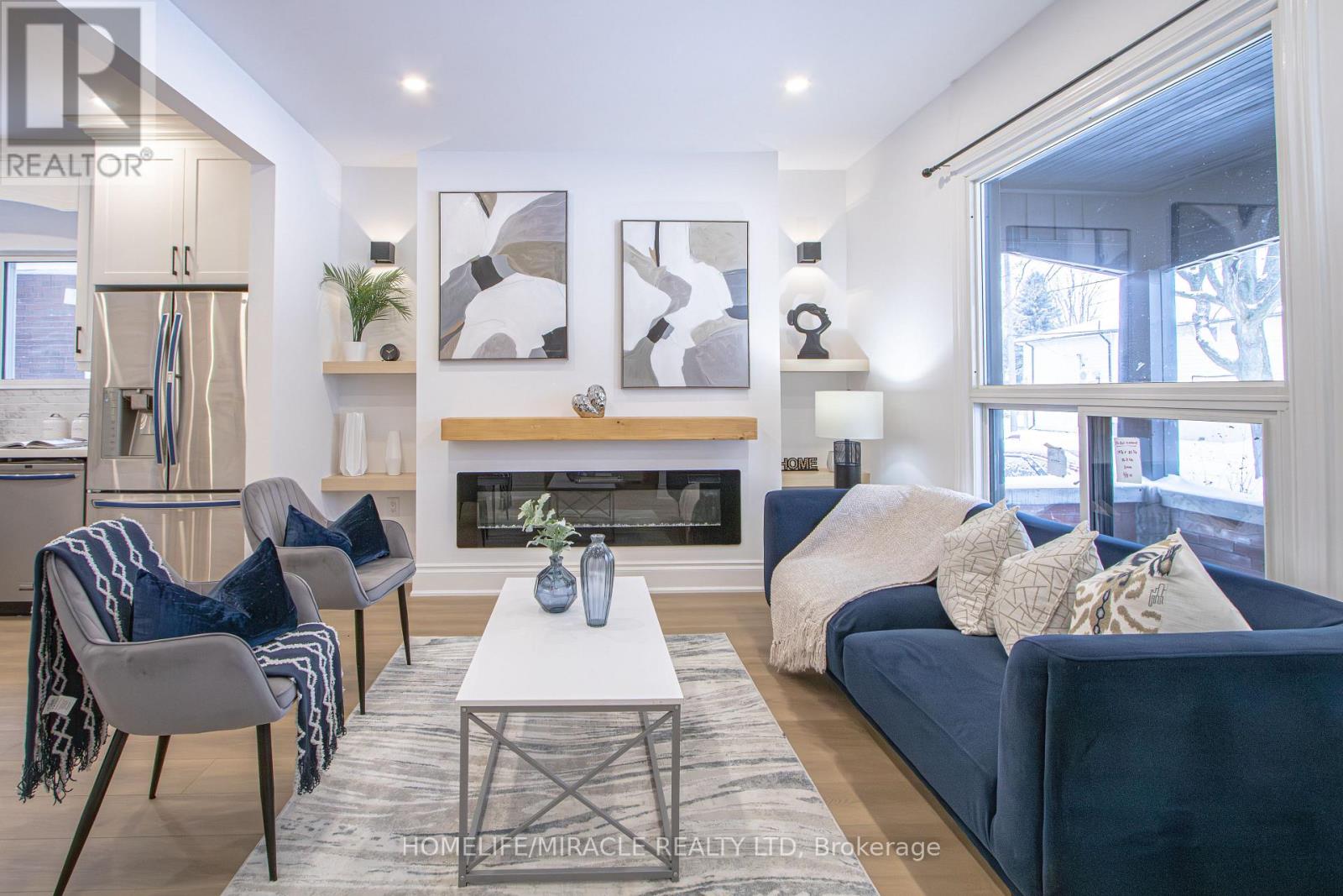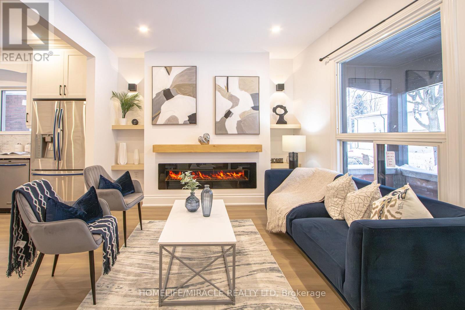 Modern Sophistication meets timeless comfort step into a flawlessly renovated sanctuary designed for both grand entertaining and intimate daily living. This stunning home features an expansive over 2000 sqft of finished space with open-concept main floor, anchored by a gourmet chef's kitchen with sleek shaker cabinetry, premium stainless steel appliances, and elegant marble-style backsplashes. The sun-drenched living area invites relaxation with a linear fireplace and custom floating mantels, while the formal dining room shines under a designer geometric chandelier. The expansive main level is defined by soaring high ceilings and an open-concept volume that creates an immediate sense of grandeur. The elevated ceiling height, paired with oversized windows and recessed pot lighting, ensures every room feels bright, airy, and remarkably spacious. "Retreat to the primary suite or the spa-inspired bathrooms, featuring luxury marble tile, matte black hardware, and a rainfall walk-in shower. Unique architectural details abound, including a dedicated home office with custom wood-slat feature walls and a fully finished lower level complete with a wet bar-perfect for a secondary suite or the ultimate guest retreat. From the light oak-toned flooring to the designer lighting throughout, every inch of this home reflects premium quality and "move-in ready" perfection. (id:4555)