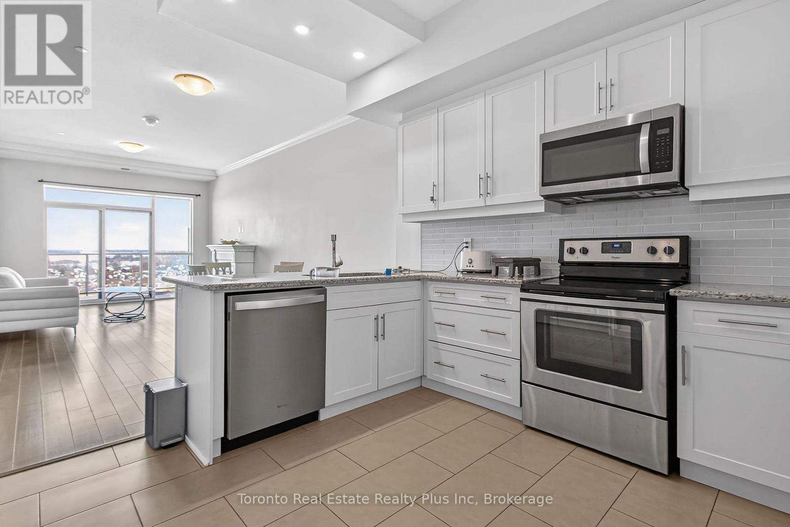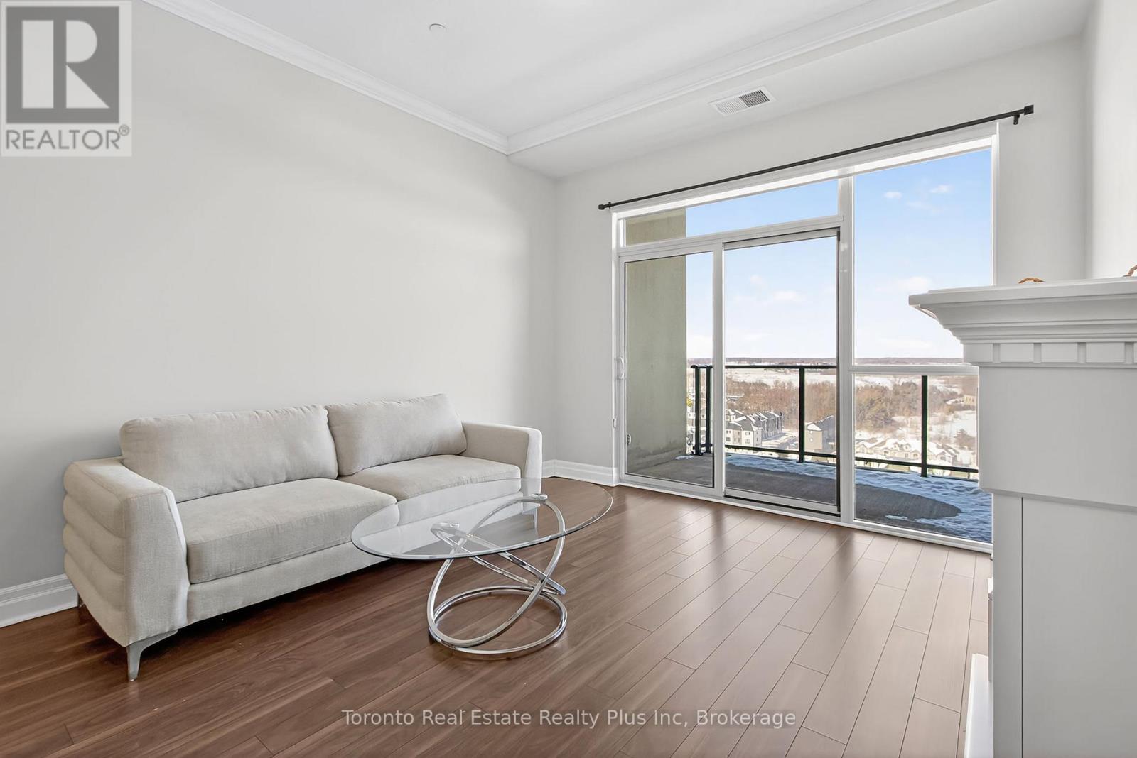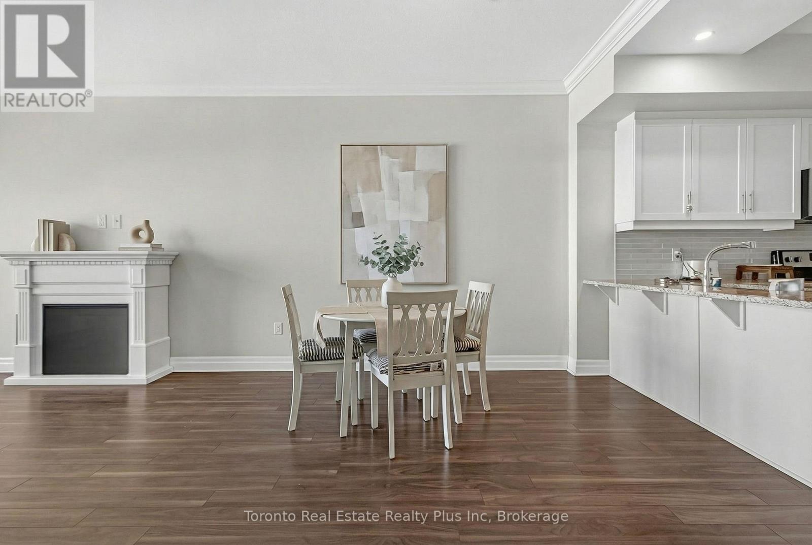 Welcome to Village North II, a sought-after luxury condo in North London near Masonville Mall and Western University. Suite 1109 is a turnkey 1-bedroom + den offering a versatile office space and a 4-piece bath with soaker tub and separate walk-in shower. The open-concept living area features crown moulding, premium laminate flooring, and a cozy gas fireplace. The modern white kitchen includes stainless steel appliances, granite countertops, pantry storage, and a breakfast bar. Enjoy beautiful North London views from your private balcony. The spacious primary bedroom offers floor-to-ceiling windows and a walk-in closet. In-suite laundry adds convenience. Exceptional amenities include an indoor saltwater pool, gym, golf simulator, theatre room, billiards room, private dining space, and outdoor terrace with BBQs. Heat and water included, plus owned underground parking and storage locker. (id:4555)