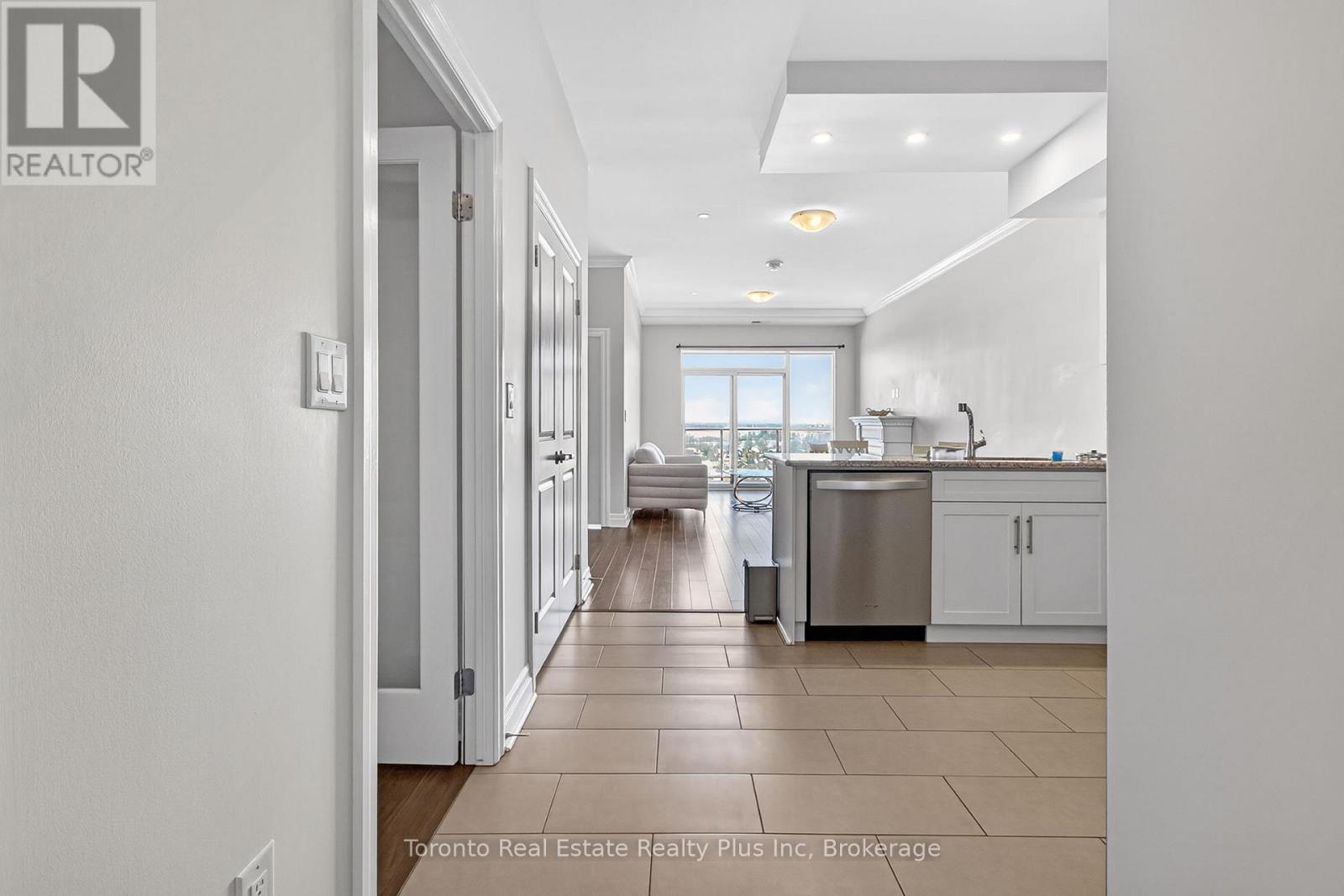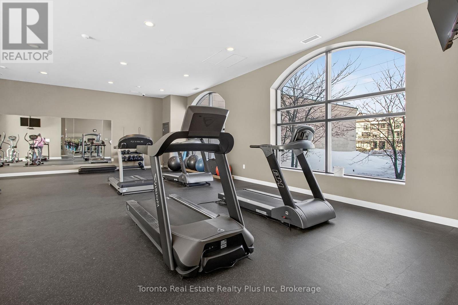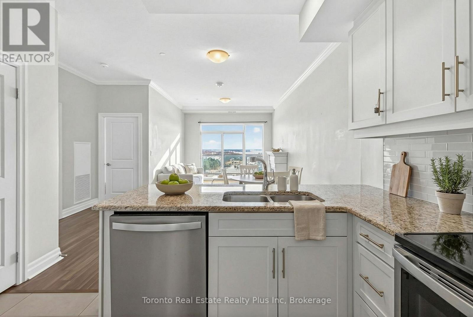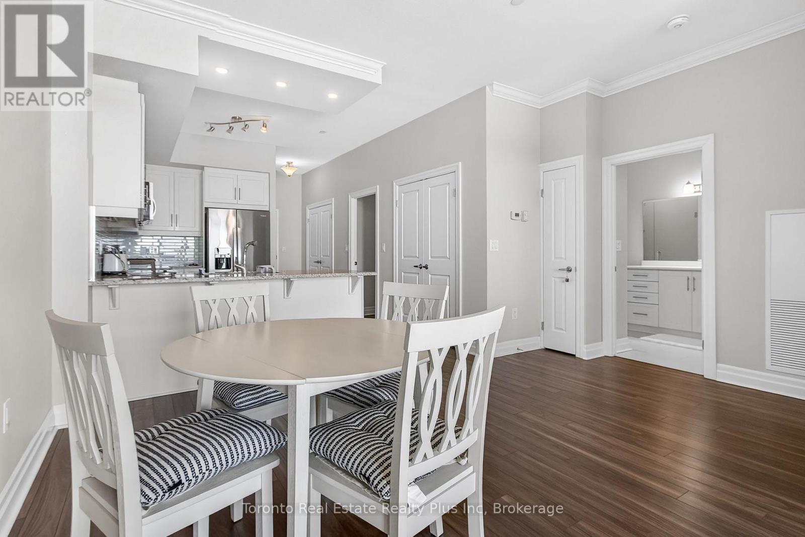 Welcome to Village North II, a sought-after luxury condo in North London near Masonville Mall and Western University. Suite 1109 is a turnkey 1-bedroom + den offering a versatile office space and a 4-piece bath with soaker tub and separate walk-in shower. The open-concept living area features crown moulding, premium laminate flooring, and a cozy gas fireplace. The modern white kitchen includes stainless steel appliances, granite countertops, pantry storage, and a breakfast bar. Enjoy beautiful North London views from your private balcony. The spacious primary bedroom offers floor-to-ceiling windows and a walk-in closet. In-suite laundry adds convenience. Exceptional amenities include an indoor saltwater pool, gym, golf simulator, theatre room, billiards room, private dining space, and outdoor terrace with BBQs. Heat and water included, plus owned underground parking and storage locker. (id:4555)