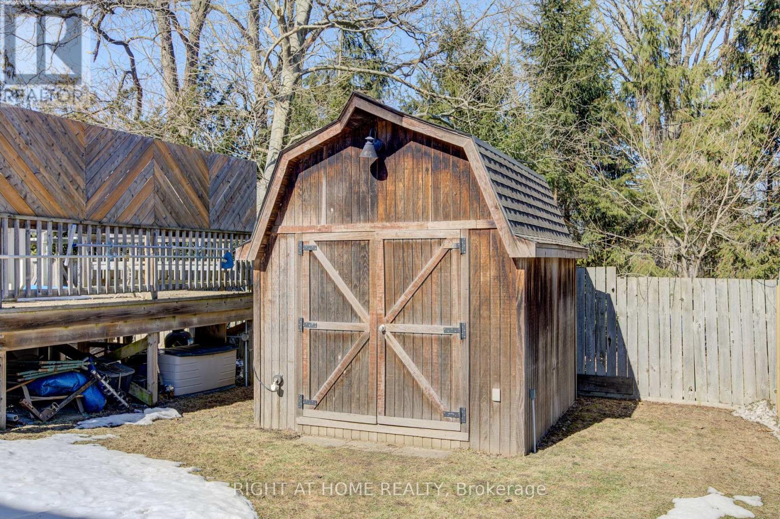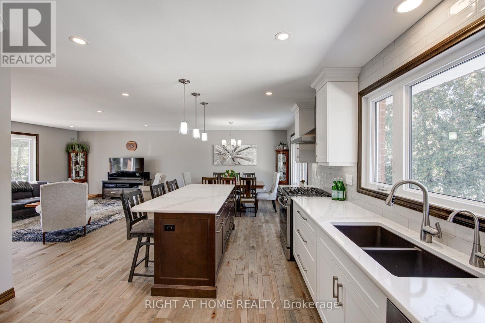 Nestled on a quiet, child-friendly cul-de-sac in the highly desirable Lockwood Park, this beautifully updated four-bedroom family home offers the perfect blend of comfort, style, and functionality. Set on a mature, treed lot with a concrete laneway and inviting covered front porch, the property delivers exceptional curb appeal and family-friendly living. The private backyard is an entertainer's dream, featuring an above-ground pool with solar heating, interlock patio, spacious decking with BBQ gas hookup, and a shed complete with 15-amp electrical service. Inside, thoughtful updates and quality finishes impress. In 2022, the home underwent significant renovations including a stunning new kitchen with quartz countertops, high-end cabinetry with dovetailed drawers, and updated appliances. That same year, most windows, the back sliding door, and the roof were replaced (excluding the two rear bedrooms and basement windows). Both the main bathroom and ensuite have been renovated this year, offering modern finishes and stylish design. The bright, open-concept main level showcases hardwood flooring and an inviting layout ideal for entertaining and everyday living. The family room features a gas fireplace with brick surround, hardwood flooring, and a walkout to the rear deck. A two-piece powder room and interior access to the oversized double garage add functionality. The garage offers 100-amp electrical service, making future EV charger installation easy. Upstairs you will find four generously sized bedrooms, including a primary suite with a two-piece ensuite. The finished lower level provides versatility with two separate rec rooms-perfect for children, hobbies, crafts, or additional living space-along with built-in cabinetry. The basement also offers a spacious laundry area with cabinetry, abundant storage, and access to a cold cellar. This exceptional home combines location, updates, and outdoor living in one of London's most sought-after neighbourhoods. (id:4555)