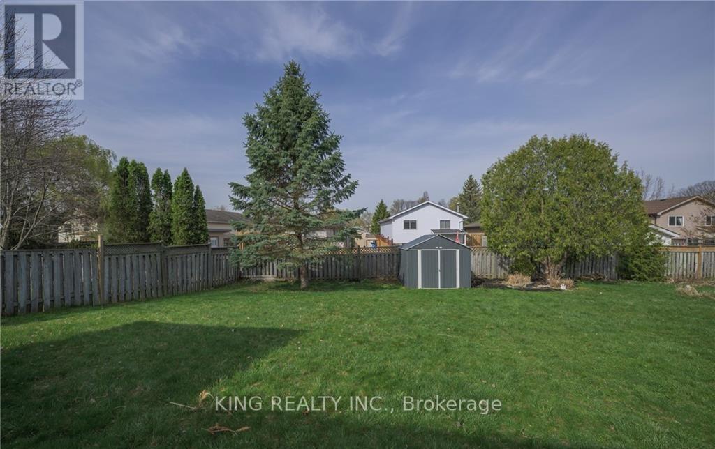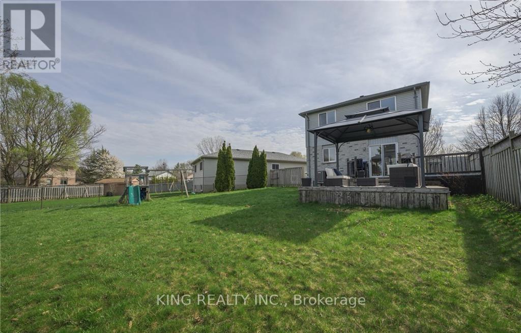 Searching for the perfect home to break into the market? This inviting east-end two-storey sits on a generous lot and is ready to welcome its next owners. Tucked away on a quiet, family-friendly cul-de-sac, it offers everything a growing family needs. The main floor features an open-concept layout that flows seamlessly from the bright living room into the dining area and kitchen-ideal for entertaining or keeping an eye on little ones while finishing dinner. The finished lower level adds even more living space, complete with a cozy family room with a gas fireplace and a well-appointed 3-piece bathroom. Upstairs, you'll find three spacious bedrooms and a clean, functional 4-piece main bath. From the dining room, walk out to an expansive two-tier deck overlooking one of the largest yards in the neighborhood. The fully fenced backyard is perfect for kids and pets, and includes a playset plus a storage shed. It's an outdoor oasis ready for summer relaxation. This location is hard to beat-close to parks, schools, walking trails, Bob Hayward YMCA, East Park golf and water park, and the Argyle shopping district, with quick access to the 401. The home has been well maintained making it truly move-in ready. (id:4555)