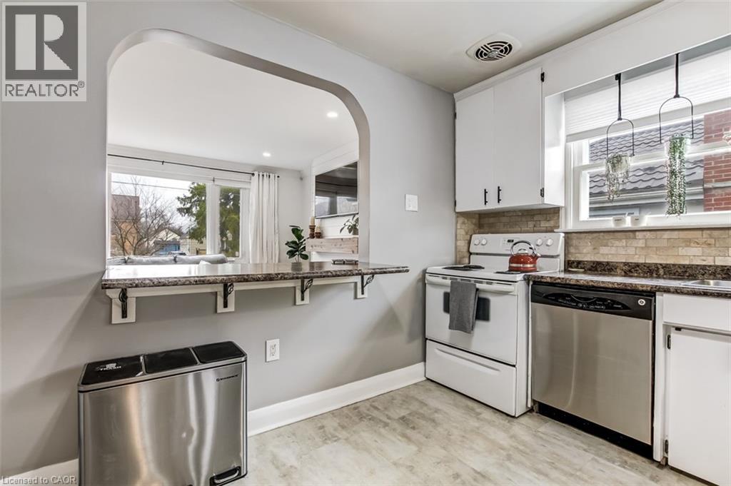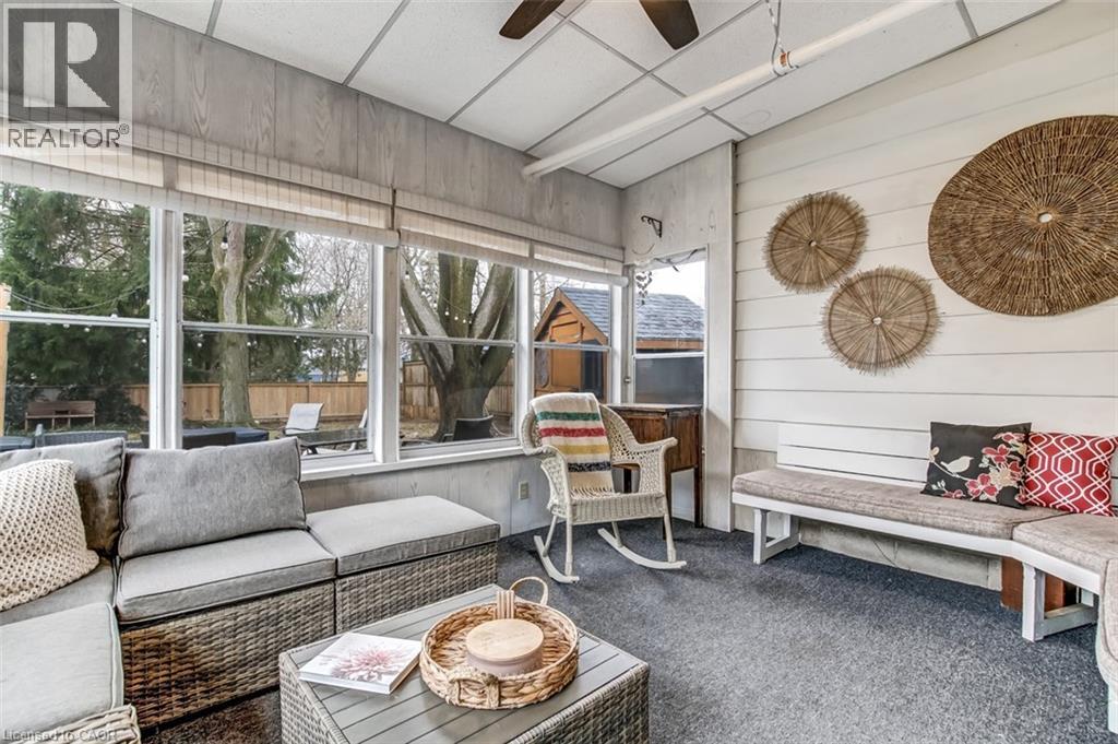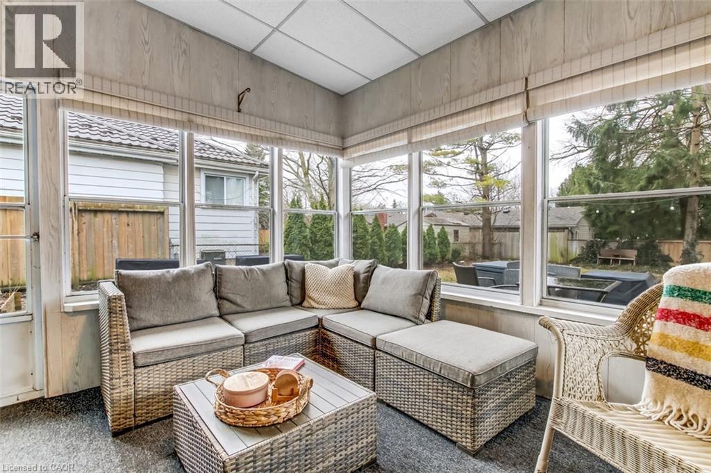 Charming and welcoming, this 3 bedroom, 2 bathroom bungalow offers bright living spaces, thoughtful updates, and a beautiful private backyard retreat. Situated on a nicely landscaped, treed lot, this home provides comfortable one-floor living in a convenient location close to everyday amenities. Step inside to a bright and inviting living room filled with natural light from large windows, featuring a stylish shiplap accent wall with electric fireplace that creates a warm and cozy focal point. The functional kitchen offers ample cabinetry and workspace, along with a breakfast bar open to the living area—perfect for everyday living and casual entertaining. The spacious primary bedroom features wall-to-wall closets and peaceful views of the private backyard, while two additional bedrooms provide flexible space for family, guests, or a home office. The finished lower level offers a large rec room ideal for relaxing or entertaining, along with a generous laundry area with workspace and a convenient 2-piece bathroom. A separate entrance also provides potential for in-law suite capability. One of the favourite spaces in the home is the bright 3-season sunroom, surrounded by windows and perfect for relaxing, dining, or entertaining while enjoying views of the backyard. Imagine enjoying your morning coffee here while taking in the peaceful garden views. Outside, the private 116 ft deep yard features mature trees, lovely gardens, a garden shed and plenty of space to unwind or host gatherings. This well-maintained home has seen many recent updates including roof (2023), furnace, A/C and water heater (2025), front door (2024), refrigerator (2025), washer and dryer (2024), and back fence (2022)—providing peace of mind for years to come. Conveniently located close to parks, shopping, restaurants, healthcare, and recreation, this welcoming home is move-in ready and waiting for its next owners to enjoy. (id:4555)