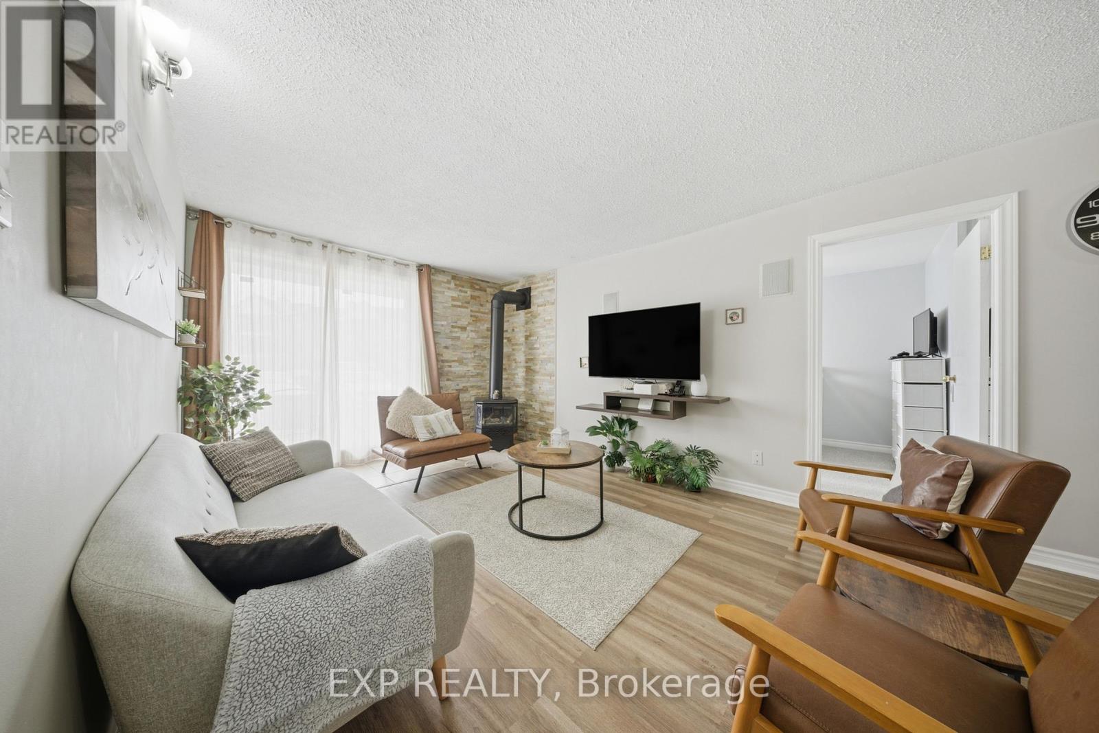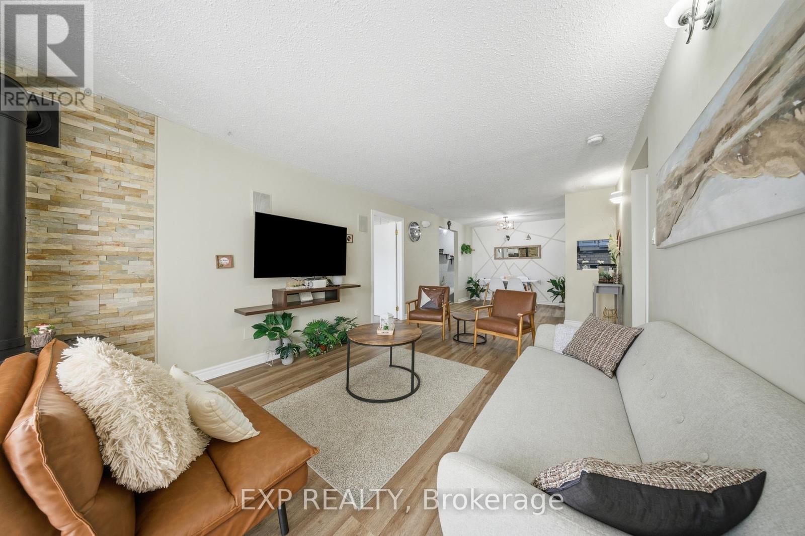 Welcome to this stunning ground-level 2-bedroom home, offering exceptional comfort, style, and an unbeatable location in a highly desirable, centrally situated complex in London. This beautifully maintained, move-in ready unit invites you to simply unpack and enjoy. Flooded with natural light, the open-concept layout is enhanced by modern flooring, smooth ceilings in the bedrooms, and a welcoming foyer that sets the tone for the rest of the home. The spacious living area showcases a striking accent wall and a charming rustic gas fireplace, creating a warm and stylish atmosphere while efficiently heating the entire unit. Step out through the bright walkout to your private patio with keyed entry, perfect for morning coffee, relaxing evenings, or entertaining guests.The updated kitchen is both functional and elegant, featuring granite countertops, ample cabinetry, and quality stainless steel appliances. A renovated bathroom and tasteful finishes throughout further elevate the home's polished appeal. Additional highlights include in-unit laundry, a large storage closet, and a versatile nook ideal for a home office or study space.What truly sets this home apart is its exceptional location. Enjoy being just minutes from White Oaks Mall, along with countless shops, grocery stores, restaurants, and everyday conveniences. Commuters will appreciate the quick and easy access to Highway 401, making travel across the city or beyond seamless. Nearby parks, schools, and community amenities add to the strong lifestyle appeal of this vibrant neighbourhood. Residents also enjoy access to desirable building amenities, including an outdoor pool, all within a well-maintained and welcoming community. A fantastic opportunity to own a stylish, thoughtfully updated home in a prime, connected location - this is one you won't want to miss. (id:4555)