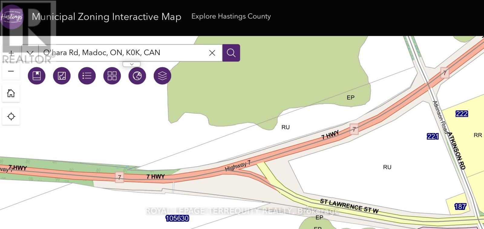 Over 2000 feet of Road Frontage on Highway 7 less than 2 km West of Highway 62, Tim Horton's and Mc'Donalds. Currently zoned as Rural with access on O'Hara Rd. 7.76 acres. Land was cleared and permit granted for Billboard by the Ministry of Transportation (MTO). (id:4555)
