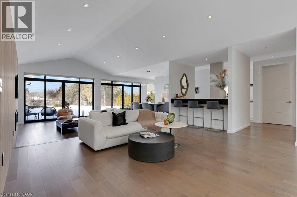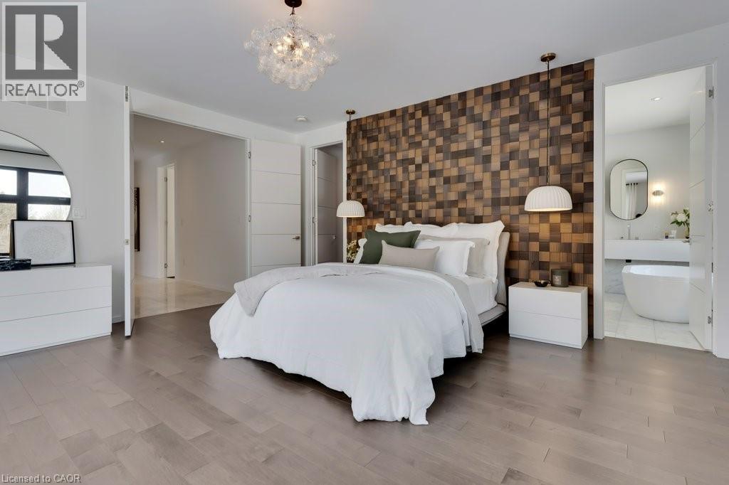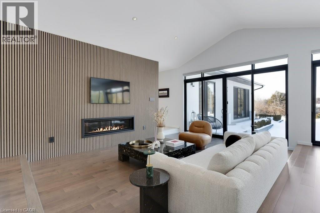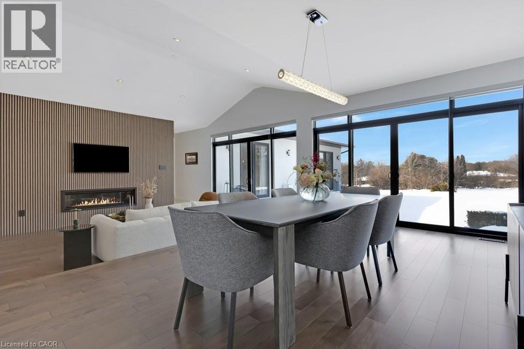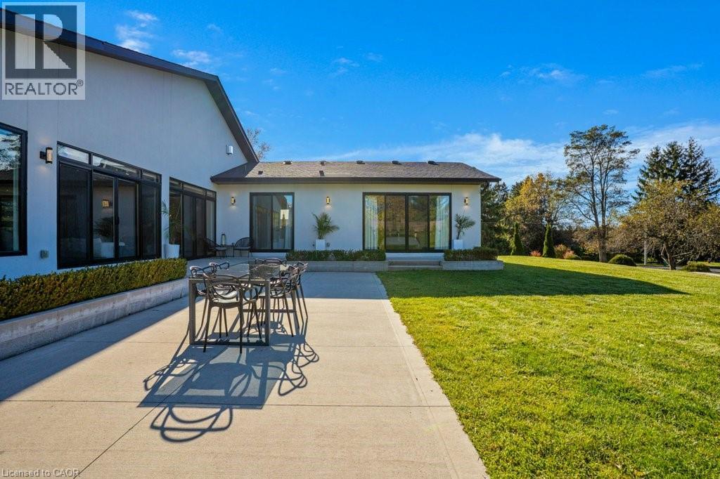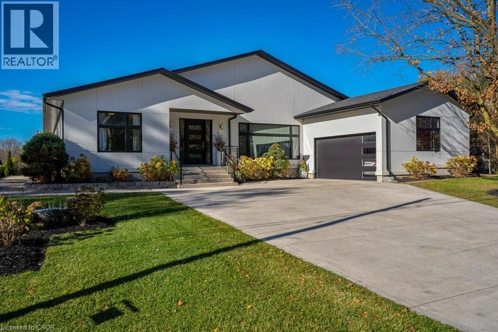 This almost-new custom built bungalow sprawls across 3,551 square feet of high quality craftsmanship. At the front door, you'll feel lured into the spacious great room and conversation pit area, focussing on a cozy gas fireplace mounted on the acoustic wood slat accent wall. Many floor to ceiling windows & large patio doors provide an abundance of sunlight throughout this space. If you love to cook you'll love this amazing kitchen, featuring natural stone counter tops and backsplash, stainless steel appliances, wall to wall pantry storage, and pot lighting overhead. A spacious breakfast area overlooks rear yard. For more formal entertaining, a sizeable dining room is open to the main great room. Adjacent to the kitchen is a spacious laundry room with a combination washer/dryer unit, plenty of storage and drying rack space, and a walk down to a fantastic crawl space below the house for all of your storage needs, approx 5' high. A mud room w/ access to the garage completes this area. The bedroom wing offers four spacious bedrooms: one with an ensuite bath and walk-through closet, and two that share a walk-through closet & 3pc bath. One of these two bedrooms would work well as a quiet den or office space. Lastly, the primary bedroom includes a walk-in closet w/ organizers, a wood-texture accent wall, a walk out to the patio, & a luxurious ensuite bath featuring a soaker tub and glass walk-in shower. A 3pc bath is located off the bedroom corridor which also leads to the patio; perfect for outdoor guests. Finishing off, are two very large walk-in storage rooms. One of these could easily become an office or craft room. Engineered maple flooring is featured in the main living spaces and bedroom areas. A gas connection is located on the patio for a BBQ, and a future pool or hot tub. Floor to ceiling windows throughout are a magnificent feature of this lovely home. Be sure to visit this stunning property, situated on 3/4 of an acre in the quiet village setting of Mannheim. (id:4555)