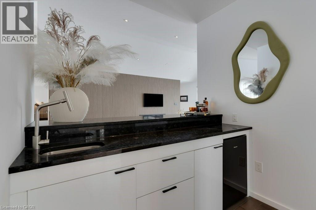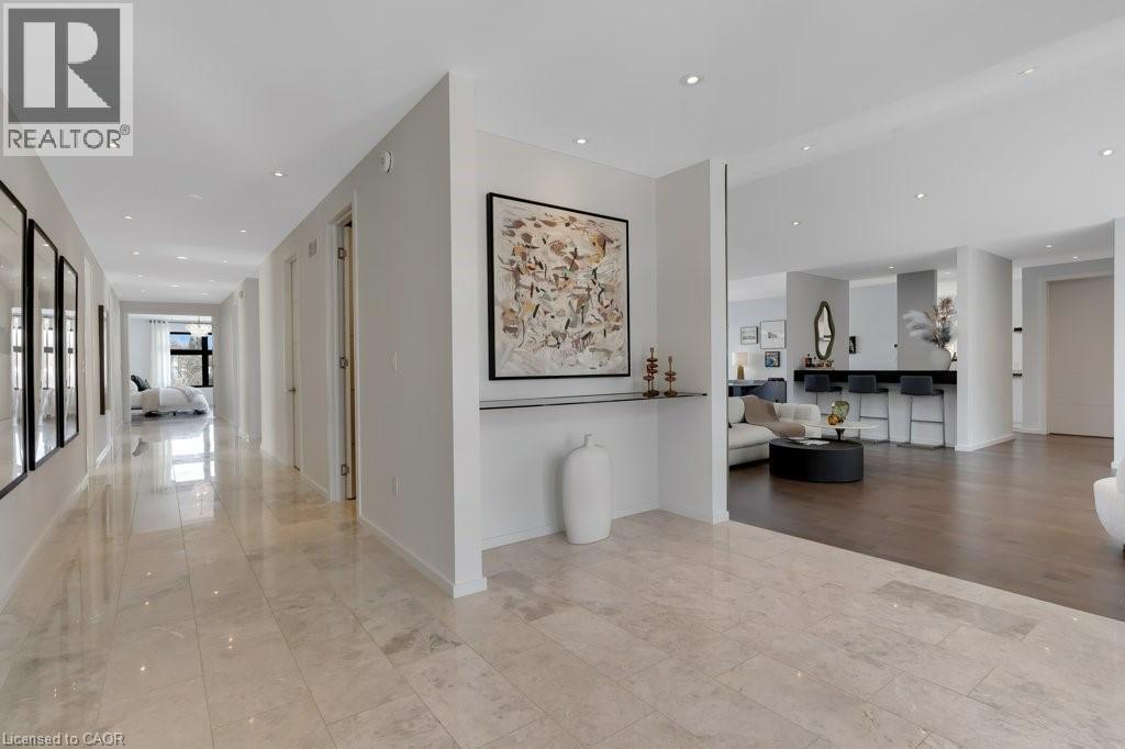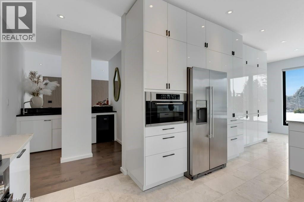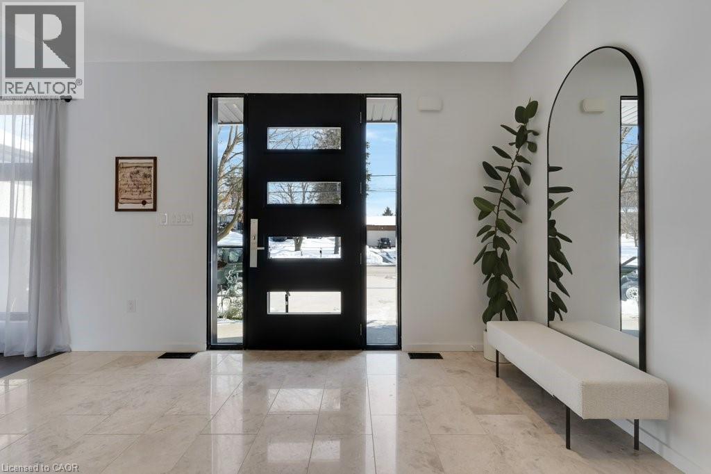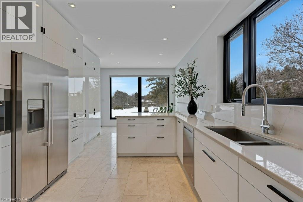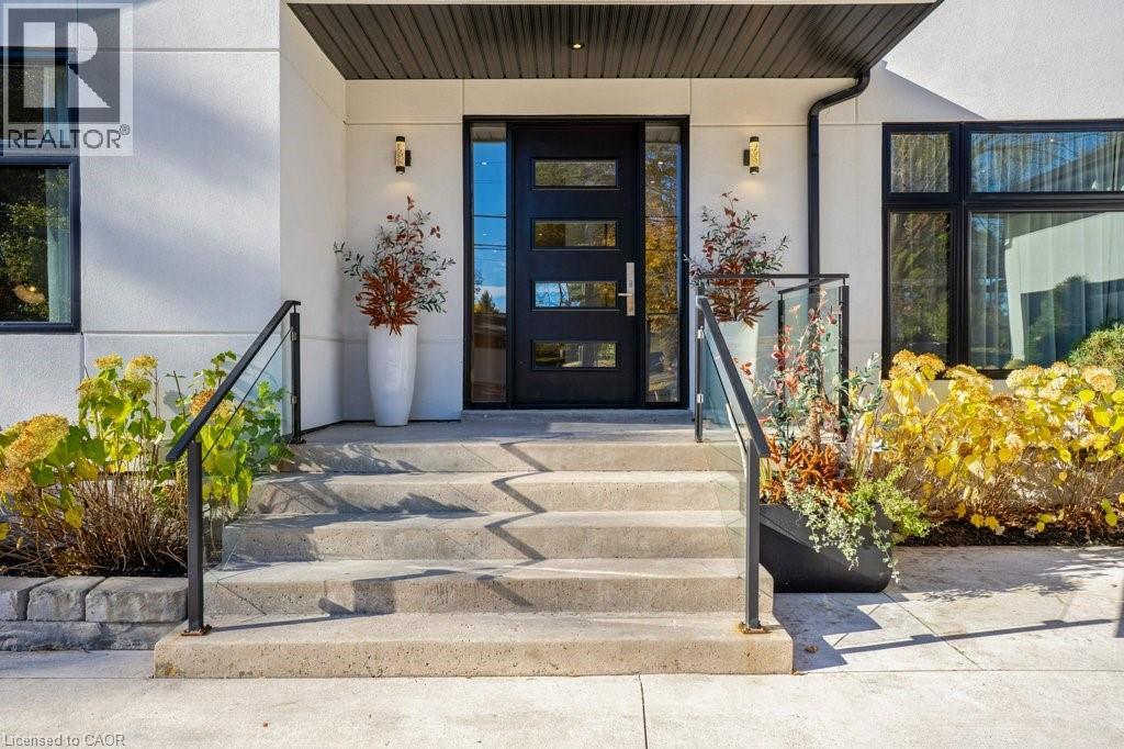 This almost-new custom built bungalow sprawls across 3,551 square feet of high quality craftsmanship. At the front door, you'll feel lured into the spacious great room and conversation pit area, focussing on a cozy gas fireplace mounted on the acoustic wood slat accent wall. Many floor to ceiling windows & large patio doors provide an abundance of sunlight throughout this space. If you love to cook you'll love this amazing kitchen, featuring natural stone counter tops and backsplash, stainless steel appliances, wall to wall pantry storage, and pot lighting overhead. A spacious breakfast area overlooks rear yard. For more formal entertaining, a sizeable dining room is open to the main great room. Adjacent to the kitchen is a spacious laundry room with a combination washer/dryer unit, plenty of storage and drying rack space, and a walk down to a fantastic crawl space below the house for all of your storage needs, approx 5' high. A mud room w/ access to the garage completes this area. The bedroom wing offers four spacious bedrooms: one with an ensuite bath and walk-through closet, and two that share a walk-through closet & 3pc bath. One of these two bedrooms would work well as a quiet den or office space. Lastly, the primary bedroom includes a walk-in closet w/ organizers, a wood-texture accent wall, a walk out to the patio, & a luxurious ensuite bath featuring a soaker tub and glass walk-in shower. A 3pc bath is located off the bedroom corridor which also leads to the patio; perfect for outdoor guests. Finishing off, are two very large walk-in storage rooms. One of these could easily become an office or craft room. Engineered maple flooring is featured in the main living spaces and bedroom areas. A gas connection is located on the patio for a BBQ, and a future pool or hot tub. Floor to ceiling windows throughout are a magnificent feature of this lovely home. Be sure to visit this stunning property, situated on 3/4 of an acre in the quiet village setting of Mannheim. (id:4555)
