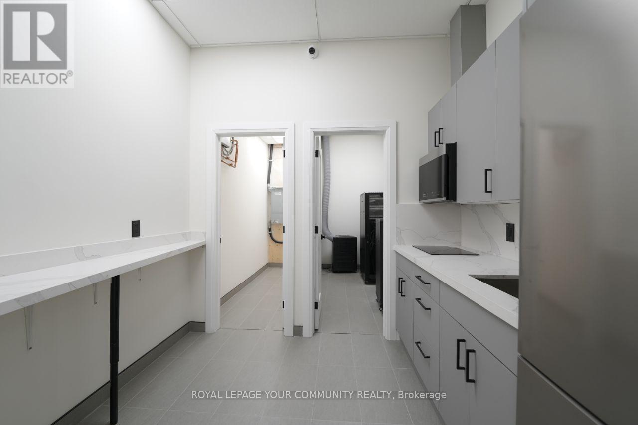 This property is approximately 3,900 square feet and was newly completed in January 2025, so it's essentially brand new. Originally delivered as a shell, it has been fully built out to a high standard.It features seven rooms, including a full kitchen and an additional kitchenette, as well as a spacious washroom that includes a shower. The flooring is high grade commercial carpet, and the ceilings are not your standard type-they're high-end with about a 12-foot height.The property also includes a storage area and has two separate entrance doors. There is a semi-private elevator, and as mentioned, there's also a kitchenette in addition to the main kitchen.The office is fully networked with Cat6 cabling throughout, providing network access everywhere, and it has a 200-amp power supply with a dedicated 600-volt line. Both 110-volt and 240-volt three-phase power options are available.It's equipped with a full fire suppression system and built-in ceiling speakers for a central music system. There are about 32 cameras installed for security, and the two separate entrances are fitted with Ring bells and dedicated security cameras.Finally, the property is currently combined into a single unit from three separate titles, making it a very versatile and ready-to-use office space. (id:4555)