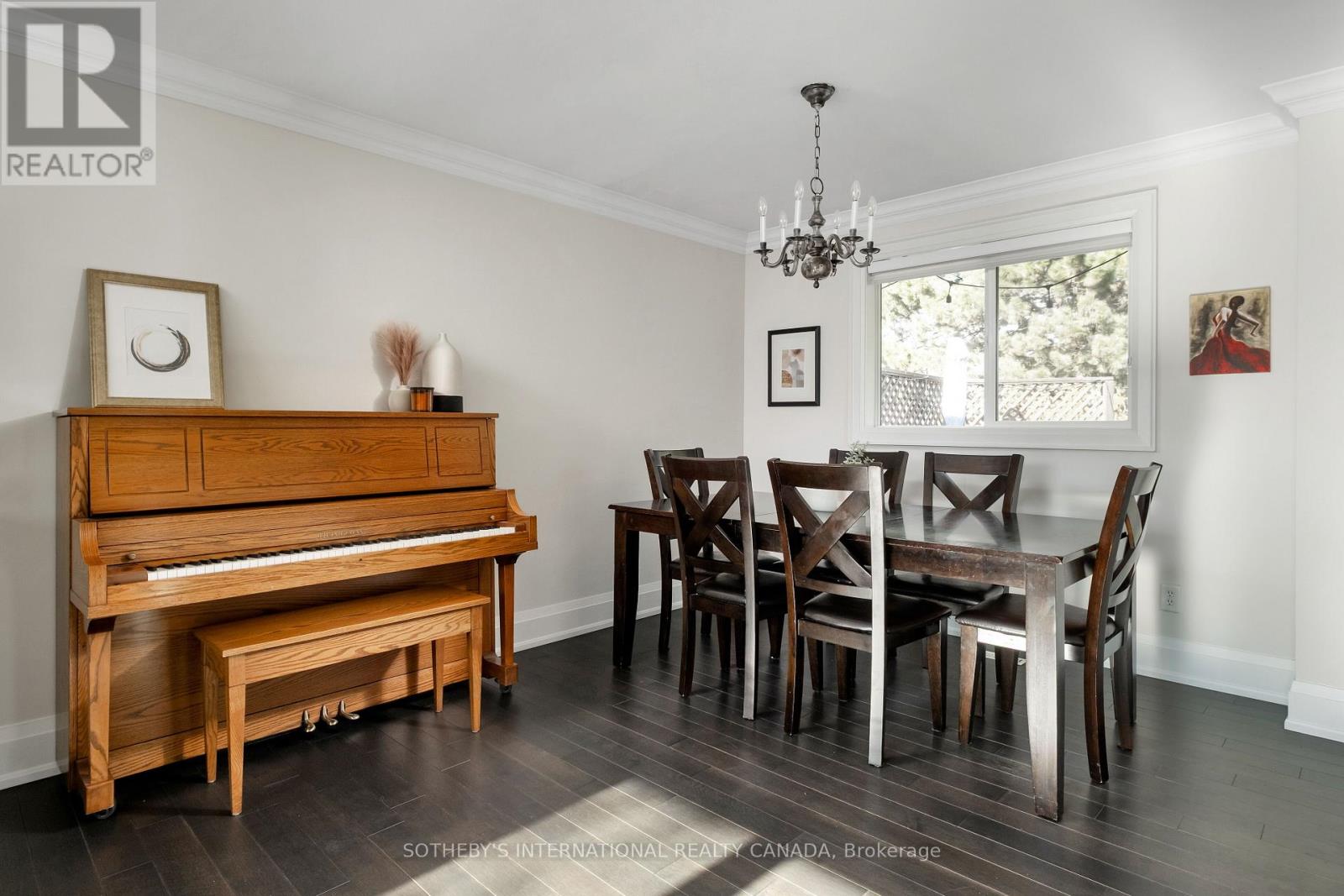 Welcome to 36 Shieldmark Crescent, a beautifully updated 3+1 bedroom, 3-bath home nestled on a quiet, tree-lined crescent in one of Thornhill's most desirable neighbourhoods. Step inside and experience designer finishes throughout: matte-finished hardwood floors, smooth ceilings with pot lights, custom trim and crown mouldings, and Hunter Douglas window coverings that elevate every space. The updated eat-in kitchen boasts granite countertops and flows seamlessly into bright, open-concept living and dining areas-perfect for entertaining. The serene primary suite offers a private retreat with a walk-in closet, custom built-ins, and a spa-like ensuite. Downstairs, the fully finished lower level features a separate entrance, a cozy family room with a custom wall unit and gas fireplace, and versatile space ideal for an in-law suite, home office, or future rental opportunity. Outside, perennial gardens frame the home, creating a tranquil four-season setting. The backyard is a private oasis-lush, serene, and designed for relaxation. The garage is also wired for EV charging. Location is everything: Minutes to Highway 407, world-class dining, The Thornhill Club, community centres, Uplands Golf & Ski Club, ravines, walking trails, and parks. Enjoy endless recreation and the convenience of the future TTC subway station at Yonge & Royal Orchard-all just minutes away. Here, neighbours become lifelong friends. This is more than a home - it is a lifestyle where every detail is designed for comfort and connection. Move in and make it yours. (id:4555)