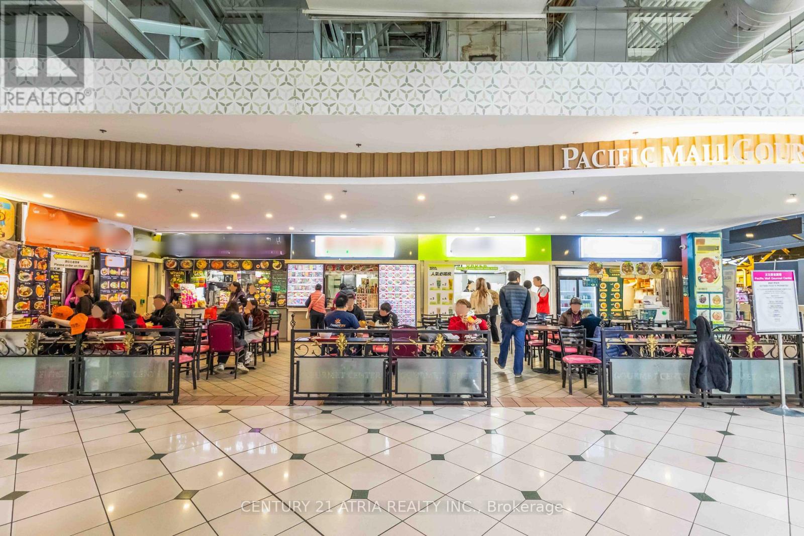 Own a fully leased food court unit in Pacific Mall, North America's largest indoor Asian shopping centre an iconic cultural landmark where generations have gathered. This investment features 3 food stalls, a 64-seat dining area. Generates over $198,000 in annual rental income (over$360,000 when combined with other listing MLS #N12107338, with 6 stalls total), with strong net returns and a cap rate of over 6.25%. Prime second-floor location beside elevators and escalators ensures maximum foot traffic. Pacific Mall offers surface and underground parking and consistently draws high visitor volume. Strategically positioned on the Markham-Scarborough border, it attracts loyal local shoppers and steady tourist traffic. Buy a piece of memory an opportunity to invest not just in a thriving business, but in a place where visitors come to taste nostalgia, reconnect with culture, and experience a slice of home. A rare chance to own a part of a true landmark. Must be purchased with MLS#N12107338. (Photos have been slightly altered to protect privacy of vendors.) (id:4555)