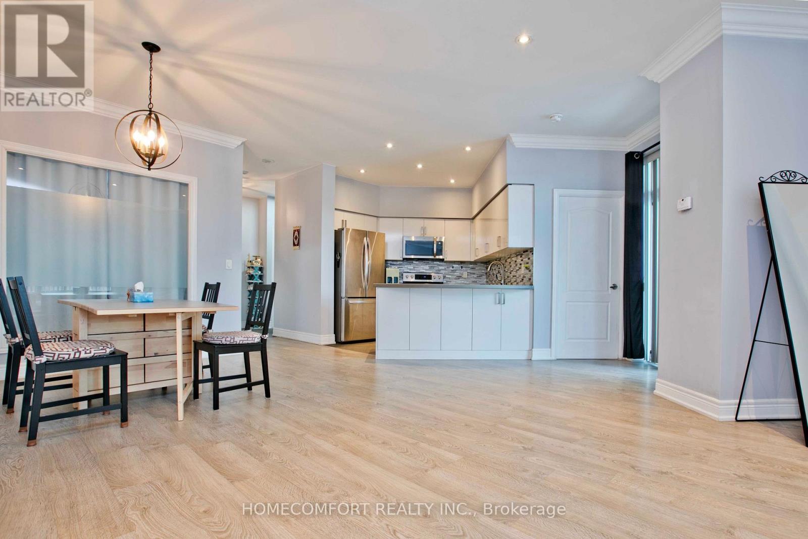 Rear find Gorgeous Condo With 2+1 Bedroom & 2 Bath In Luxurious Setting with 2 parking spots and 3 lockers, With 9 Ft Ceiling, 1193 Sq Ft And Beautiful Sit Out Patio.This Unique Condo Located On The Main Floor Comes With 2 (Two) Parking Spots (One Large Size) And 3 (Three) Lockers. One Parking can be leased out at over $100 Per Month And One Locker ($60 Per Month). Kitchen W/Quartz Counters, Ss Kit Appliances. Large Washer/Dryer. High End Laminate Flooring. Pot Lights In Dining/Living Area. EntryCloset W/Built In Bench. Spa Like Ensuite & Main Bathroom W/All Amenities. The Condo Residents Enjoy World Class Amenities Including 24 HourSecurity/Concierge, Large Indoor Pool, Gym, Indoor Golf, Party Room Hall (Appx 60 Ppl), Media Room, Sauna, Guest Suites, And Visitor Parking. TheCondo Allows Residents To Host Their Guests In Guests Rooms Available In The Building. Condo Fees Includes All Utilities Except Hydro. All Equipment Owned. Incredible Location, Minutes From Hwy 7, 407, 404, And Public Transit, Restaurants, Parks, Grocery, Banks, 2 Reputed Schools. Must see! (id:4555)