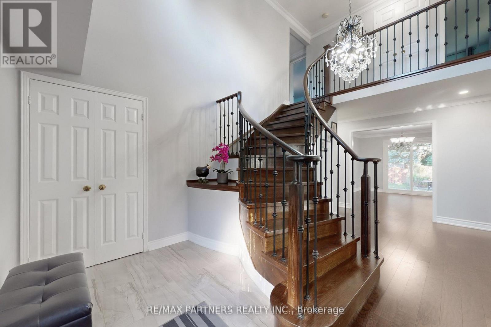 Welcome to this exceptional detached home, perfectly situated on a quiet, tree-lined street in the highly coveted Bridle Trail community. Set on a premium, professionally landscaped lot, this 4-bedroom, 4-bathroom residence blends timeless elegance with everyday functionality, offering the ideal combination of space, comfort, and style. A convenient 2-car attached garage provides direct access into the home. Step inside to a bright, inviting interior thoughtfully designed with generously sized principal rooms, quality finishes, and abundant natural light throughout. The main level features a formal living room, a spacious dining area ideal for entertaining, and a warm family room with a fireplace perfect for cozy evenings. The kitchen and breakfast area overlook the serene backyard and flow seamlessly to a large rear patio, creating an effortless indoor-outdoor living experience ideal for dining, entertaining, or simply relaxing. The private, fully fenced yard, surrounded by mature trees, offers a peaceful haven for children, pets, or gardening enthusiasts. Upstairs, the primary suite includes a walk-in closet and private ensuite, while three additional bedrooms provide comfort and flexibility for family living. The finished basement extends the homes living space, offering a versatile area for a guest suite, home office, media room, or additional bedroom. Ideally located within walking distance to historic Main Street Unionville, Toogood Pond, boutique shops, cozy cafes, and fine restaurants. Enjoy easy access to The Village Grocer, Markville Mall, top-rated schools, recreational facilities, libraries, parks, and sports venues. Commuting is effortless with nearby Hwy 7, 404, 407, and public transit. (id:4555)
