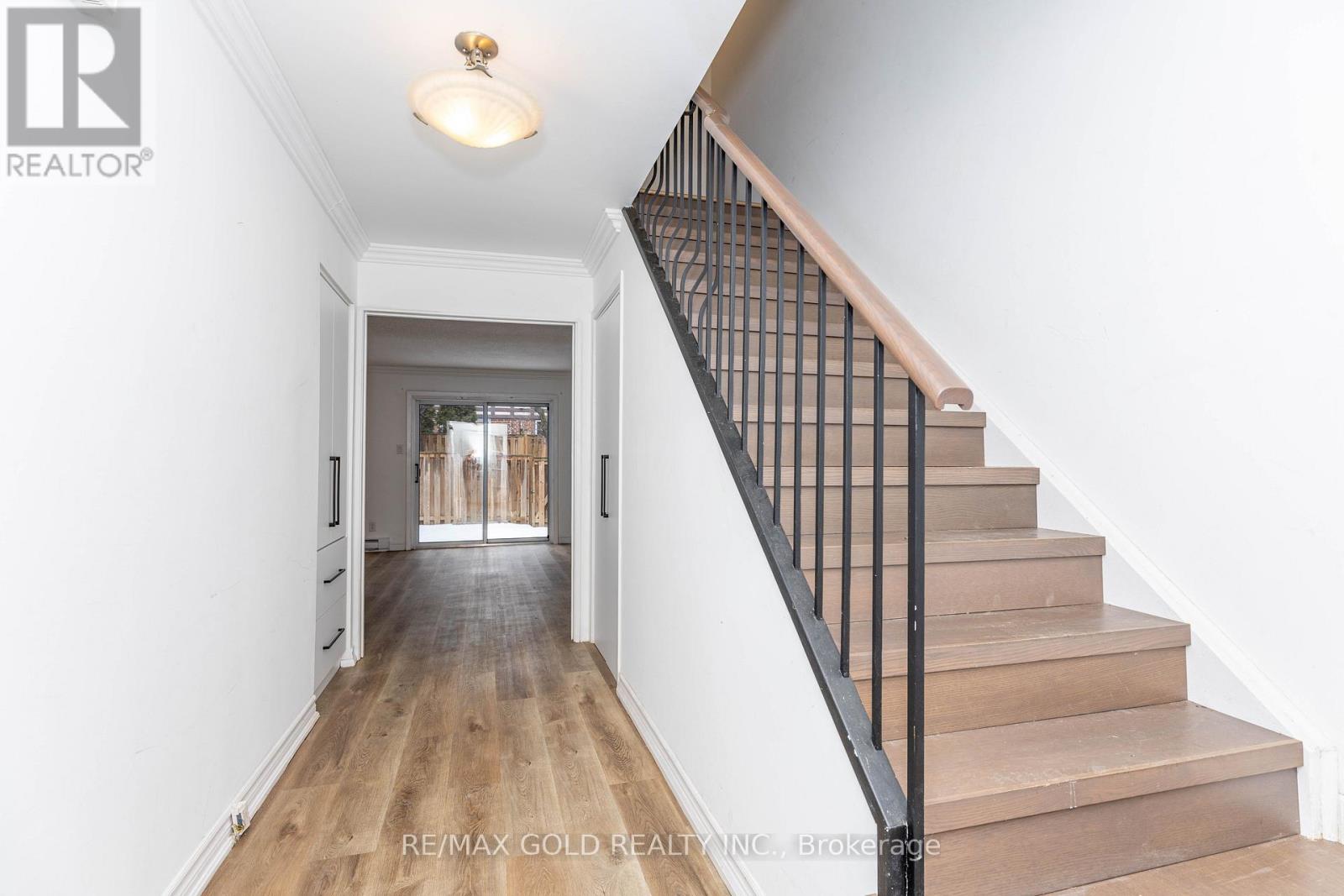 RARE FIND in Johnsview Village! This bright & spacious 4 bed, 2-storey townhome boasts many recent upgrades, including hardwood floors or he main level, a combined living & dining room with walkout to a fenced yard , and a kitchen with quartz counters & pot lights . Upstairs, 4 beds await with NO carpet, smooth ceilings, and a 3-pc bath. The finished basement features a 3-pc bath, and the home also sports windows updated in 2018 and a newer root from 2021 . With a convenient side walkway to the backyard, this one's a gem - book a showing NOW! (id:4555)
