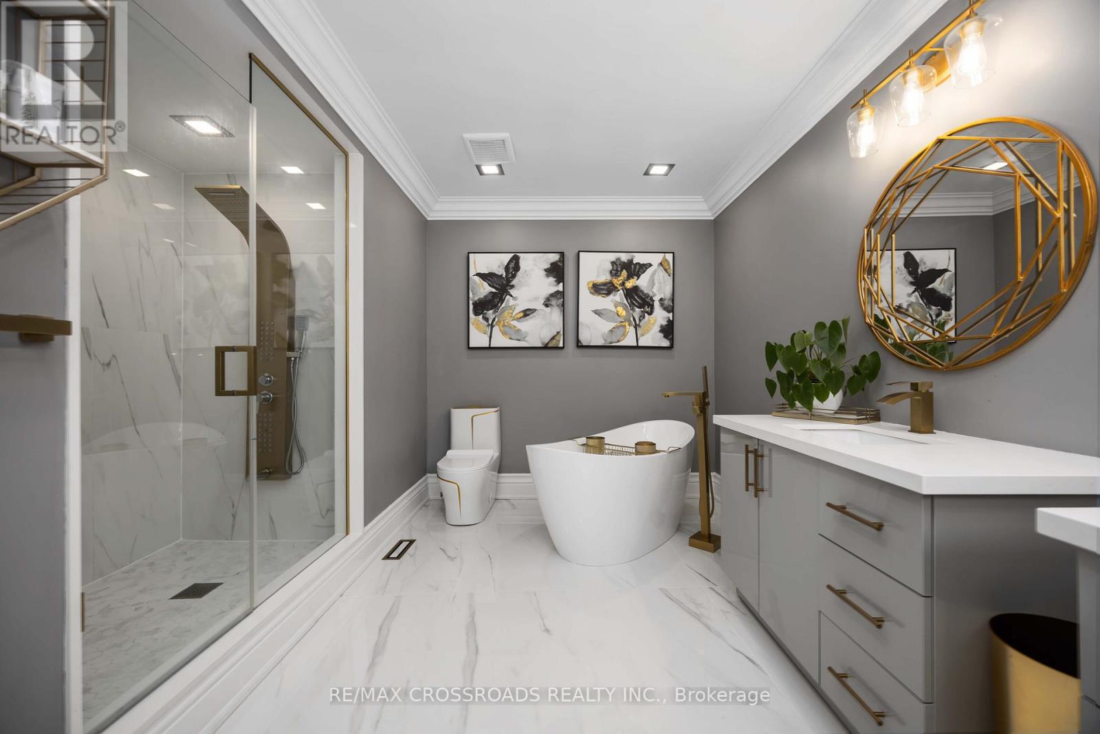 Spacious main floor and upper-level lease only (basement not included) offering approximately 3,500 sq ft of bright, well-designed living space in Markham's desirable Rouge Fairways community. This home features a generous layout with a large living room, family room, formal dining area, and breakfast area, plus a main-floor office that can also be used as an additional bedroom, making it a 4+1 bedroom, 4 washroom home. The modern kitchen includes a mix of new and newer appliances, and California shutters throughout all rooms add both style and privacy. The oversized primary bedroom includes a private ensuite, offering comfort and retreat-like space. Three parking spaces included (1 garage, 2 driveway). Utilities are shared, and the hot tub is not included. Tenants are responsible for snow removal and grass cutting. Single Key verification required. Qualified tenants only. Ideal for families or business professionals looking for space, comfort, and location - $4,100/month represents excellent value for a home of this size and quality and is truly a steal. (id:4555)