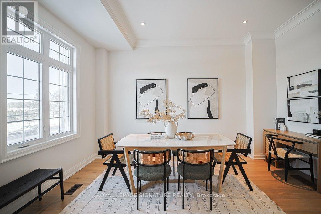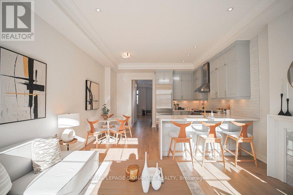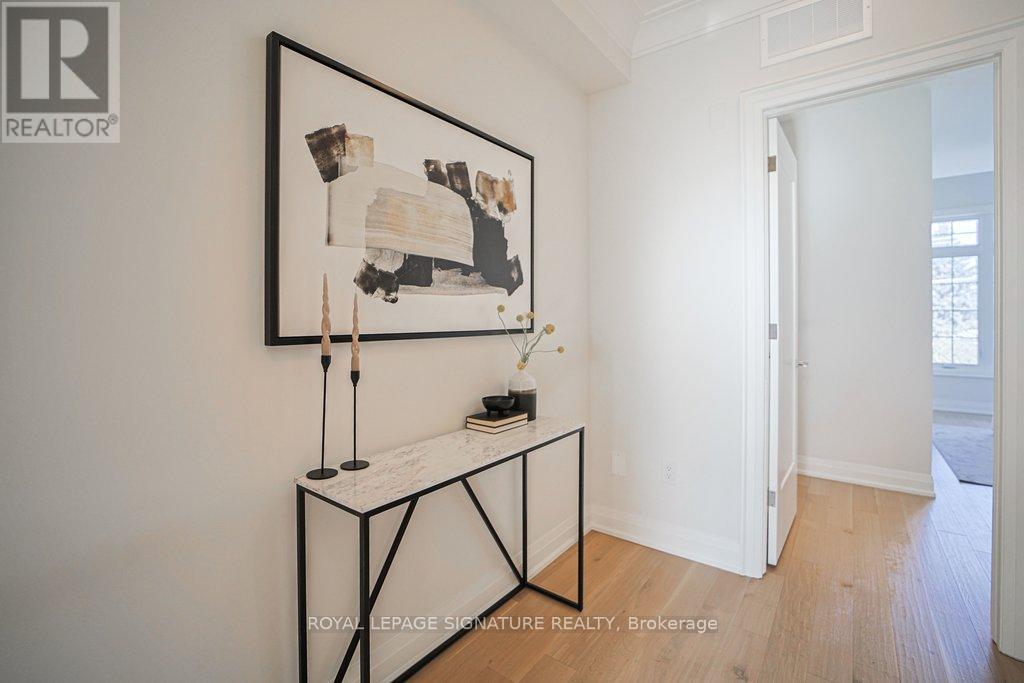 Welcome to this elegantly designed brand new 'Kylemore' town home situated the beautiful community of 'Brownstones' surrounded by forest golf course. This end unit features: 5" hardwood floors & hardwood stairs with black iron pickets and pot lights throughout. Gorgeous kitchen has pastel colored cabinets with gold hardware, subway tile backsplash, large sink with gold faucet, Sub Zero, Wolf & Bosch built in stainless steel appliances, quartz counters with waterfall feature & breakfast bar. Open concept family room features an upgraded electric fireplace and mantel, has a walk out to terrace and gas BBQ. line. Large Formal room. Extra family room/office on ground level, 3 Bedrooms, 2.5 bathrooms with upgraded tiles & faucets. Situated close to all amenities. Walking trails, Schools, Transit, Golf, Community Centre, Library, shopping & Hwy 404 (id:4555)