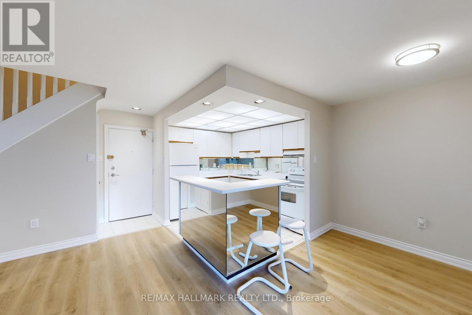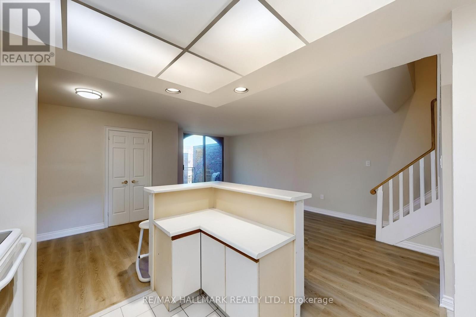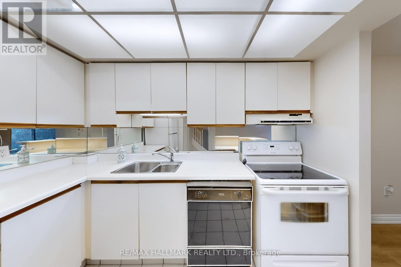 Location! Location! Location! Upgraded Two-Level Condo Apartment Offering Over 1000 Sqft & Two Private Balconies. Perfectly situated just steps from Yonge Street, this upgraded home combines functionality, comfort, and convenience with new flooring and fresh paint throughout. Step into the spacious main level featuring a bright kitchen with ample cabinetry, plenty of counter space, a centre island with breakfast bar, and existing appliances such as fridge, stove, and dishwasher. The open-concept living and dining area is ideal for entertaining, with a seamless walk-out to the main-level balcony. A versatile additional room on this floor offers flexibility as a home office, guest room, or bedroom. Upstairs, the primary suite boasts a large walk-in closet with custom organizers, a 4-piece ensuite with soaking tub and shower, and direct access to a private upper-level balcony. A dedicated laundry room with a full-sized washer and dryer completes the upper level. This unit includes underground parking conveniently located near the elevator. Maintenance fees cover most utilities including hydro, water, heat, cable TV, and internet, delivering excellent value. Residents have access to a range of building amenities including an indoor pool, sauna, recreation room, and visitor parking. Nestled in a prime Thornhill neighborhood, enjoy close proximity to Centrepoint Mall, top-rated schools, parks, public transit, and major highways, making commuting and daily living a breeze. Don't miss this fantastic opportunity to own a spacious condo in a highly sought-after area. Property is being sold as is/where is. (id:4555)