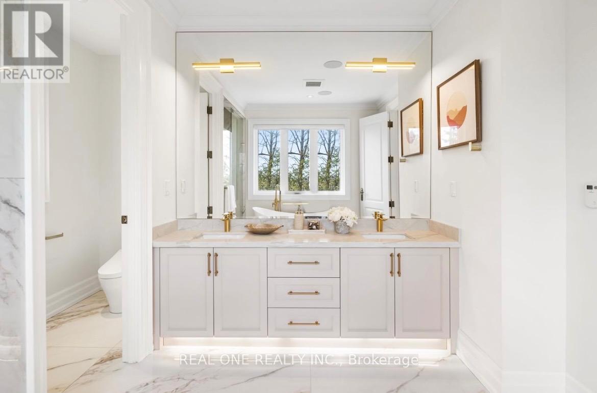 Welcome to this new built, meticulously crafted estate, offering approximately 7000 sq. ft living apace nestled in the heart of Markham at Buttonville community! Featuring 4+2 bedrooms 6-bathroom. Luxury Bronze entrance door with Smart Lock. The main level features a Sunlit Stunning double-story high grand Foyer, built-in speakers, hardwood flooring, elegant paneling, custom moulding, Premium lighting illuminate every space, enhanced by an abundance of natural light from skylights and expansive windows. The finest craftsmanship throughout, plaster moldings, Skylight, Oak Stairs. The modern gourmet kitchen is a chefs dream, equipped with top-of-the-line appliances and featuring a chef-inspired gourmet kitchen with top-tier appliances, central island, and stunning countertops, catering/work kitchen offering additional prep space and storage. The breakfast area opens to the sunlit deck. Bright family room with custome built-in showcases & fireplace, and panoramic views of the backyard. Private office and functional mudroom with garage access complete the main floor. The primary suite is a true retreat, featuring a luxurious 6-piece ensuite, a Toto automatic toilet, along with a spacious walk-in closet. Elegant drop ceilings and custom lighting details enhance the ambiance. All four generously sized bedrooms feature ensuite bathrooms. Second floor laundry room adds convenience. Fully finished basement offers spacious recreation room with fireplace and feature wall, 2 additional bedrooms, and walk-up to backyard. Built-in speaker/sound system, security camera system, cvac. Close to Hwy 404 and Hwy 407, and within walking distance to First Markham Place, shops, restaurants, and transit and much more! (id:4555)