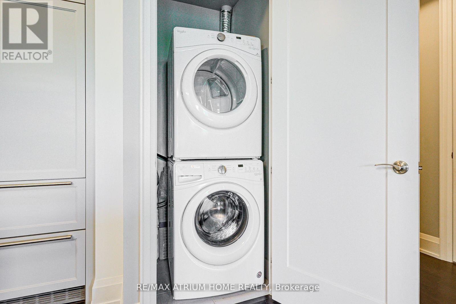 Welcome to The Varley, a boutique luxury low-rise just steps from historic Main Street Unionville. This rare 2-bedroom, 3-bath suite with two parking spots and a locker features 10ft ceilings, hardwood floors, a private balcony, and a chef's kitchen with granite counters and built-in Miele appliances; the spacious primary suite boasts double sinks, a glass standing shower, and a soaker bathtub, while the thoughtfully designed split-bedroom layout with two ensuites and ample storage offers exceptional comfort for everyday living, complemented by premium amenities, a pet-friendly community, walkable access to cafés, boutiques, Toogood Pond, and top-ranking schools-making it an ideal home to live in and a smart long-term investment. (id:4555)