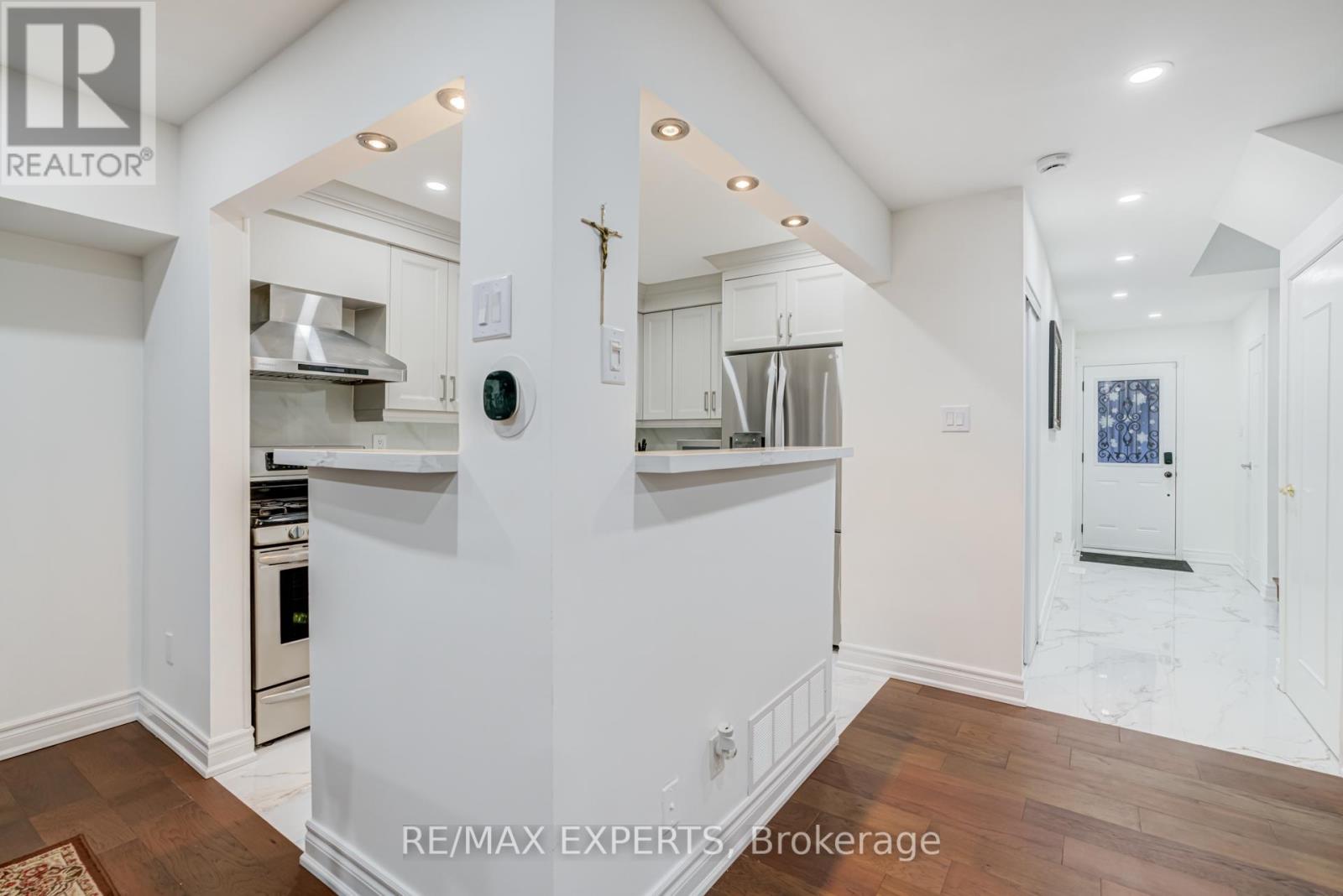 The perfect starter home! Bright and open-concept, this beautifully updated home features thousands of dollars spent on top-to-bottom upgrades-move in and enjoy with no renovation stress.The upgraded kitchen boasts Modern Cabinets, quartz countertops and a stylish backsplash, while gleaming hardwood floors run throughout the main level. Large 12" x 48" porcelain tiles enhance the main floor with a modern touch. The refreshed primary ensuite includes a sleek glass shower and contemporary vanity. Smooth ceilings and pot lights add to the home's elegant appeal. The finished basement offers versatile space for a home office, playroom, Bedroom or potentialin-law suite. A rare bonus for a condo townhome-enjoy your own private backyard garden. Locatedin a highly walkable neighborhood close to top-rated schools, the hospital, GO Train, MarkvilleMall, transit, Hwy 407, and more.Move-in ready and not to be missed! (id:4555)
