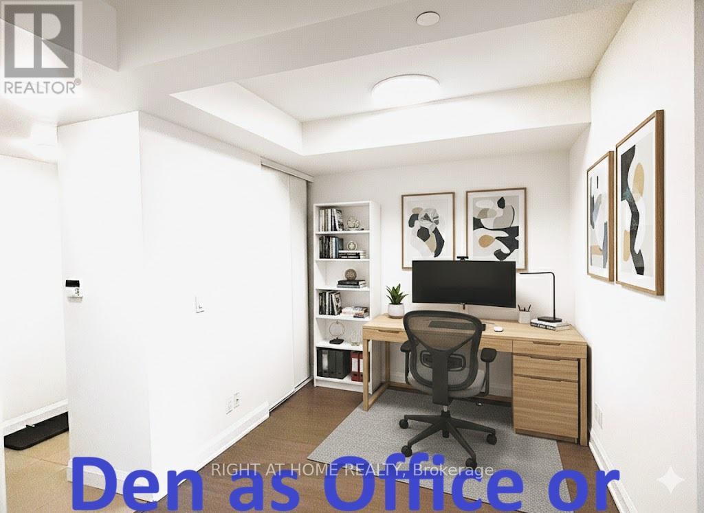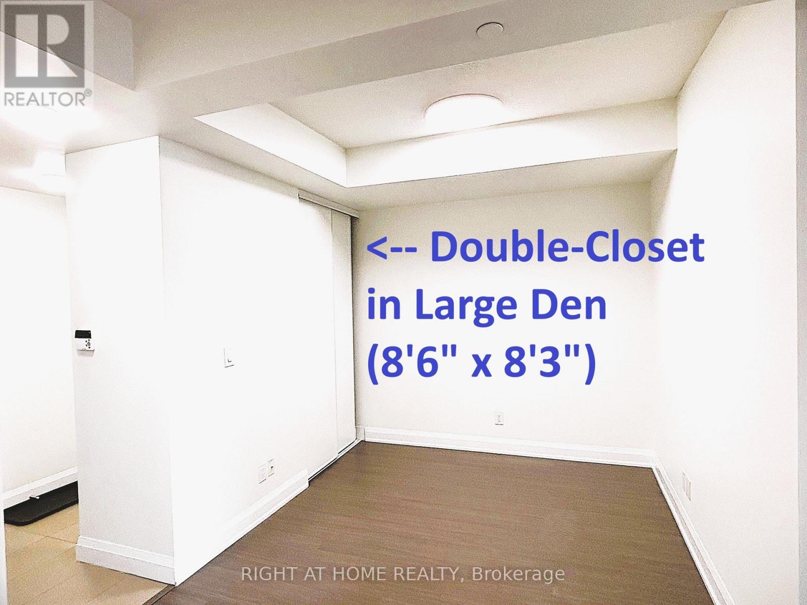 *Gorgeous X-Large 730 sf 1 Bedrm+ Den *Note Room Sizes! No Wasted Space *9-Ft Ceiling *Wood Flr T/O *Open-Concept Big Kitchen with Quartz Stone Counter, Wide & Deep Breakfast Bar/Island with Cabinets on Both Sides, Open Shelves, S/S Appliances, Lots of Storage for Gourmet Chefs & Snacks *Spacious Bedroom has His and Hers Closets & W/O to Balcony *Large Alcoved Den with Rare Double-Closet = Guest Rm/Office/Nursery *Spacious Combined Living/Dining Rm great for Entertaining Guests or Family Time, and W/O to Balcony to Enjoy Quiet Morning Coffee *24-Hr Concierge *Fab Facilities: Indoor Pool, Gym, Ping Pong/Billiard, Rooftop BBQ, Theatre, Party Rm...*Steps To Public Transit *Quick Access To Hways 407/404 *Across Street From Supermkt, Restaurants, Banks, Shops... Enjoy Convenient Living In The Heart Of Markham :-) *High-Ranked Schools & near York U *Perfect for Professionals, Young Families or Downsizers *Freshly Painted, Professionally Cleaned, New Light Fixtures *Move-In Ready! (id:4555)