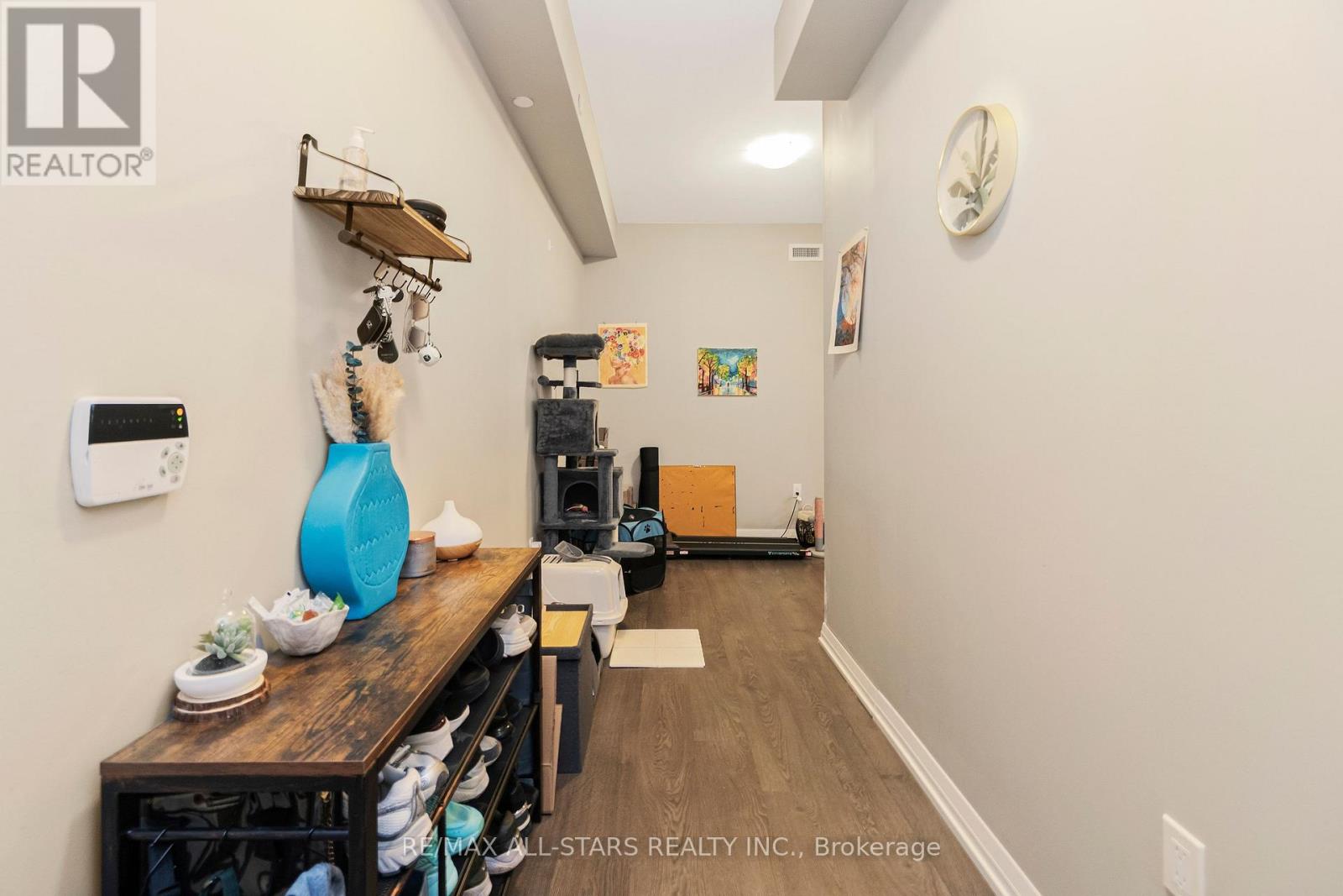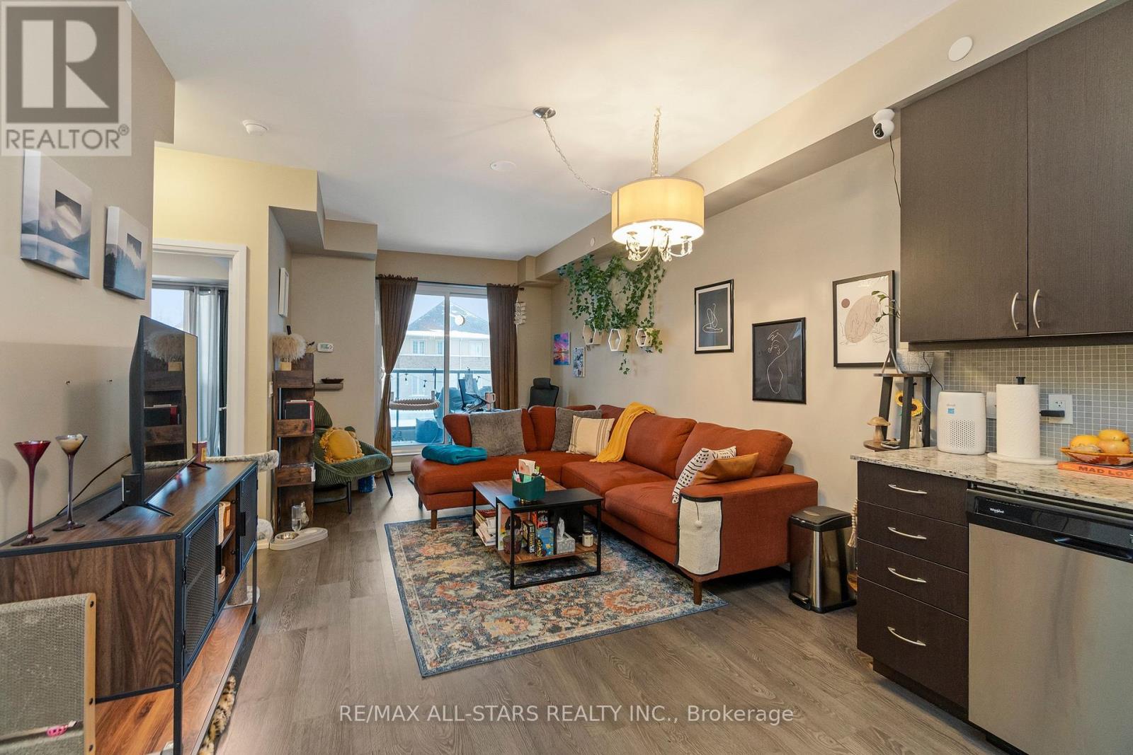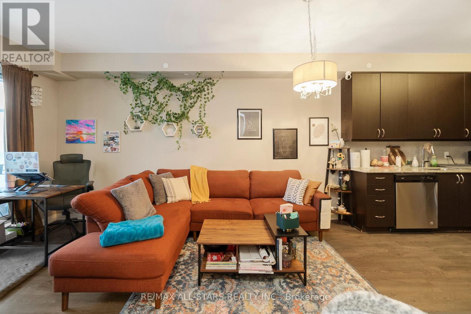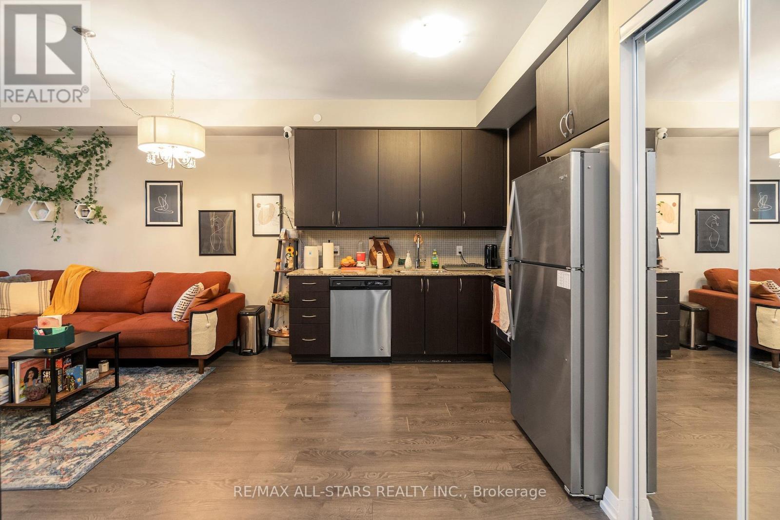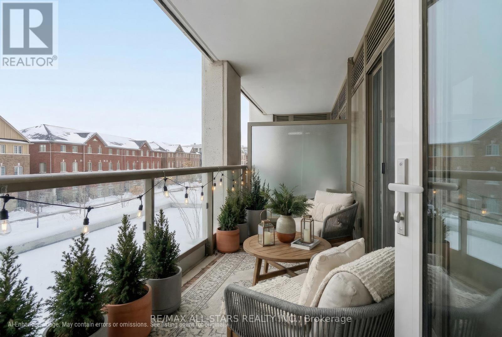 Amazing value in one of Markham's most convenient and walkable locations "The Mark", 221-9560 Markham Rd is the perfect opportunity for a first-time buyer, downsizer or savvy investor looking for lifestyle and long-term potential. Enjoy the ease of walking to the GO Train for a stress-free commute, and spend your weekends exploring Main Street festivals, local restaurants, shops, groceries, pharmacies and the surrounding nature trails just steps from your door. This well-managed boutique building offers concierge service and impressive amenities including a gym, incredible party/media/dining area/games room, guest suite, pet wash, car wash and an amazing rooftop terrace w bbq & outdoor garden area. Inside, the 683 sq ft 1 bedroom + den layout has 9 ft ceilings and is bright, open and highly functional, with a proper entryway that leads into a versatile den seamlessly integrated into the living space - ideal for working from home without feeling confined. The upgraded kitchen features granite countertops, stainless steel appliances and exceptional storage including a built-in pantry and front hall closet. The spacious living area accommodates full - sized furniture and opens to a west-facing balcony with high ceilings and large windows that fill the space with natural light-perfect for enjoying afternoon sun or evening summer cocktails. Laminate flooring runs throughout the main living areas for a modern, low-maintenance finish. The bedroom offers generous closet space, wall-to-wall windows and its own walk-out to the balcony, complete with remote control blinds for added comfort and convenience. One underground parking space and locker (locker: approx 5.9 feet by 2.8 feet) are included, making this an outstanding opportunity in a prime Markham location. (id:4555)